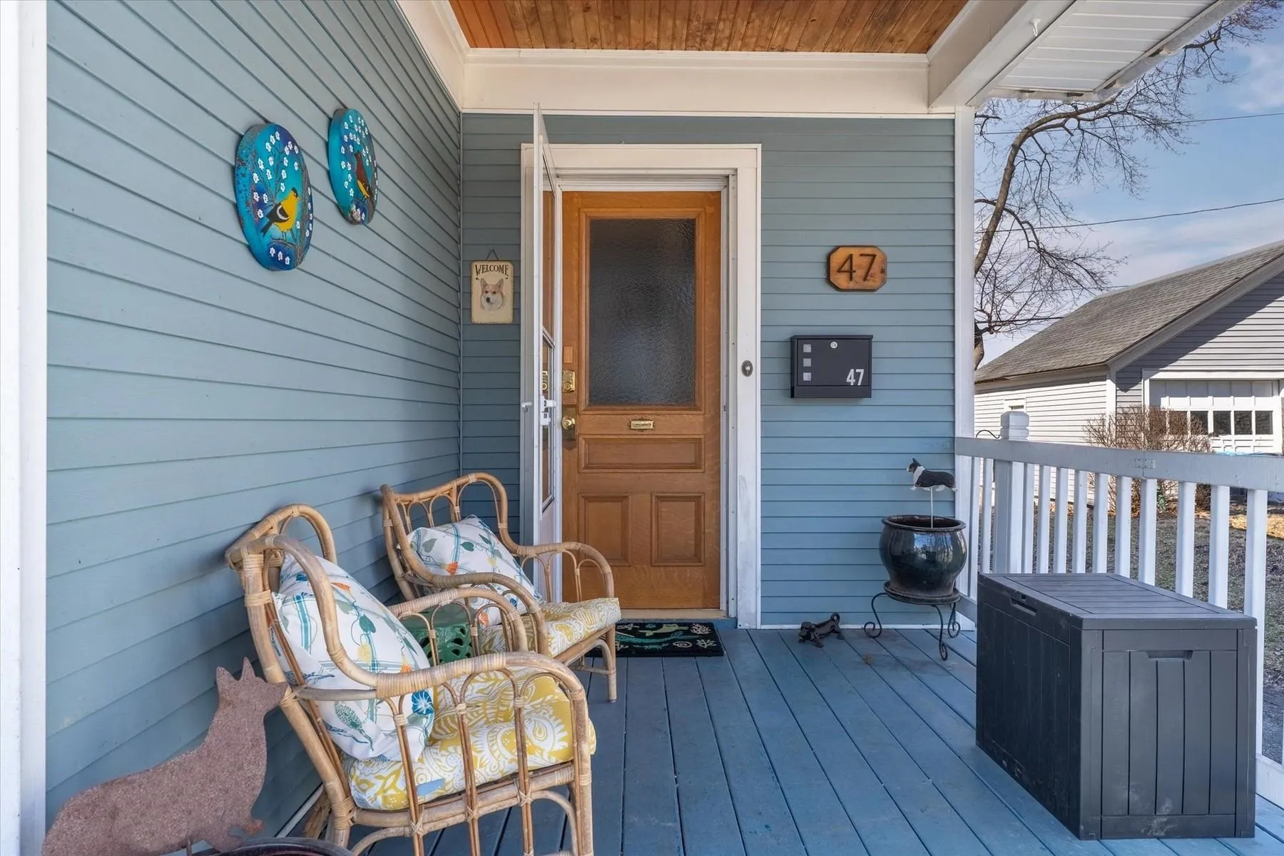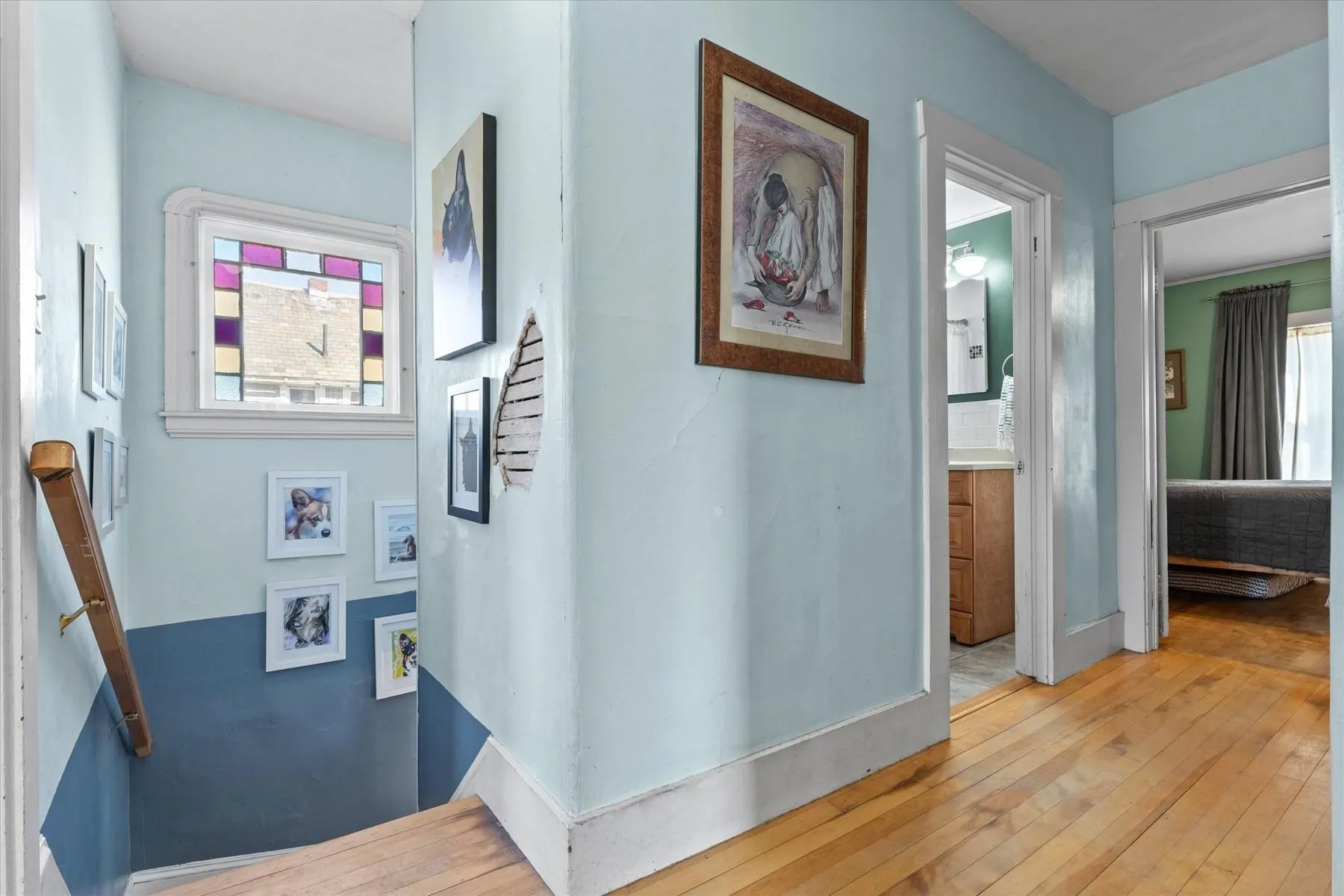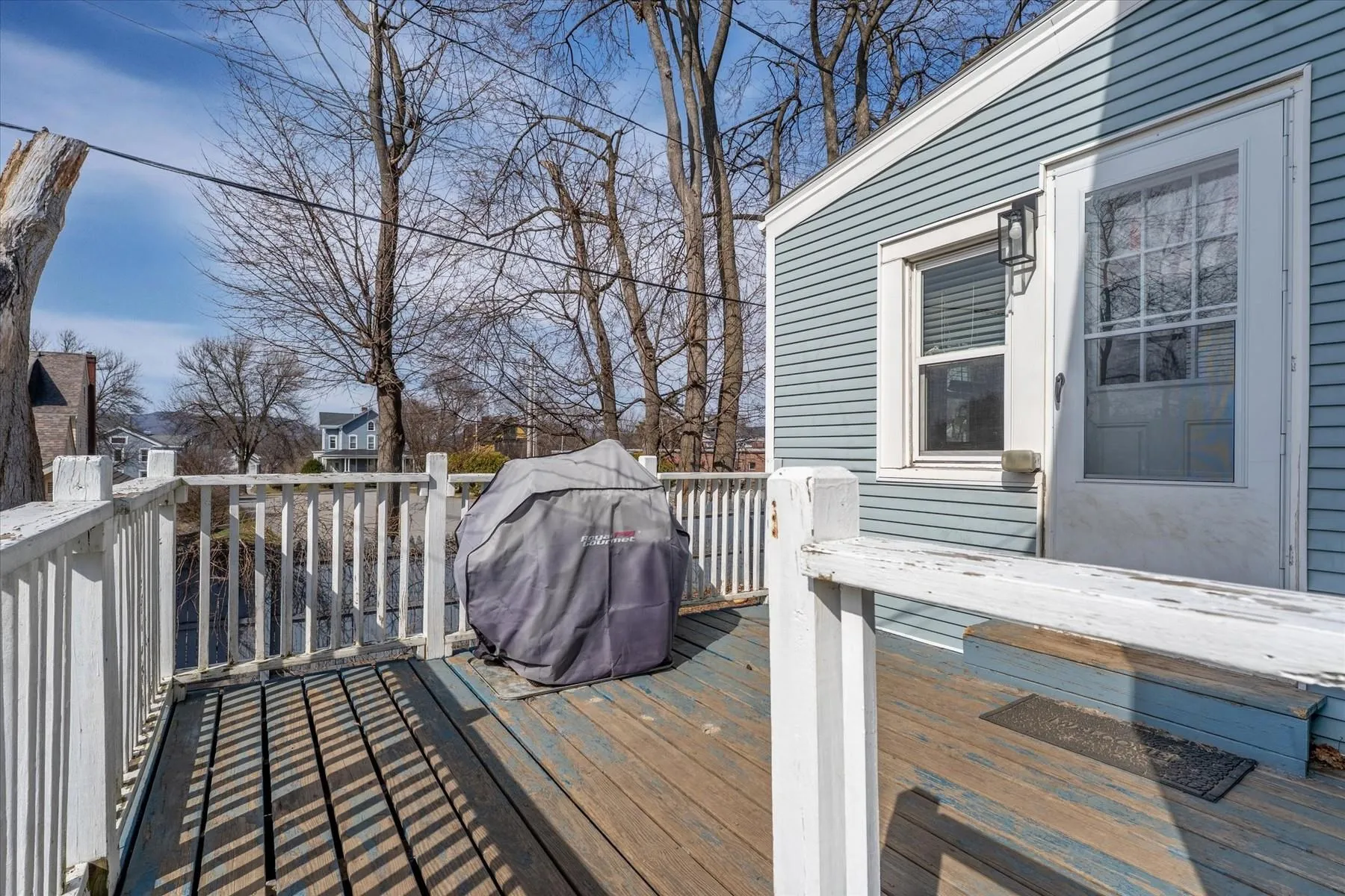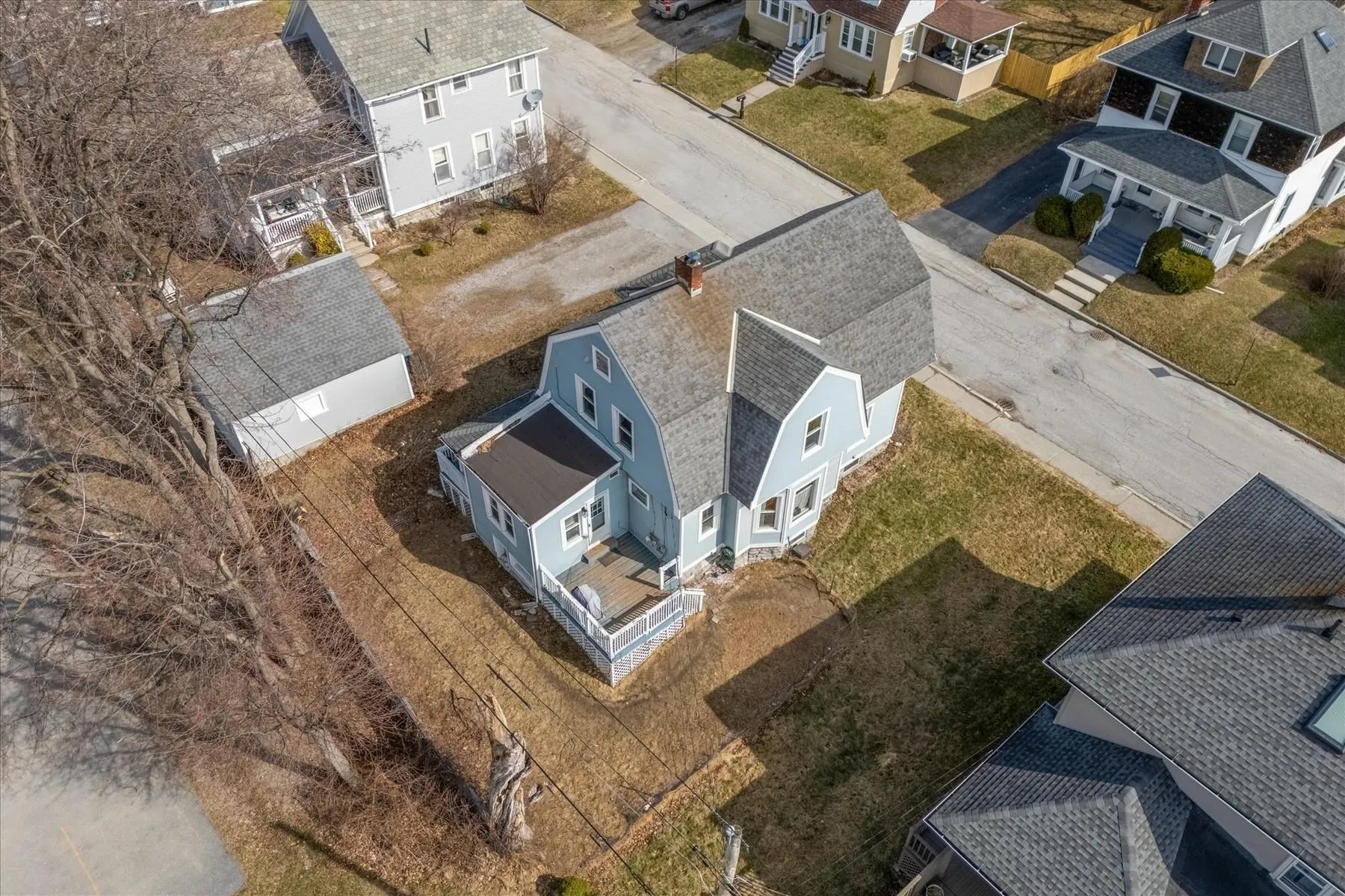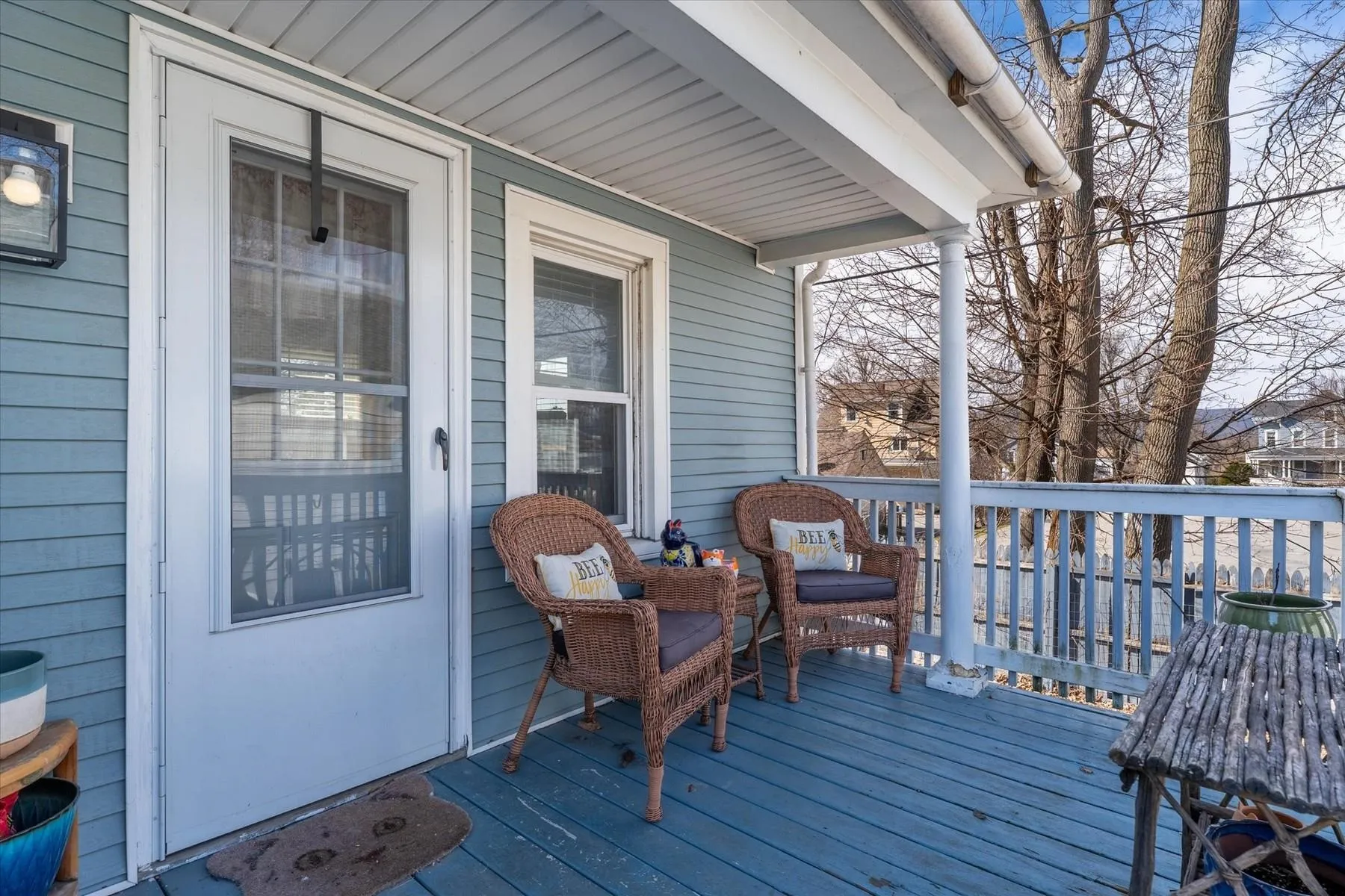 +"PublicRemarks": "This charming Gambrel style home has bright open living spaces, high ceilings, detailed woodwork, pretty open staircase, stain glass window and wood floors. The kitchen features painted shaker style cabinetry, new stainless steel appliances, and new flooring. Off the kitchen is the laundry, additional built-ins cabinets and half bath. The adjacent dining room flows seamlessly into comfortable living room with wood floors throughout. A flexible bonus room that can serve as a playroom, home office or mudroom rounds out the first floor. Upstairs includes three generously sized bedrooms, two bedrooms have double closets, and a full bath. Home improvements include: electrical and plumbing updates, new light fixtures, new ceiling fans, new vanity, interior paint, and refinished wood floors. The low maintenance exterior is vinyl sided and has vinyl windows. On the exterior you have the welcoming front porch, covered side porch and sunny south facing deck excellent for grilling and entertaining. Paved parking to the right and a second curb cut to the left of the house would accommodate additional parking. Small and easy to maintain, partially fenced, yard and shed like storage space under the house. Convenient location on quiet one-way street near city parks/playgrounds and downtown."
