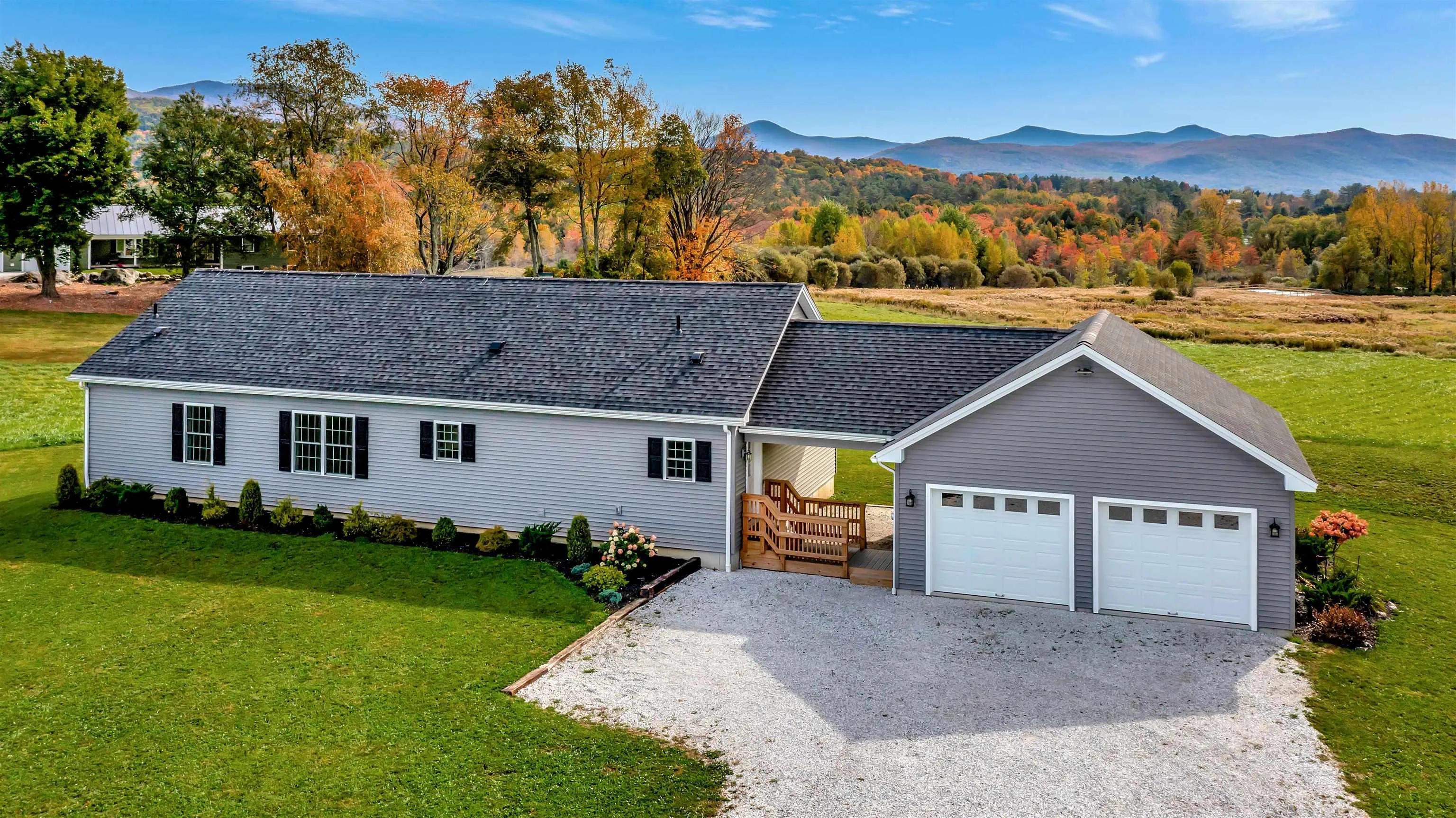 +"PublicRemarks": "Welcome to the newly built Rutland Town Ranch Home, boasting 3 bedrooms, 3 baths, a 2-car garage, and breezeways, all set on 2.9 acres of picturesque land. Revel in the gorgeous mountain views just minutes away from 2 golf courses, skiing, and hiking trails. This location is close to all amenities, making it an ideal retreat. The primary suite features an ensuite and a walk-in closet for your convenience. The full basement offers the potential to be transformed into an additional living or family room, with ample windows to flood the space with natural light. Lastly, picture yourself enjoying every sunrise from the back deck—a truly spectacular way to start your day. The septic/mound system is permitted for 4 bedrooms. One bedroom is being shown as an office/den can be used as the 4th bedroom."