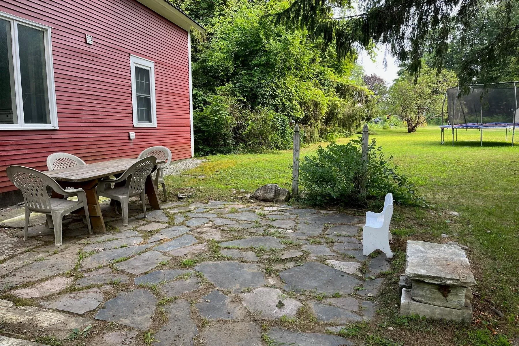 +"PublicRemarks": "Just Reduced! Absolutely charming home with numerous possibilities to alter the main floor layout. Spacious kitchen with updated appliances, eat-in potential, large living room with pellet stove for a warm and inviting alternative heating. Currently used as a dining room or could be utilized as den or office space. Luminous windows exposing the views & privacy of the luscious greenery of your back yard. Main floor Primary bedroom with 3/4 bathroom and laundry; currently being used as office space and den. Alternate & experiment with these main floor rooms to your hearts content. Delightful enclosed sunporch for relaxing and decompressing. Upstairs you will find a full bath, two bedrooms and a third room currently used as a bedroom or use as office/den or even large closet & storage space. Current owner has lovingly keep this home up to date and in beautiful shape. Recent fresh interior paint and the new owners can reap the rewards of this home being brought up to USDA standards in 2019. Backyard is a true delight. Berry bushes, apple tree, vineyard area, shade trees, level lawn, gardening space, quintessential little bridge over a stream leads to the two car garage with overhead storage. Over half an acre of clear and wooded areas... fun to explore. Rutland Town location is ideal and oh, so convenient to all town and even city amenities. Someone is going to get a GREAT DEAL."