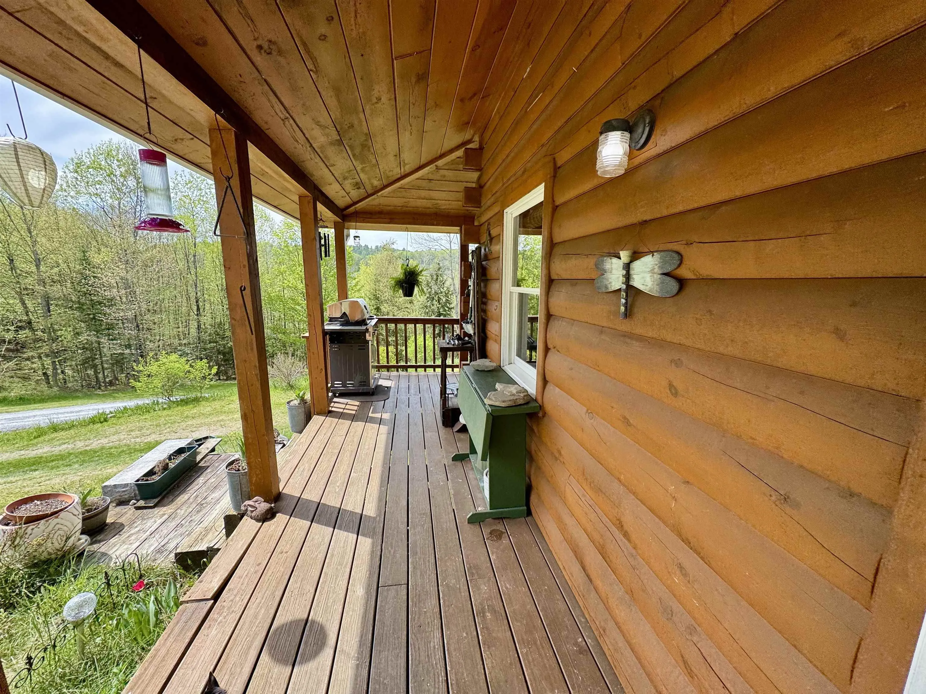 +"Remarks - Public": "How many properties can advertise their own bridge over a babbling brook upon the entrance or departure from a dwelling? This property is comfortably situated up on a hill looking west into Ryegate, Vermont, with 10.10 acres of continuous land and plenty of indoor/outdoor living space to enjoy time away from work or to work from home. The convenience of cell phone service is available, as well as high-speed internet and other utilities from Witherspoon Road. The Log home has received a charming addition which provided a primary bedroom and a designated laundry space on the first floor. The kitchen provides ample storage space and work space, with a separate dining area closer to the living room. The loft above the first floor living space is a bedroom and has carpeted flooring to reduce noise. The basement walks out into the yard and has potential to be finished into more living space. The basement houses a pellet stove which is efficient and provides ample storage space to keep the upper level clear of totes, tubs, etc. Sitting on the covered porch looking at the view, utilizing the small campsite to roast marshmallows or hosting gatherings, this property provides a canvas for whatever your vision may allow."