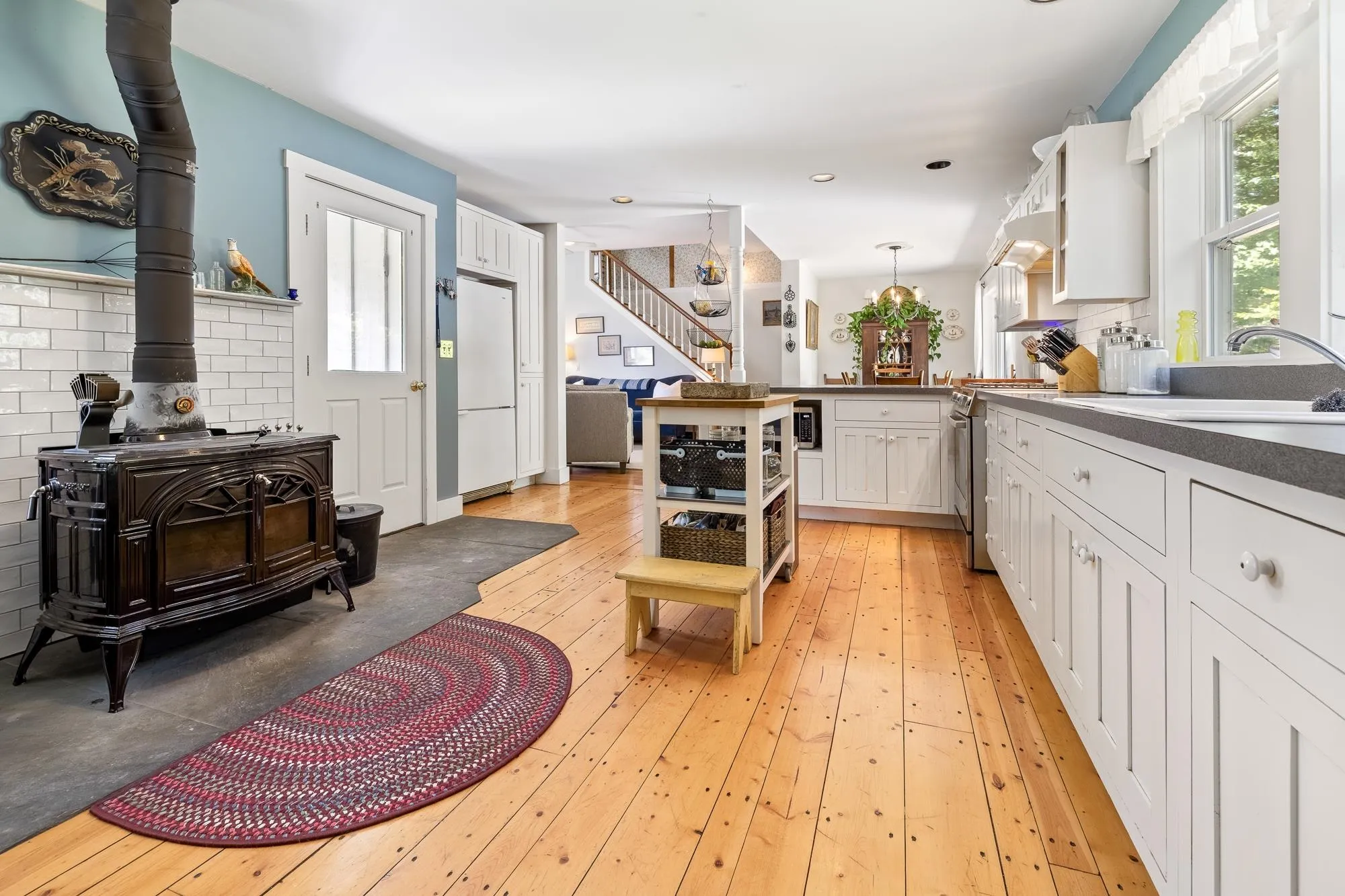 +"PublicRemarks": "Enjoy Vermont country living in this welcoming home set in a peaceful, scenic setting. The large eat-in kitchen is perfect for gathering with family and friends, with easy flow into the dining and living rooms. A screened-in front porch lets you enjoy your morning coffee while listening to the sounds of the babbling brook and birdsong. The spacious light-filled interior features high ceilings, wood stove, post and beam construction and beautiful hemlock flooring. The flexible layout includes a first-level bedroom and updated bath, plus a den for a home office or reading nook. Upstairs, you’ll find a spacious primary bedroom with another full bath, as well as a third bedroom on the 3rd level, offering plenty of space for family or guests. Enjoy the convenience of a two-car garage with direct entry into the home. Located within easy reach of Exit 2, I89, Sharon Academy, Vermont Law School, outdoor recreation, this home offers a wonderful opportunity to enjoy the Vermont lifestyle in a setting you will love coming home to."