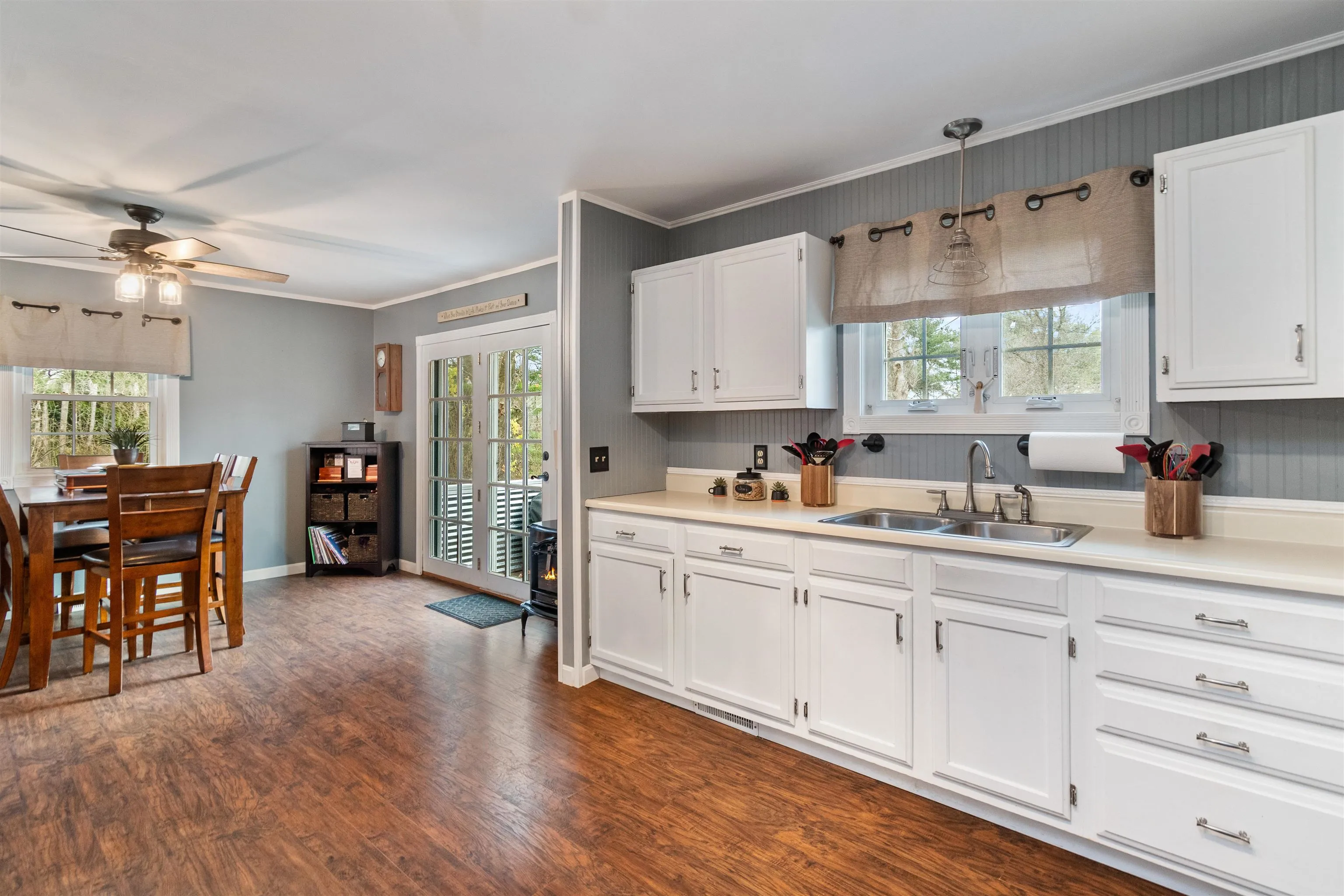 +"PublicRemarks": "Nestled in the heart of Shelburne Village, this charming 3-bedroom home offers the perfect blend of comfort, convenience, and natural beauty. Situated on a private, flat .52-acre lot abutting the Laplatte River Nature Park, this home provides a serene setting while keeping you just minutes from local shops, dining, and beloved attractions such as the Shelburne Museum, Shelburne Farms, and the Shelburne Country Store. Come inside to discover easy one-level living with durable laminate flooring throughout, creating a warm and inviting atmosphere. The sun-filled living room features a large south-facing picture window that bathes the space in natural light, with space for a large sectional. The dining area comfortably accommodates a table for eight, making it ideal for gatherings. The spacious kitchen offers plenty of room for meal prep and even space to add an island if desired. A french door from the dining room opens to the back deck, where you can enjoy morning coffee, alfresco dining, or simply unwind while taking in the peaceful surroundings. Outside, you’ll find raised garden beds, a garden shed, and a cozy fire pit — all set on a beautiful, private lot that invites outdoor living. With its welcoming front porch, single-level design, and unbeatable location near everything Shelburne has to offer, this home combines small-town charm with everyday convenience!"