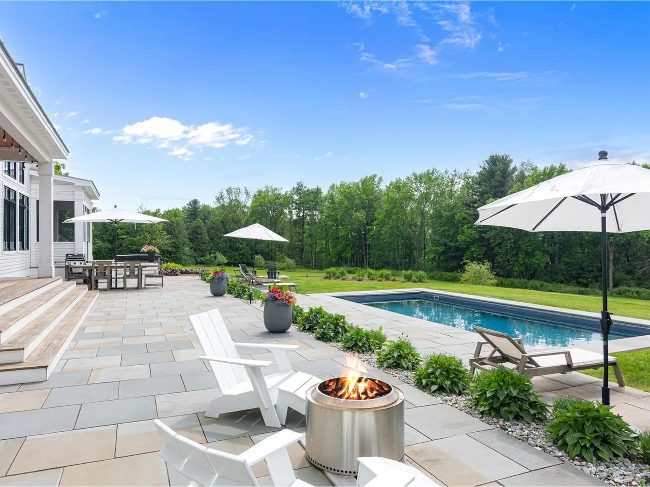 +"PublicRemarks": "This beautiful custom-built home on 9.4 acres boasts lake and mountain views from most rooms. Enjoy soaring cathedral ceilings, bright open living spaces, and an attached 1-bedroom accessory apartment with a separate entry. Each room in the main house flows gracefully to the next with great attention to detail, from the locally sourced exposed wood beams to the custom-made stone fireplaces. An expansive Great Room enjoys both sunrise and sunset views. The kitchen is a chef's dream with a 6-burner Wolf gas range and hood and an oversized marble island with prep sink. Formal living and dining rooms have large glass walls facing west and are accented with a two-sided gas fireplace and full wet bar. A private office sits off the dining area. Down the hall, the first-floor primary suite features an impressively sized walk-in closet and full bath with soaking tub and large step-in shower. Upstairs are three additional en suite bedrooms and a den/flex room with a shared bath. Athletes and recreation enthusiasts will love the expansive lower-level rooms with space for indoor sports, a large playroom/den with mini kitchen and wet bar, plus an exercise room, 3/4 bath, and bonus guest room. All pool equipment is safely stored indoors to protect it from the elements. Screened and covered porches, plus a deck, fire pit, and patio abutting the pool offer terrific use of the outdoor space, and the land can be further cleared to enhance the views of Lake Champlain and the Adirondack Mountains."
