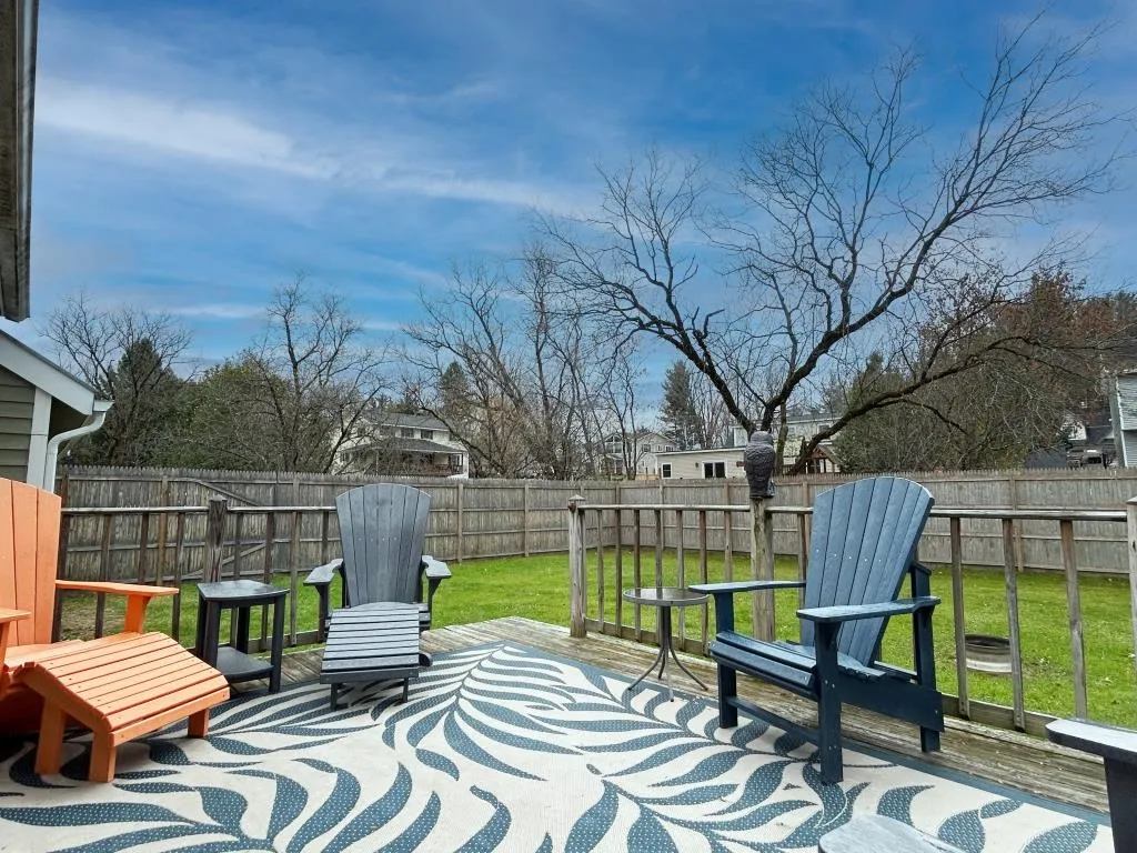 +"Remarks-Public": "Situated in a quiet neighborhood on a spacious .75 acre level lot is this renovated two bedroom one bath ranch home with an attached two car garage. Won't it be nice to roll into your garage in the foul weather and stroll right into your cozy home. The kitchen is the centerpiece boasting custom cabinetry with under lighting, an island breakfast bar, solid surface counters, stainless steel appliances and vinyl plank flooring. The open concept into the dining room make for convenient meals. You'll love the access to the back deck where you can prepare and enjoy meals in the nicer weather. The living room has classic hardwood floors and is flooded with natural light. The two bedrooms will accommodate king beds and or bunks, each with plentiful closets. The updated bathroom is also a showpiece with subway tile, farmers sink, and two faucets, one hand held in the walk in shower. The unfinished basement is a blank canvas for the potential of more living space, work out area etc. The oversized two car garage has a work bench for your home projects. The house is equipped a mini split system for cooling and heat for year round comfort. And the icing on the cake is the wonderful yard with perennials, shade trees, privacy hedge and plenty of space to play, garden or just relax. This is a must see property to appreciate what it has to offer."