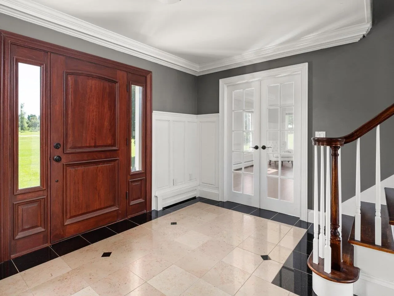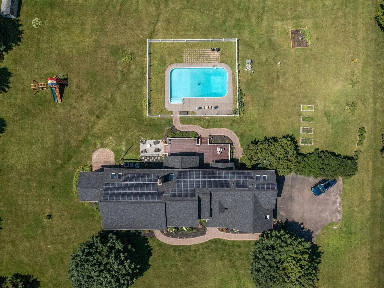 +"PublicRemarks": "Elegant and spacious oasis in one of the most desirable neighborhoods in Shelburne with seasonal Lake Champlain and mountain views. Nestled on a level 2.3 acres, this breathtaking 5-bedroom, 5-bath home leaves nothing to be desired. Entering through the elegant foyer with marble tile and a sweeping staircase, your eyes will be drawn to the many windows framing the in-ground pool. The heart of the home is the stunning modern kitchen with quartz countertops, huge island, Kucht 8-burner gas stove, farmhouse sink overlooking the back deck and yard, and walk-in pantry. An office, sunroom, and formal living and dining rooms are on the ground floor. Upstairs, the gracious primary bedroom suite is something to behold with a separate sitting area providing plenty of space. Updated bath with dual vanities, jacuzzi tub, and tiled shower, plus separate walk-in closets! Three additional bedrooms upstairs, one of which has both an en suite bath and attached bonus room. The renovated mudroom provides all the storage you will need for large and small visitors. The basement has a bedroom suite with egress window and full bathroom. Owned solar panels for sustainability help offset the central air conditioning. This home has been updated throughout with many custom features and must be seen to be appreciated. One year home warranty transferable to buyer. Minutes to Shelburne Beach, Museum, Farm, and schools, and just 15 minutes to the University of Vermont and Burlington International Airport."