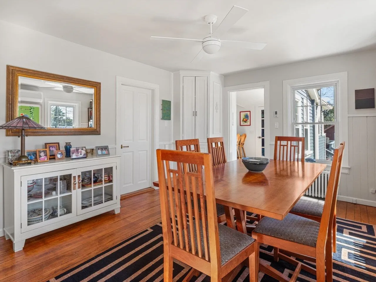 +"Features - Interior": "Blinds,Cathedral Ceiling,Ceiling Fan,Dining Area,Primary BR w/ BA,Natural Light,Natural Woodwork,Security,Soaking Tub,Vaulted Ceiling,Walk-in Closet,Laundry - 1st Floor"
