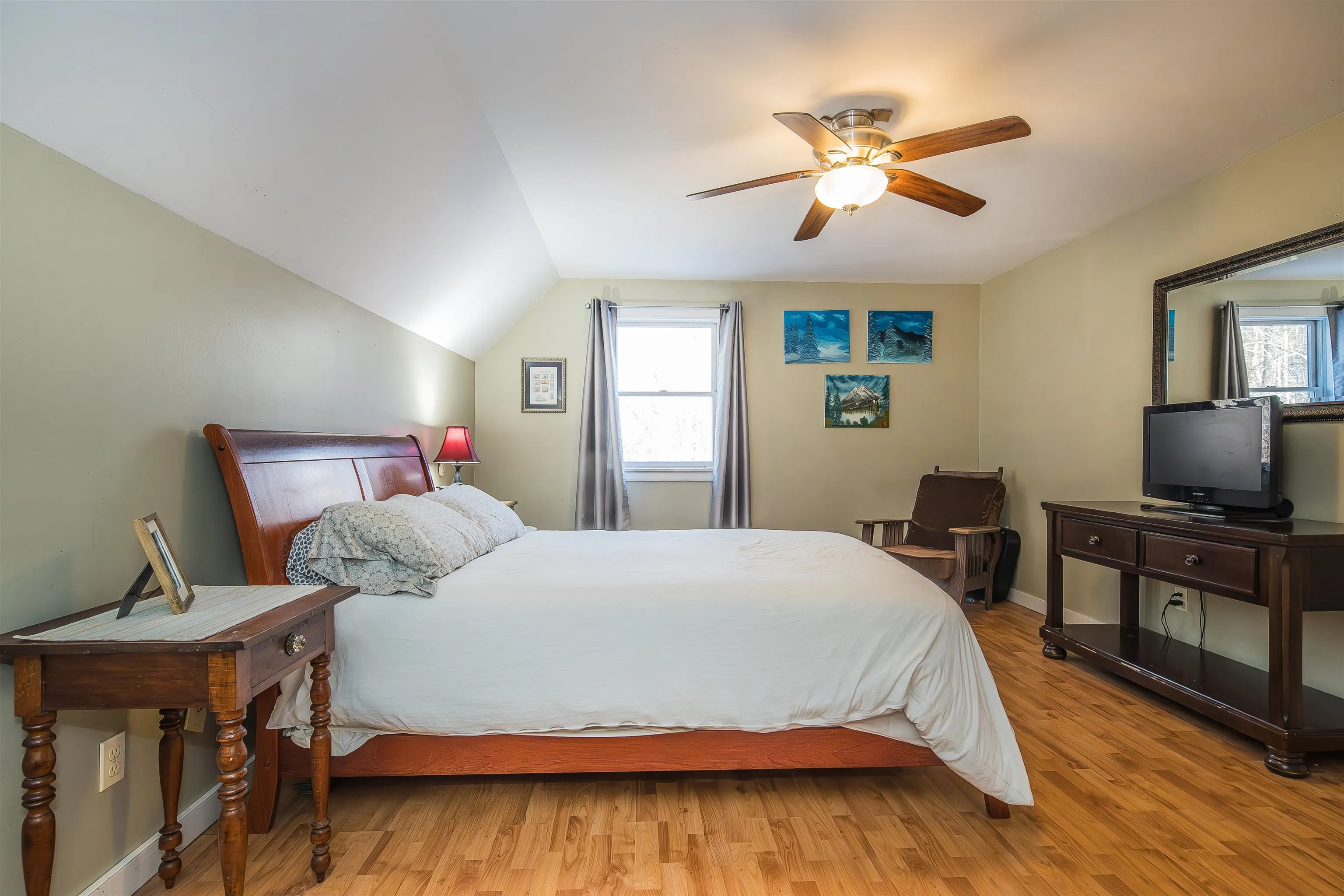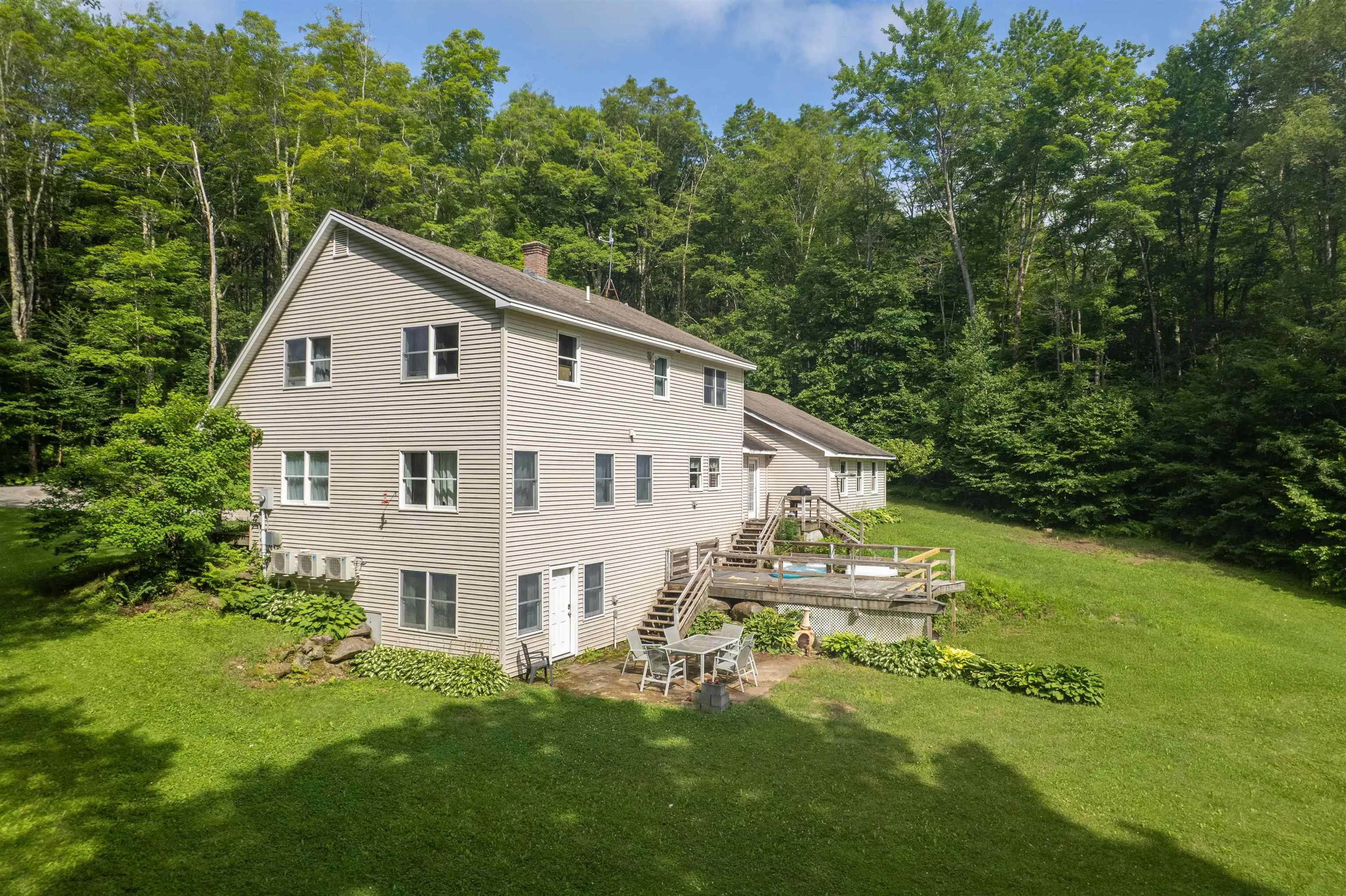 +"PublicRemarks": "Stately hilltop home built by Silas Banister c.1800, recently undergone a complete restoration. Quality materials & craftsmanship throughout. It has gorgeous views of nearby Ascutney Mountain & long-range views of NH. The property consists of 98 acres made up of fields, hard & softwoods, trails, a large sugarbush (potential for a future boiling operation). Conserved by Upper Valley Land Trust, enrolled in Current Use. The main floor offers a new kitchen which boasts a beautiful 11' quartzite island & counters. Dining & Family Room with soapstone woodstove, Living Room with a new Rumford Fireplace with rod iron & glass doors for efficiency. A large Sunroom with slate floor, more than an entry it's a nice transitional space to enjoy, 3 BR/3 BA and a Sitting area on the 2nd floor with a tranquil view of the back fields. 2 additional BRs and a half bath on the 3rd floor. All new wiring, plumbing, new Bosch propane furnace supplies radiant heat, triple pane, Anderson low-E4 windows, sheetrock, DaVinci slate-like rubber roof & cherry floors. Fully insulated, extremely efficient. Custom built trim, wide baseboards, wainscoting & cabinets. 200+ year old pine boards from the house were used to craft bathroom vanities, 3rd floor stairs & beautiful doors. Outdoor amenities include in ground pool, gardens & lovely stone patio. A large-3600 sq ft former dairy barn with new wiring & FHA furnace & oil tank. Now used as a garage, workshop & abundant storage space offers ENDLESS possibilities!"