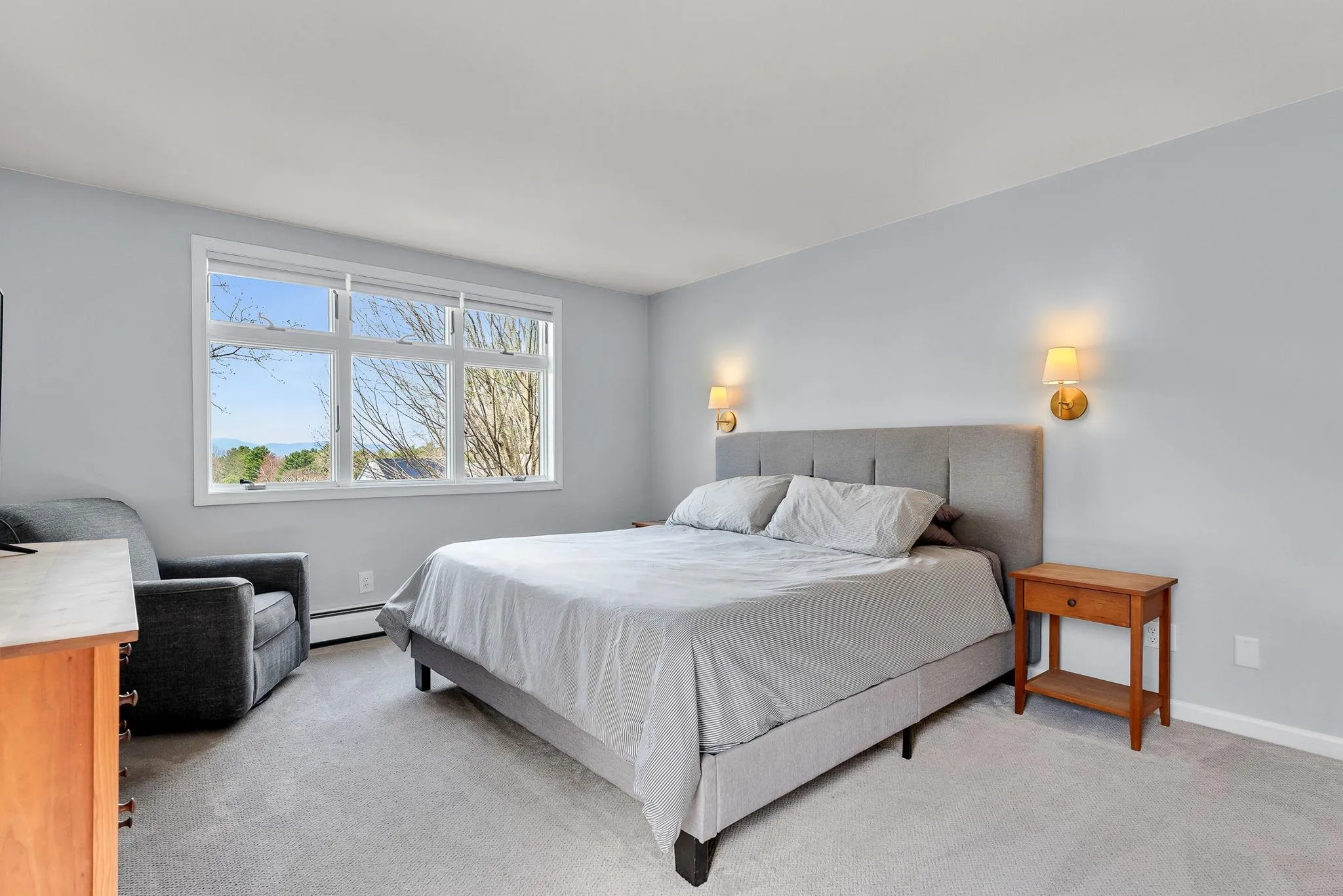 +"PublicRemarks": "Welcome to 5 Harbor Ridge Rd, a stunning Colonial set on a .41-acre lot in one of South Burlington’s most desirable neighborhoods, Meadow Wood at Spear. This 4-bedroom, 2.5-bath home offers beautiful western exposure with sunset and Adirondack Mountain views along with seasonal glimpses of Lake Champlain. The light-filled, circular floor plan provides exceptional flow for both everyday living and entertaining. The renovated kitchen features custom cabinetry, granite countertops, a breakfast bar, a dedicated workstation, and stainless steel appliances, including a new refrigerator and Viking range. The main living area is bright and inviting, highlighted by beautiful flooring and a large canted bay window that captures lovely natural light and frames the western views. A standout feature is the cozy den set at the back of the house with a gas fireplace and secondary access to the private deck and backyard, ideal for seamless indoor-outdoor living and al fresco dining. Extensive recent improvements include removal of popcorn ceilings, full interior professional painting, updated lighting, new upstairs carpeting, replacement of some siding, privacy fence, and professional landscaping. Two new mini-splits installed in April 2026 provide efficient heating and cooling and include a transferable service plan and warranty. Upstairs, the primary suite offers a private balcony, a renovated bath with double vanities, and a spacious walk-in closet with a dressing area. The expansive back deck and yard create a private setting for outdoor enjoyment. Located in the coveted Orchard Elementary district and just minutes to I-89, UVM Medical Center, Burlington International Airport, and with easy access to the bike path, Dorset Park, Wheeler Dog Park, and Vermont National Country Club. Showings begin immediately."