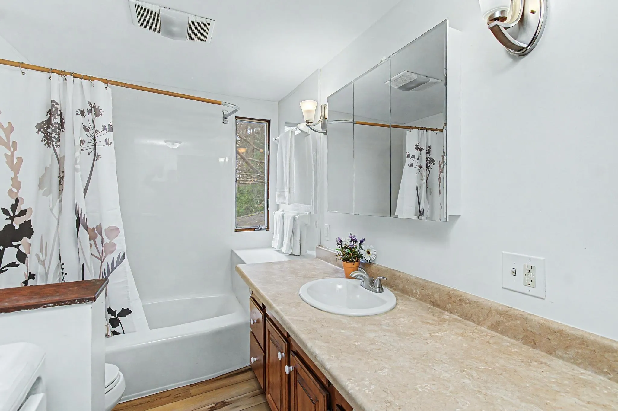 +"PublicRemarks": "Charming tri-level home with inviting curb appeal and solid construction, offering the benefits of a well-built and thoughtfully maintained property! Enter through the front door into a bright living room, highlighted by a row of four west-facing windows that flood the space with natural light. A cozy brick fireplace creates a warm focal point in the living room and bamboo flooring flows seamlessly into the dining room. The kitchen offers great functionality with quartz countertops, a built-in peninsula with open shelving, and abundant cabinetry to meet all your storage needs. Part of the appeal of a tri-level is the unique architecture -- go up a few stairs to three comfortable bedrooms and a full bath with conveniently located laundry. Down a few steps from the main living level, you'll find an additional bedroom and a ¾ bath. The highlight of the lower level is a spacious family room with large windows, vaulted ceilings and wonderful acoustics. A door provides direct access to the yard, while a separate side entry leads to a practical mudroom area with space for coats and storage. Additional highlights include a one-car garage and a pleasant backyard setting, perfect for relaxing or entertaining. Ideally situated in a desirable South Burlington neighborhood close to the elementary school, parks, shopping, UVM Medical Center and everyday amenities making it a wonderful place to call home."