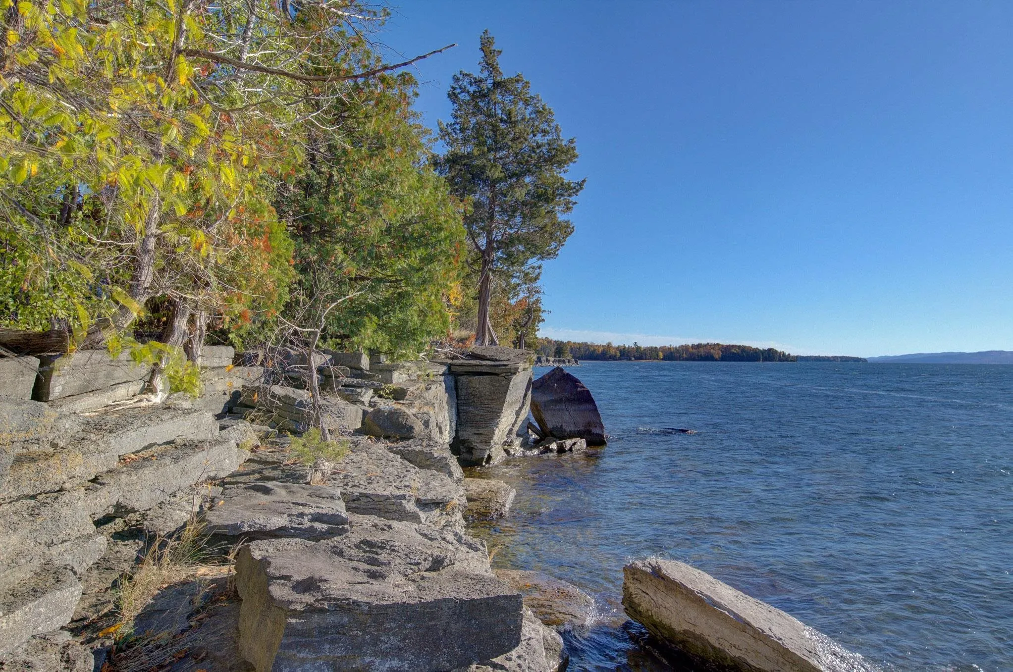 +"PublicRemarks": "Experience one of South Hero’s most remarkable lakefront settings on this rare 1.2-acre point with 570 feet of direct shoreline. The property captures sweeping southwest views over the Broad Lake toward Sawyer’s Island and the dramatic Adirondack Mountains beyond. Mature cedars and oaks frame the parcel, offering privacy and natural beauty, while the shoreline transitions from a sandy south-facing cove to impressive west-facing ledge rock perched on a bluff 12-14 ft feet above the lake—perfect for enjoying spectacular sunsets over crystal-clear water. The property currently includes a rustic 1930s cottage, an accessory cabin, and two outbuildings, all set within a tranquil landscape of mature trees. The main cottage systems and associated structures are all failing at this time and are likely beyond the point of being renovated. The property is state-permitted for a new three-bedroom, year-round residence and features an existing in-ground wastewater system, with a design in place for a future mound system. A drilled well on site provides water service. A South Hero Building Permit and VT Shoreland Protection Permit will be required for the construction of a new residence. Set among fine homes and cottages on South Hero’s coveted West Shore, this property offers the ideal opportunity to create a stunning lakefront retreat with unmatched panoramic views and a truly exceptional location."