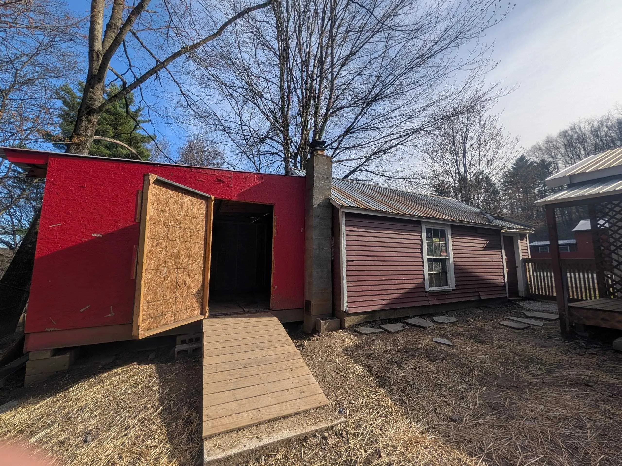 +"Remarks-Public": "4-bedroom, 2-bath farmhouse situated on a 6.1 acre corner lot with private septic, power, and deeded rights to a neighboring spring. This home offers over 1,500 sq ft of living space and features a newly installed on-demand hot water system, along with a three-season porch and attached garage/workshop. The property is in need of rehab but offers strong potential as a primary residence, rental, or investment project. Also on site is a 20' x 38' partially completed kit home on a slab foundation (post and beam framing materials supplied by Jamaica Cottage Shop, located in Londonderry, VT. Features radiant heat (not connected), a buried cistern, loft, large east-facing windows, and a corrugated metal roof. Approximately 50% complete and ready for finishing. This property is being offered as-is; potential for private financing/rehab loan."