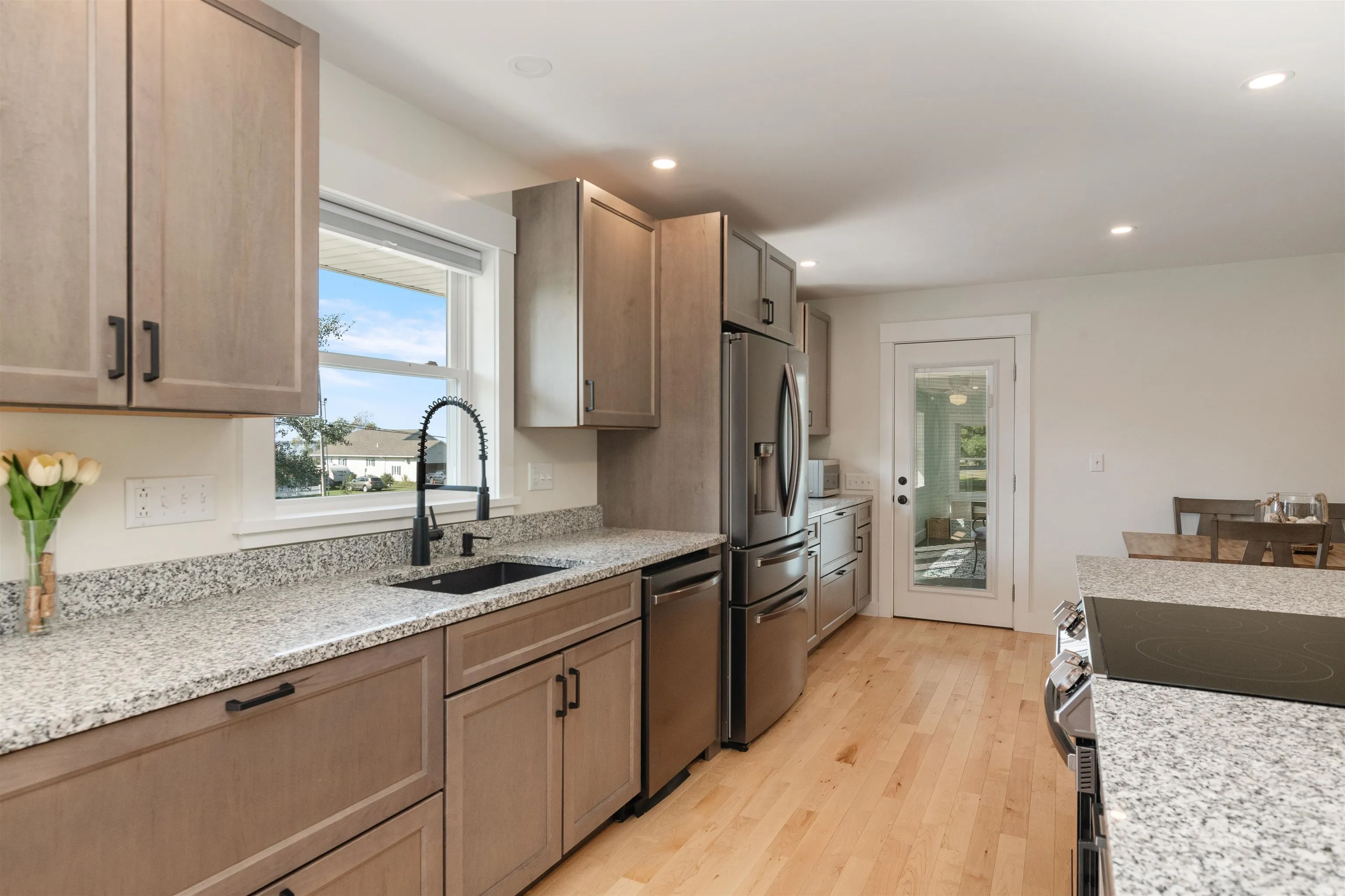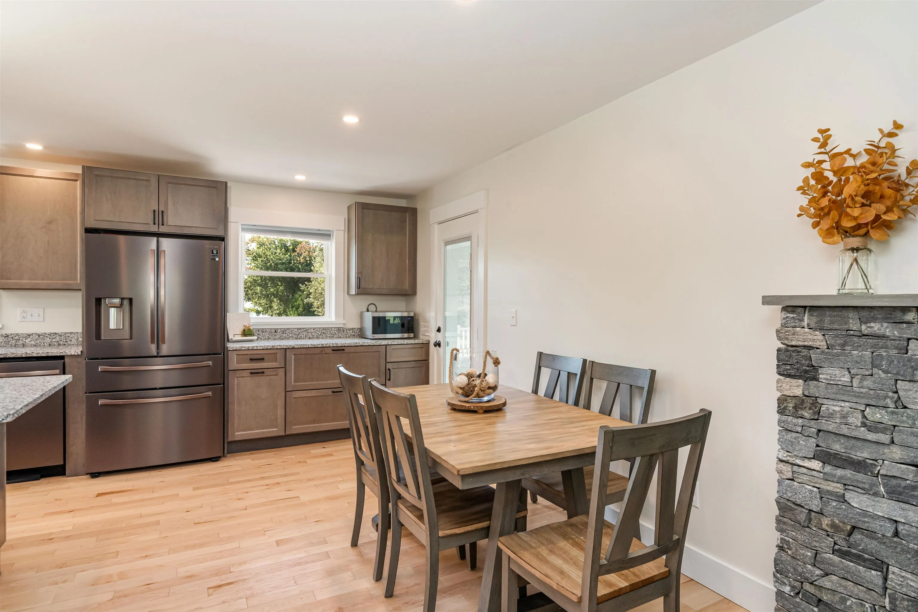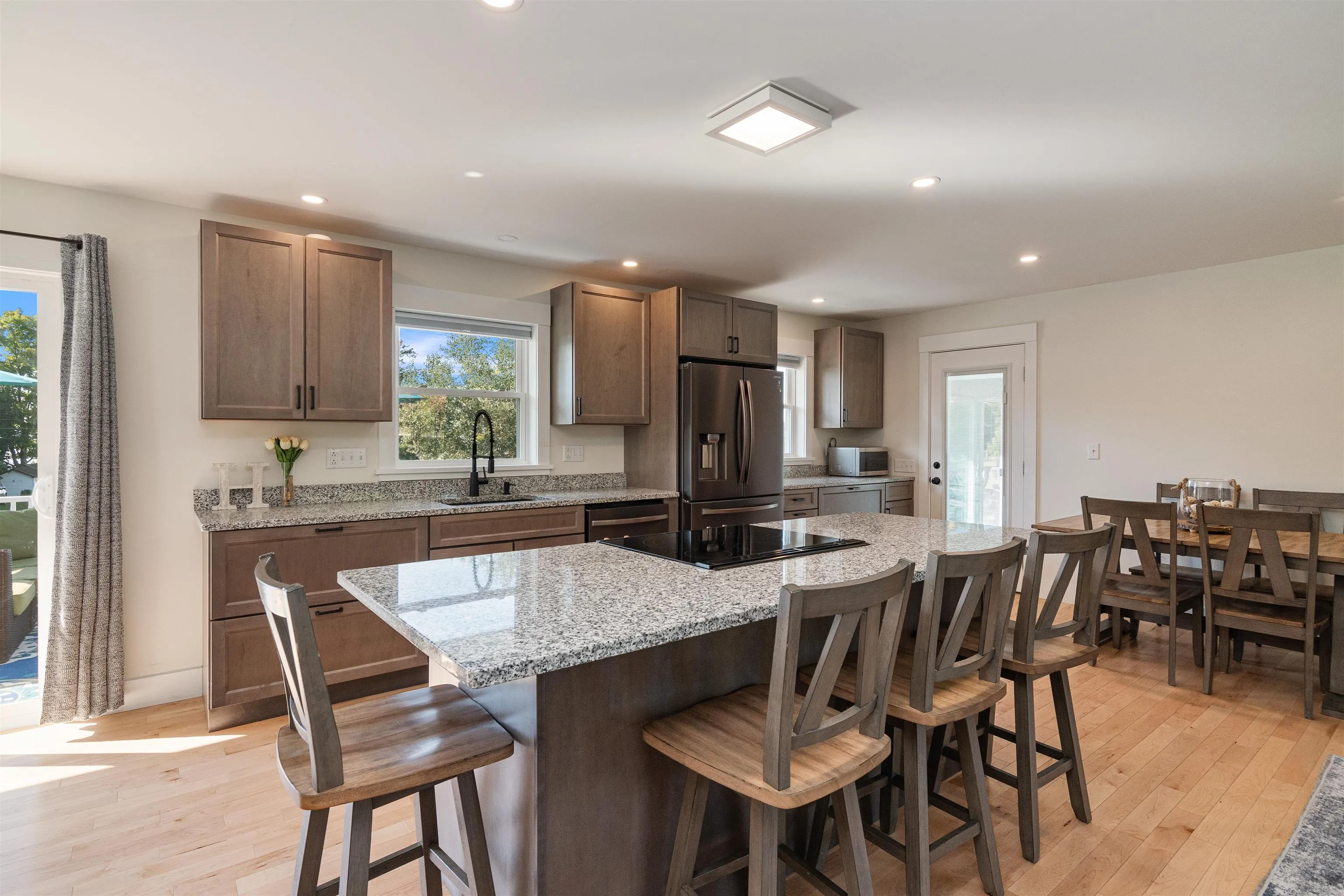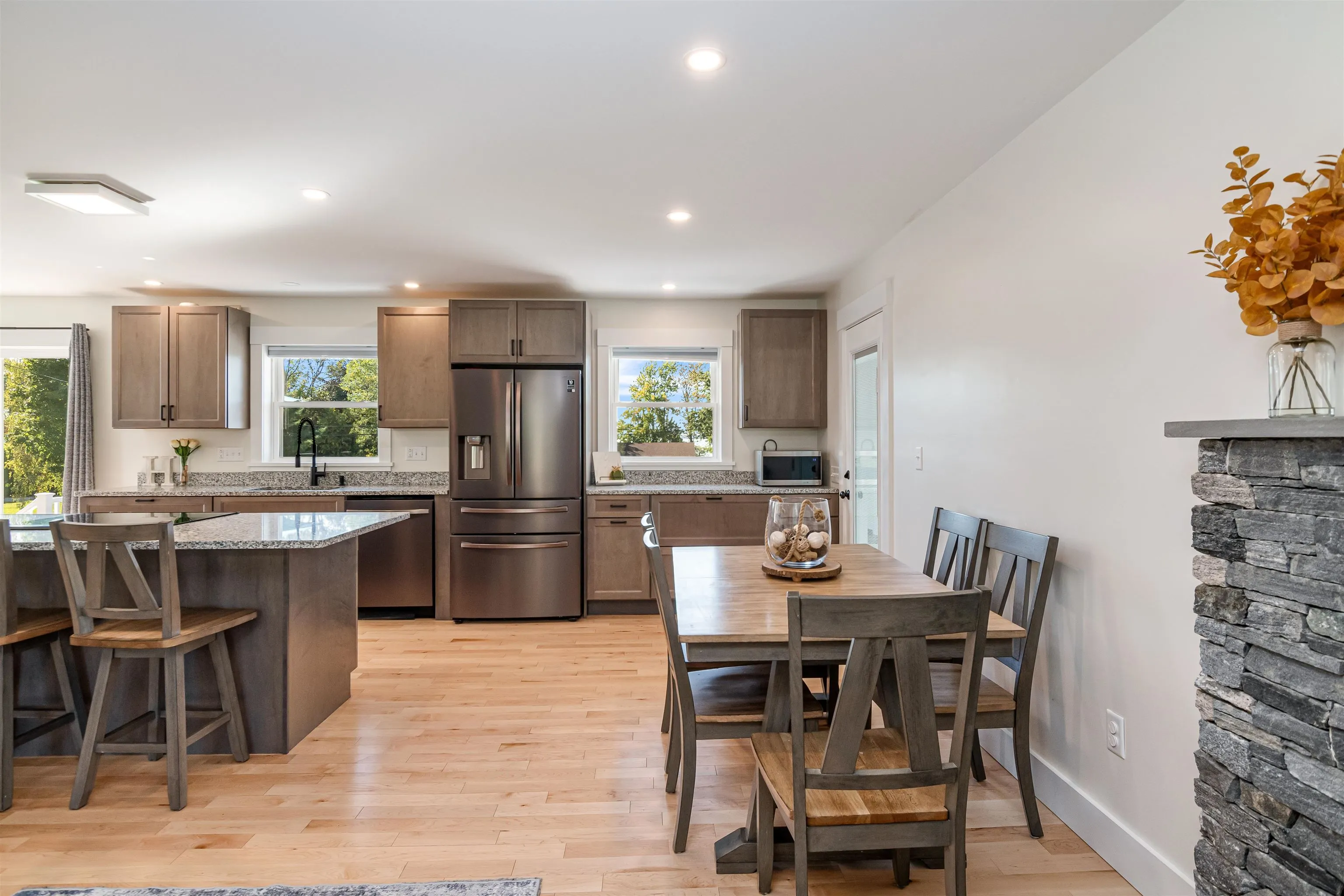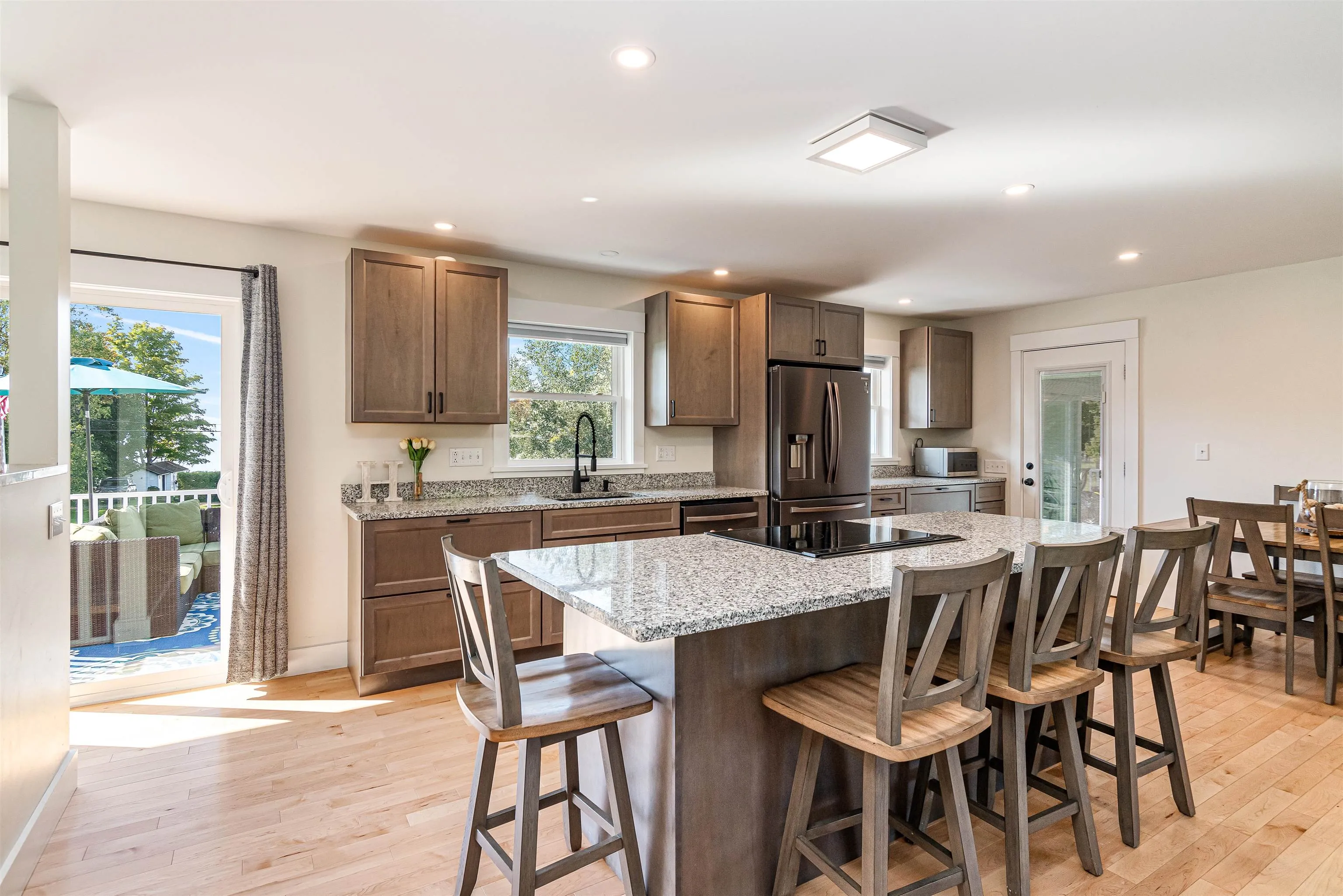 +"PublicRemarks": "Welcome to this beautifully maintained and thoughtfully updated home in a sought-after Milton neighborhood. Offering a perfect blend of comfort, style, and functionality, this property is move-in ready and designed for both everyday living and effortless entertaining. Step inside to a bright, open-concept main level filled with natural light. The spacious kitchen is a true centerpiece, featuring gleaming granite countertops, abundant cabinetry, stainless steel appliances, and a large peninsula with seating—ideal for casual meals or gathering with friends and family. The kitchen flows seamlessly into the dining and living areas, creating a warm and inviting space to call home. Upstairs, you’ll find generously sized bedrooms with hardwood floors and great natural light, including a spacious primary en-suite bedroom with double vanity that offers a peaceful retreat. The bathrooms feature tasteful updates and a fresh, modern feel. The finished lower level provides fantastic additional living space—perfect for a media room, playroom, home gym, or office—offering flexibility to fit your lifestyle. Step outside and enjoy your own private backyard oasis. The large, level yard is ideal for entertaining, gardening, or relaxing, complete with a fire pit area, storage shed, and plenty of room to play. The back deck offers a great space for grilling and outdoor dining, while the charming covered front porch adds to the home’s curb appeal and welcoming feel. Located close to local schools, parks, and amenities, and just a short drive to Lake Champlain, this home offers both convenience and a peaceful neighborhood setting. Don’t miss the opportunity to own this well-appointed home in one of Milton’s most desirable areas—schedule your showing today!"