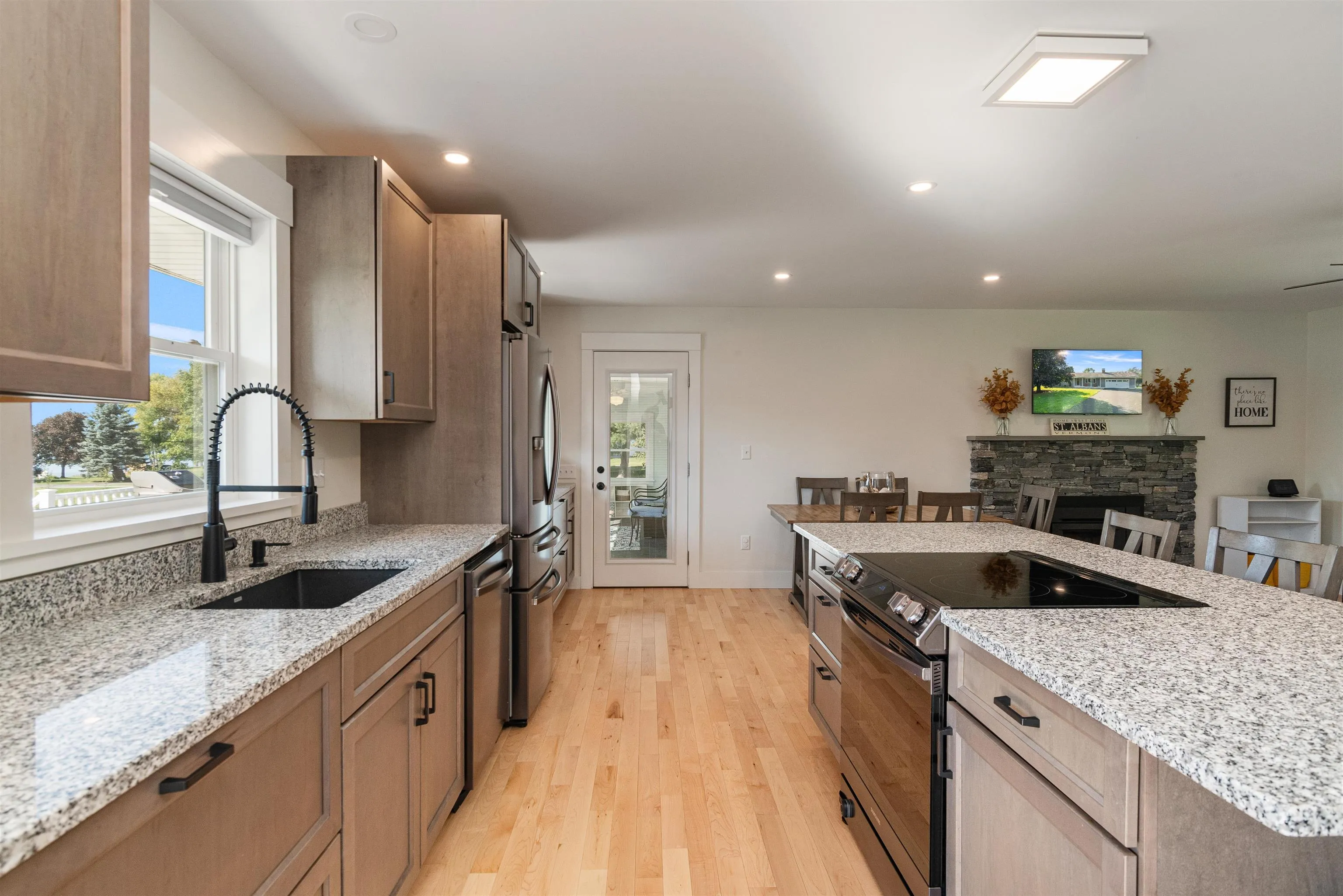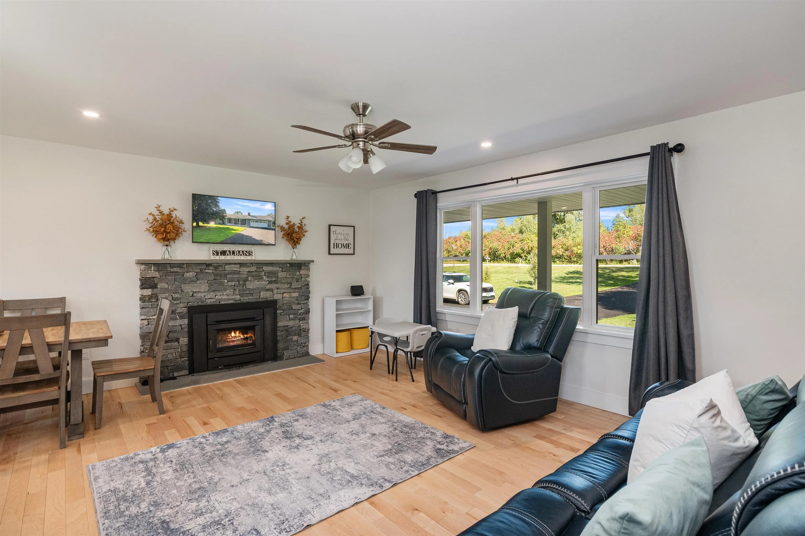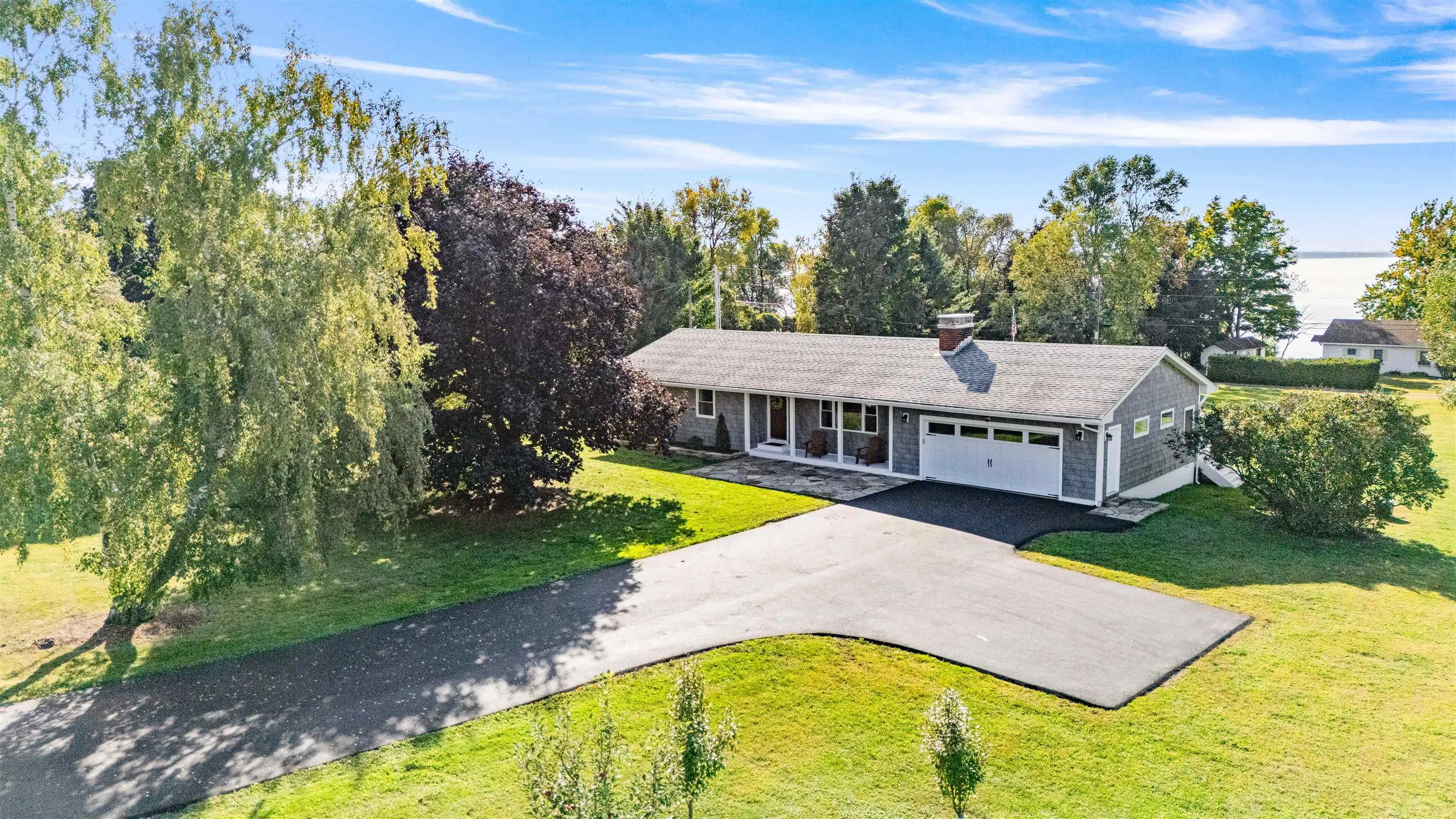 +"PublicRemarks": "Welcome to this beautifully renovated 3-bedroom, 2-bathroom ranch in St. Albans Town, offering serene views of Lake Champlain. Situated on a landscaped 1.39-acre lot, this home boasts over 2,000 sq ft of finished living space, including a partially finished basement for added flexibility. Inside, you'll find modern upgrades throughout, including a recently updated kitchen with granite countertops, charcoal-finish Samsung appliances, and all-new soft-close cabinetry. Additional updates include hardwood floors, crown molding, radiant heat, mini-splits, and new windows and doors throughout. The spacious living area is bright and open, enhanced by a custom wood-burning fireplace by JL Masonry. Both bathrooms have been stylishly updated, adding to the home’s contemporary charm. Outside, enjoy the sweeping new deck overlooking Lake Champlain, along with a spacious garden equipped with underground water and electric. The extensive exterior updates also include new siding, gutters, and hardscaping. The home features underground power/communication lines, a paved driveway, and much more. With an efficient combination boiler and on-demand hot water heater, along with newly installed footing drains, this home is truly move-in ready and built for comfort. Don’t miss the chance to enjoy peaceful living with lake views! (See attached list of upgrades and improvements)"