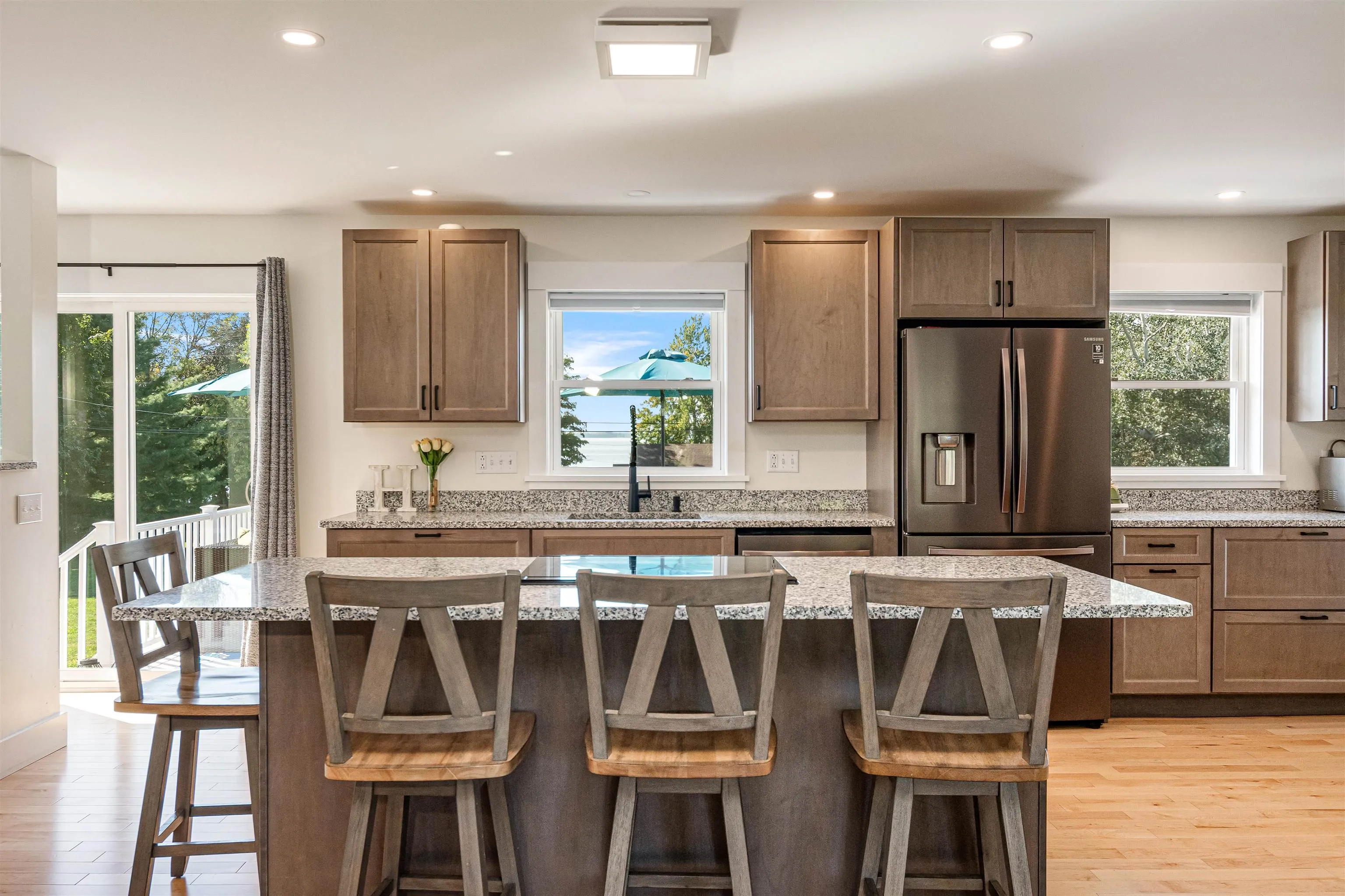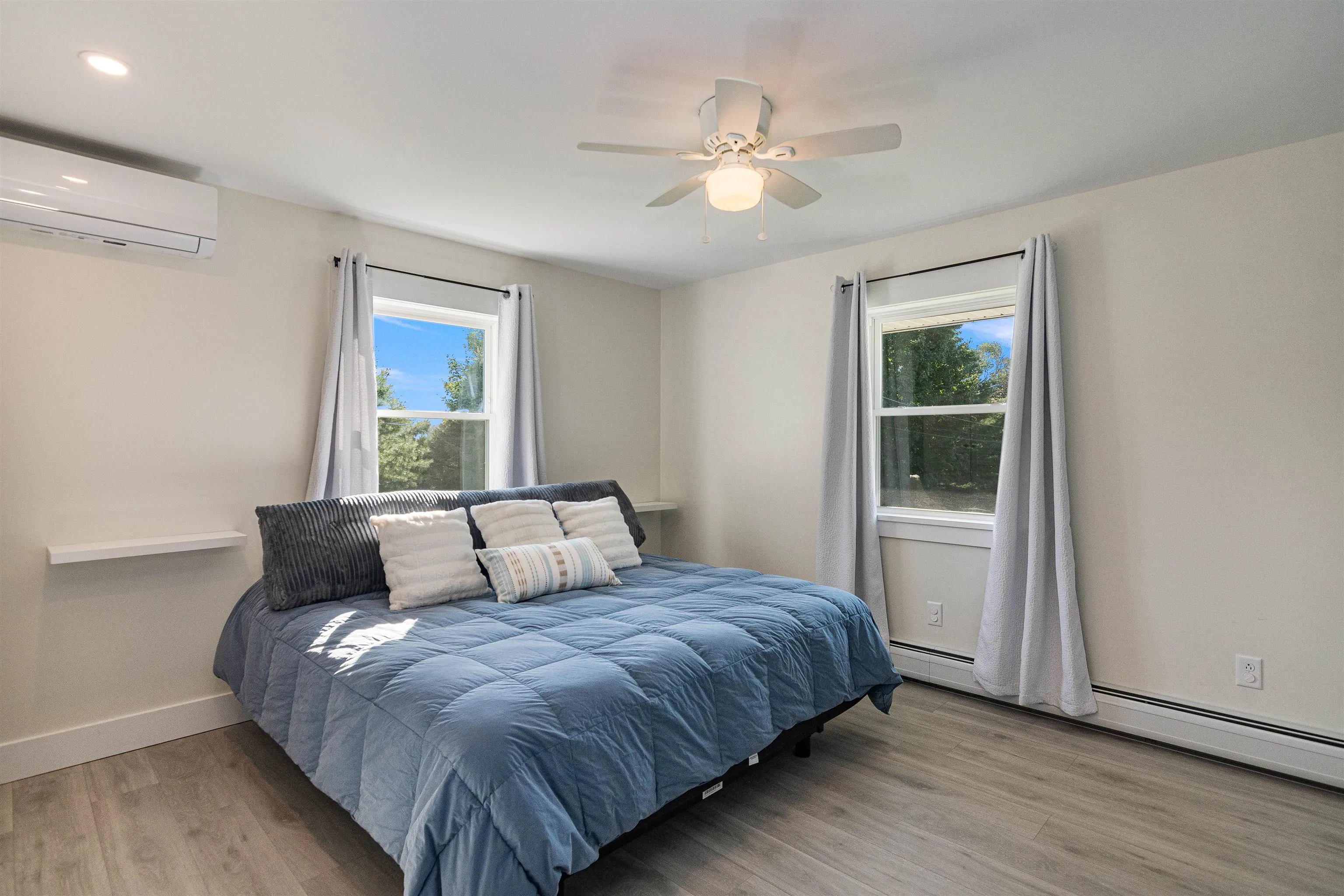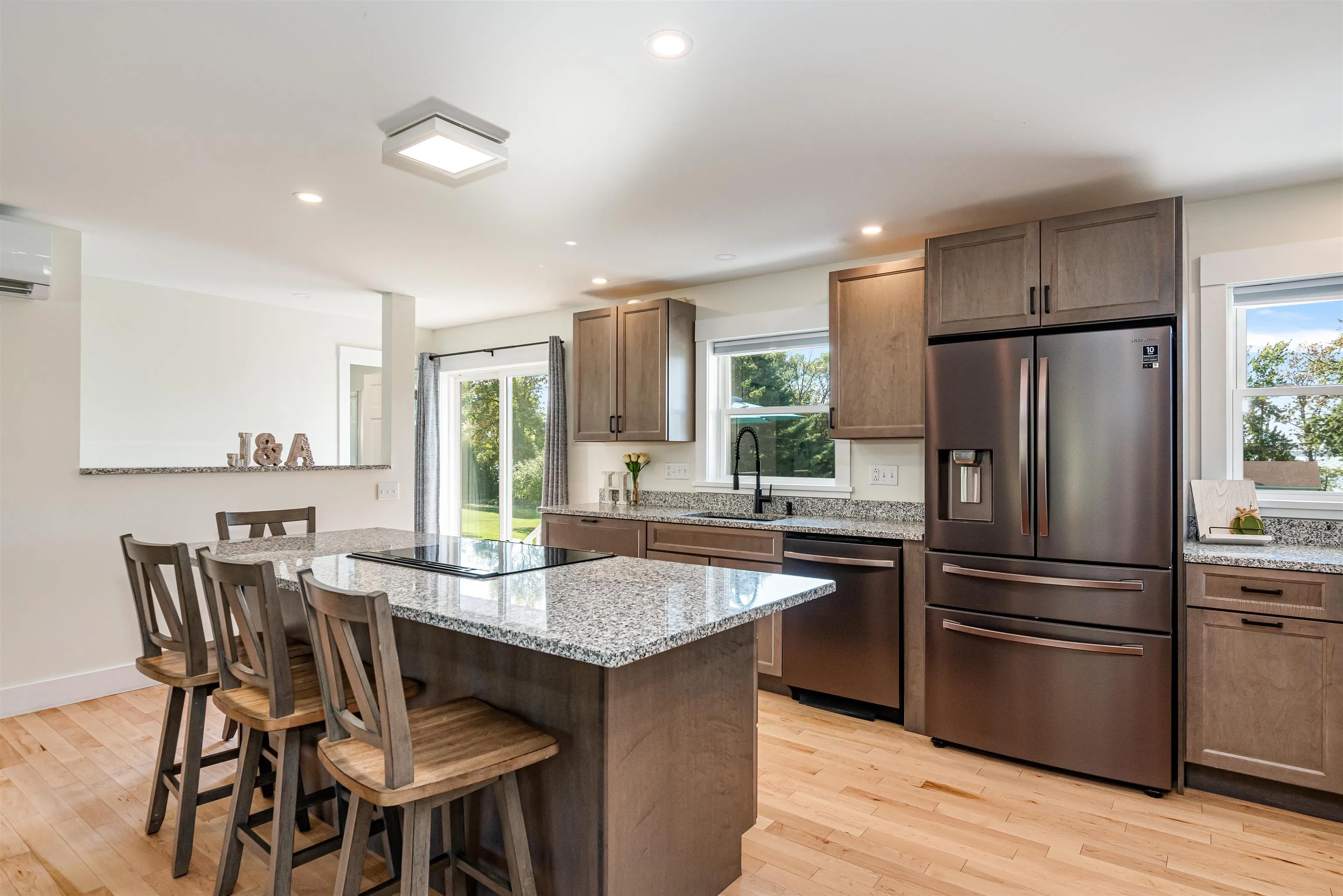 +"PublicRemarks": "Welcome to this beautifully renovated 3-bedroom, 2-bathroom ranch in St. Albans Town, offering serene views of Lake Champlain. Situated on a landscaped 1.39-acre lot, this home boasts over 2,000 sq ft of finished living space, including a partially finished basement for added flexibility. Inside, you'll find modern upgrades throughout, including a recently updated kitchen with granite countertops, charcoal-finish Samsung appliances, and all-new soft-close cabinetry. Additional updates include hardwood floors, crown molding, radiant heat, mini-splits, and new windows and doors throughout. The spacious living area is bright and open, enhanced by a custom wood-burning fireplace by JL Masonry. Both bathrooms have been stylishly updated, adding to the home’s contemporary charm. Outside, enjoy the sweeping new deck overlooking Lake Champlain, along with a spacious garden equipped with underground water and electric. The extensive exterior updates also include new siding, gutters, and hardscaping. The home features underground power/communication lines, a paved driveway, and much more. With an efficient combination boiler and on-demand hot water heater, along with newly installed footing drains, this home is truly move-in ready and built for comfort. Don’t miss the chance to enjoy peaceful living with lake views! (See attached list of upgrades and improvements)"
