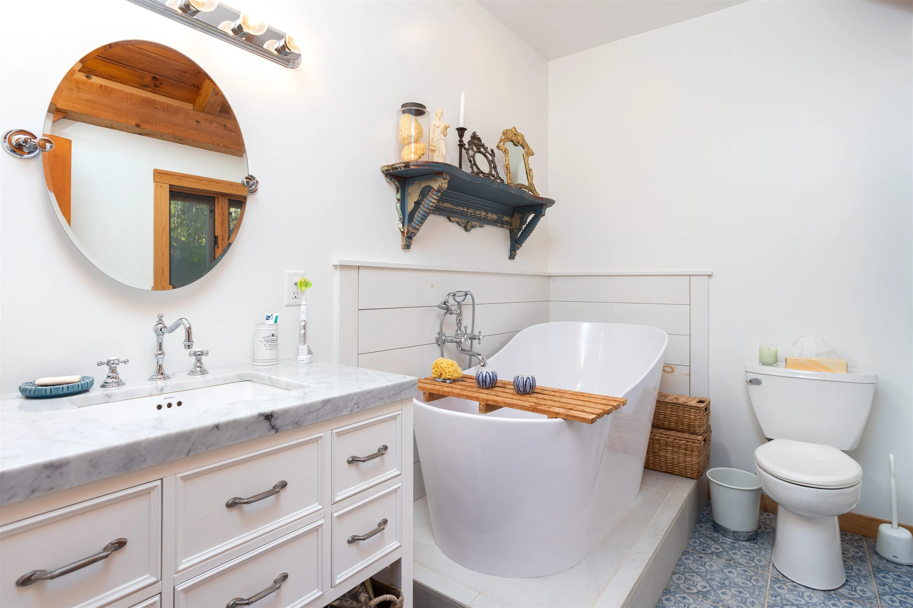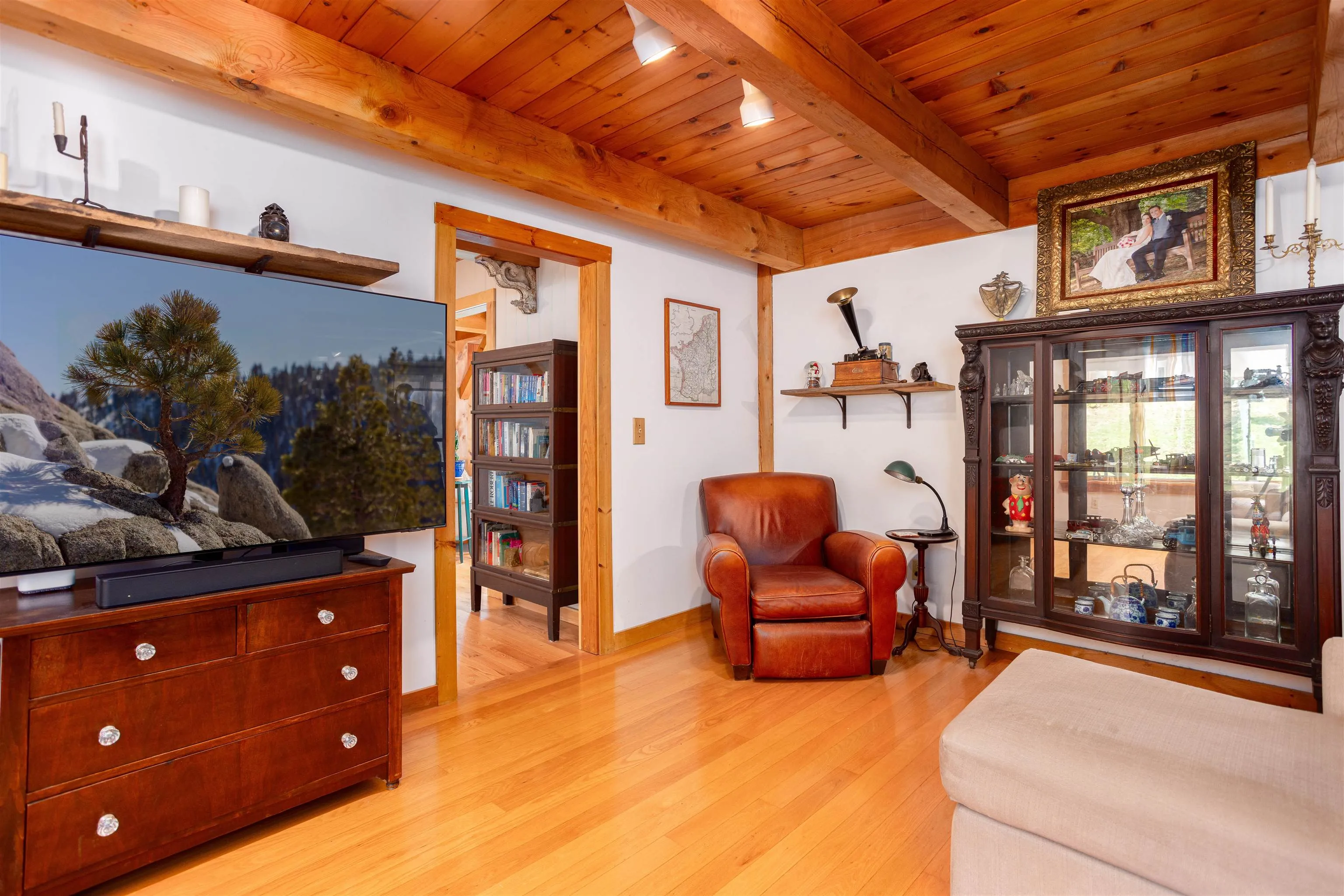 +"Features - Interior": "Cathedral Ceiling,Dining Area,Fireplace - Wood,Primary BR w/ BA,Natural Woodwork,Soaking Tub"
