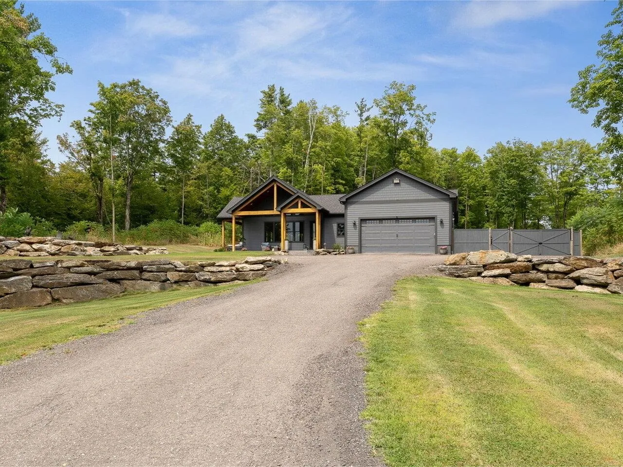 +"PublicRemarks": "Stunning Modern Home on 2.52 Acres – Private Setting Minutes from Williston. Nestled at the end of a cul-de-sac, this nearly new, 3-bedroom, 3.5-bath home offers the perfect blend of privacy, nature, and convenience. With lovely curb appeal, rock walls, landscaped grounds, and a welcoming front porch, you’ll feel at home before you even step inside. The open floor plan boasts soaring vaulted ceilings, abundant natural light, and a cozy gas fireplace in the spacious living area - perfect for gatherings. The kitchen features granite countertops, a large center island, stainless steel appliances, and a bright dining area with access to the backyard. A well-designed mudroom with laundry and half bath connects to the oversized 2-car garage. The serene primary suite includes a walk-in closet and a luxurious bath with dual vanities and a tiled shower. Two additional bedrooms and a full bath complete the main level. The finished lower level offers an additional 1,020 sq. ft. of versatile living space, including a family room, home office, workout room, and utility/storage area. Enjoy the outdoors with a fire pit, spacious backyard for entertaining, and a 3-bay outbuilding for extra storage or hobbies. Additional features include central AC, an on-site generator, and beautifully maintained landscaping. Located just minutes from Williston’s shops, dining, and I-89 for easy commuting, this home delivers modern comfort in a peaceful, natural setting."