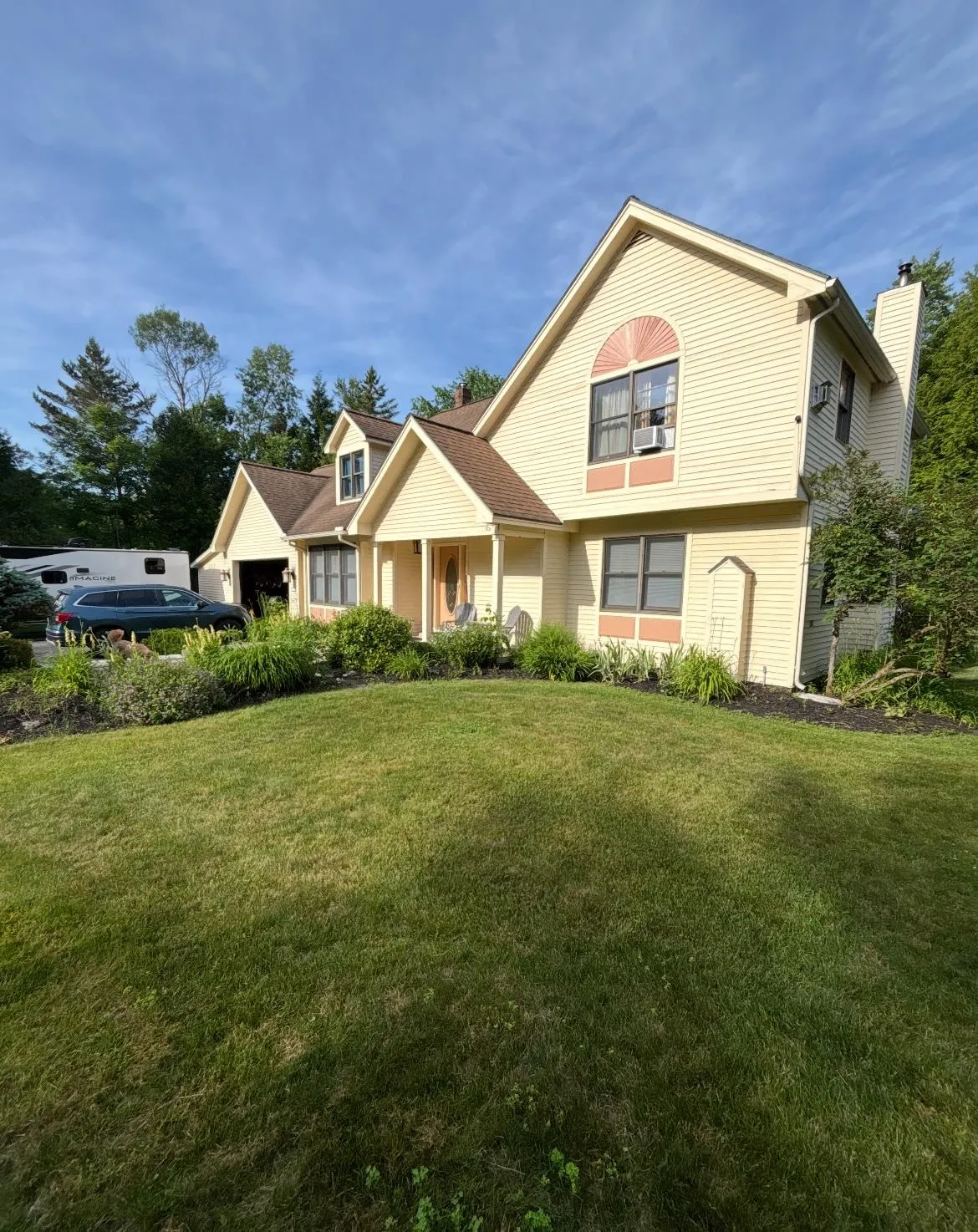 +"PublicRemarks": "Welcome to 322 Farmer Drive, where comfort and functionality are combined in a thoughtfully designed layout. Let’s start with the spacious eat-in kitchen, where you’ll find granite countertops, stainless appliances, a gas cooktop, a wall oven, and a dry bar prepped for a wine cooler. Sliding doors to the deck at both ends of the kitchen are perfect for summer barbecues and al fresco dining. Open to the kitchen, the living room benefits from an abundance of natural light, with a glass-front pellet stove to warm up on cooler nights. Boasting a built-in window seat and gas fireplace, the sitting room is equally ideal for cozying up with a book or family game nights. The second floor offers 4 bedrooms and 2 full baths. The primary suite is a true retreat, complete with a fireplace, cedar walk-in closet, and en suite bath with dual sinks, a jetted tub and separate shower. Enjoy the changing seasons from the three-season porch overlooking the backyard. The outdoor space also boasts an established garden bed that wraps around the front and side of the house, a well producing Gala apple tree, a fragrant lilac tree, landscaped walkways, a built-in fire pit, and a creek winding through. There’s a two-car attached garage with a separate enclosed storage bay for lawn equipment, garden tools, and recreational gear. The basement offers additional storage space, as well as a workshop area. Set on 0.41 acre abutting the St. Johnsbury Forest and the trail system it contains, this property offers the perfect balance of inviting indoor living and expansive outdoor enjoyment in a desirable location close to the local hospital and St. Johnsbury Academy—a true must see!"