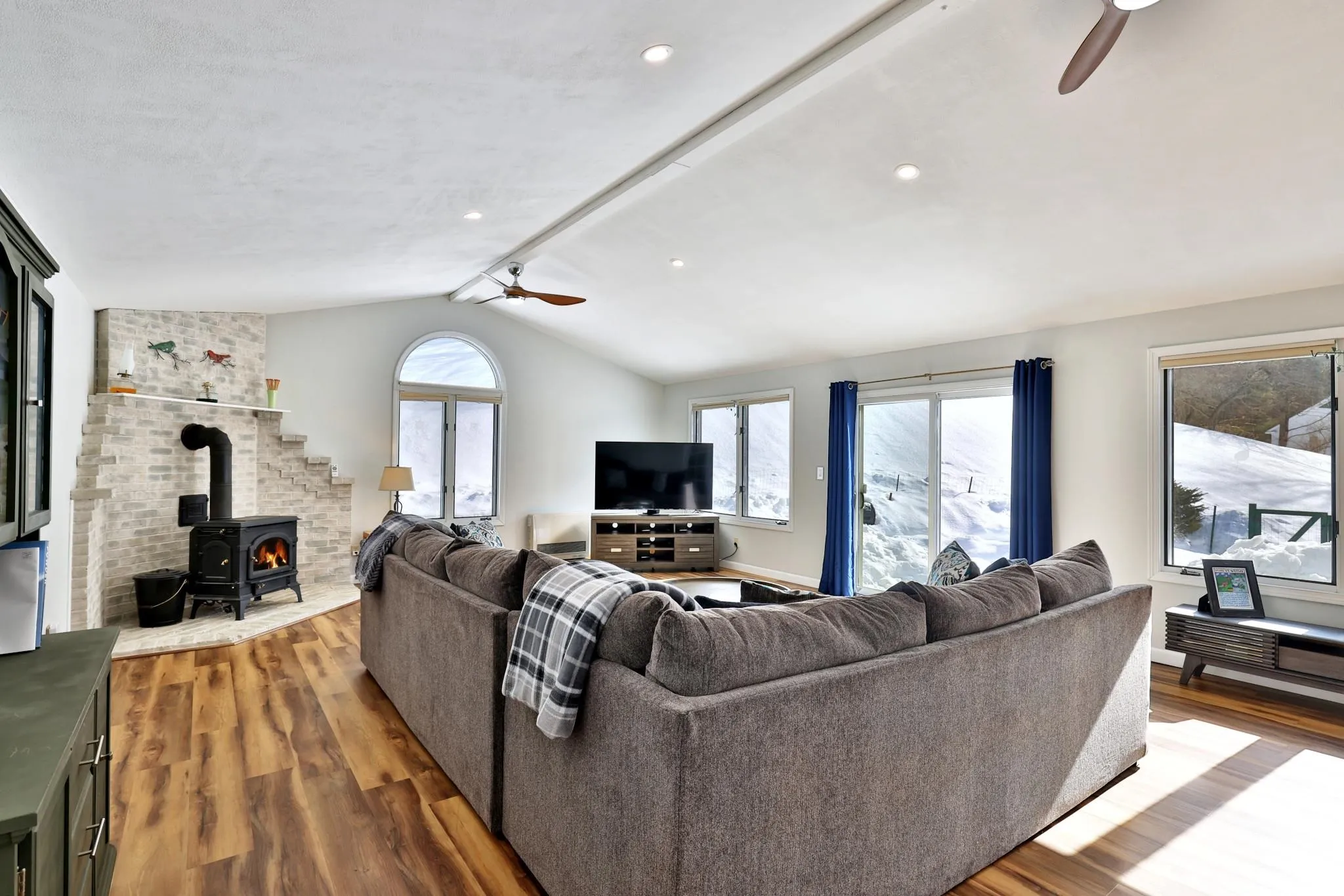 +"PublicRemarks": "Located on the scenic Stockbridge Common, this expanded ranch-style home offers modern updates and timeless charm. Features include a renovated kitchen and bathrooms, an expansive great room with vaulted ceilings and a cozy woodstove for apres-ski relaxation, a gas fireplace for dining ambiance, a heated mudroom, full basement, and two-car garage. The main home retains beautiful refinished original hardwood floors, while the kitchen and great room offer practical and attractive modern upgrades. In spring and summer, enjoy the covered front porch, private back deck, a vegetable garden, greenhouse - even your own basketball hoop! Recent infrastructure improvements include a roof-mounted solar array with net metering, a standing seam roof, new Bosch furnace with heat pump for efficient heating and cooling, and high-speed fiber optic internet. Just steps from your door, explore the historic Stockbridge Common with a charming schoolhouse, equestrian farm, and the iconic Stockbridge Town Meeting House. Centrally located in the Green Mountains, it’s minutes from Rochester village, world-class ski resorts (Killington & Pico), Woodstock, Middlebury College, and only a few hours’ drive from Montreal, Boston, and NYC. Don’t miss this opportunity! Showings by appointment only – call today!"