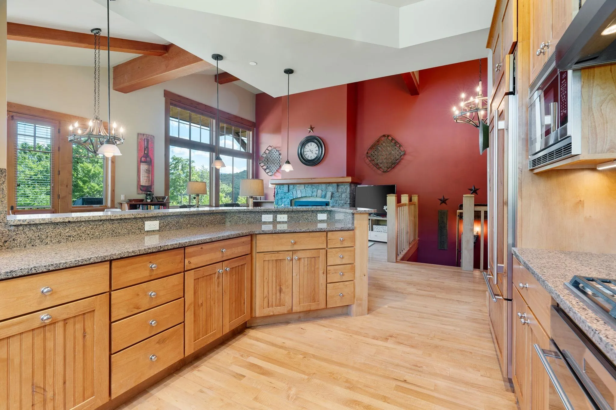 +"Features - Interior": "Cathedral Ceiling,Fireplaces - 3+,Kitchen Island,Kitchen/Dining,Vaulted Ceiling"