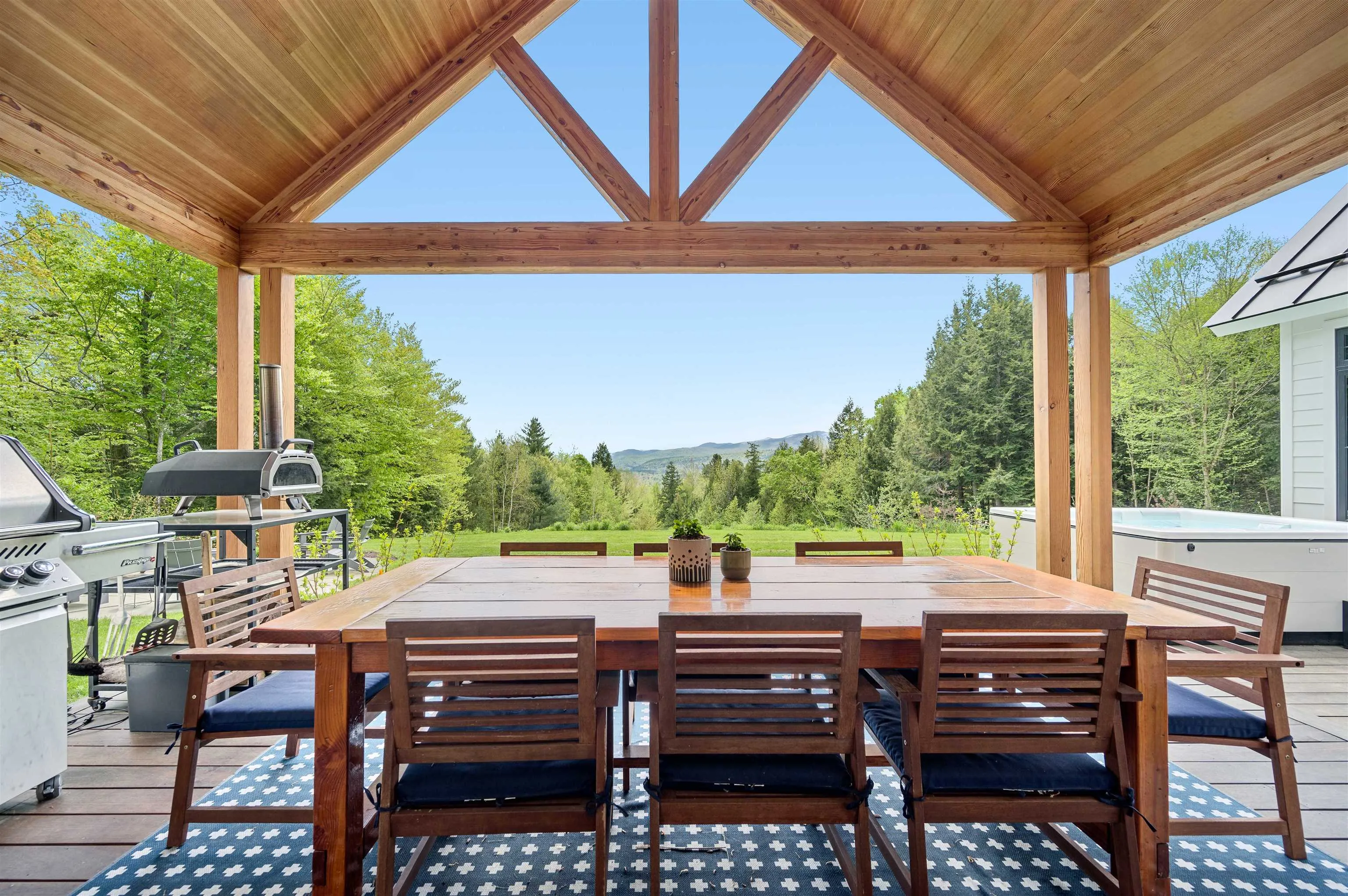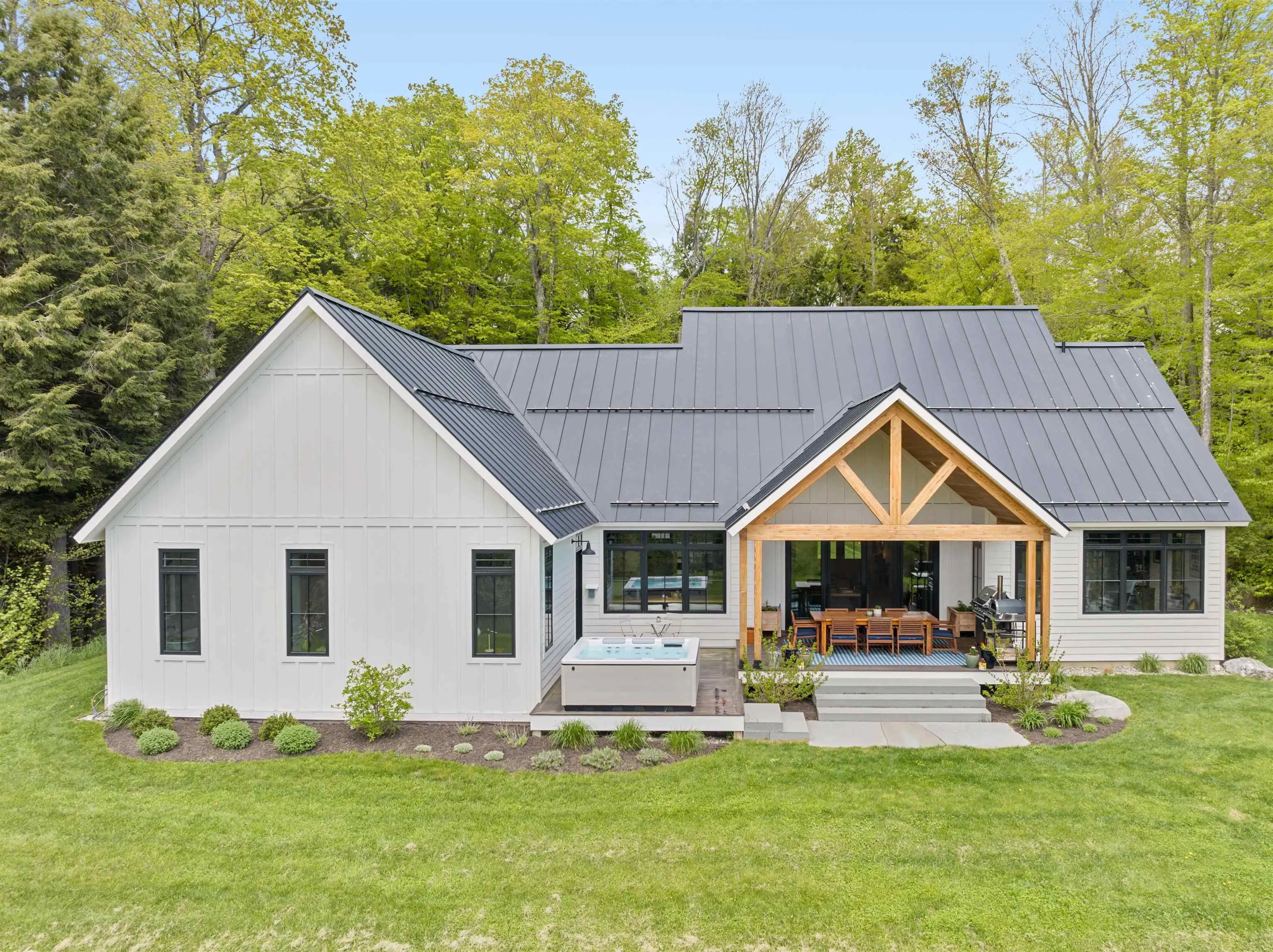 +"PublicRemarks": "Tucked away in the sought after Stowe Club neighborhood above Stowe Country Club, this 6.5 acre, 4 bedroom home is the perfect balance of a private retreat with convenient access to all of Stowe. Upon entering, you are greeted by the impressive 18-foot ceilings and expansive windows offering mountain vistas from every vantage point on the main level. The floor plan includes a main-floor primary bedroom suite, featuring an ensuite bathroom and custom-designed closet. Two additional bedrooms on this level share a full bathroom. The fourth bedroom is a separate space located on the second floor, complete with ensuite bathroom. The gourmet kitchen is appointed with everything a chef desires, including a Sub-Zero refrigerator, professional Wolf oven, and an integrated Elkay water bottle filler within the walk-in pantry. The finished lower level features a stylish bar area, a full-sized pool table and a comprehensive home gym with a rock climbing wall. A state-of-the-art home movie theater was meticulously designed with acoustic paneling and specialized lighting for an immersive experience. Extensive high-end systems throughout the home include central air conditioning, radiant heating, central dehumidifier and a Kohler generator prepared to serve the entire residence. Enjoy the built-in stone fire pit, the inviting hot tub and cultivate your own produce in the designated vegetable garden area. This property is a gateway to the ultimate Stowe lifestyle.Viewing by appointment only"