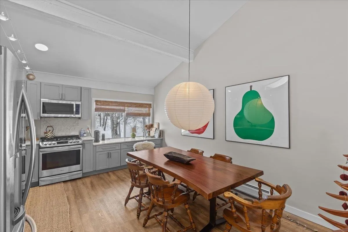 +"PublicRemarks": "Ski-in/ski-out end-unit residence ideally situated on the Derby Trail with direct access to the Toll House Double Lift at Stowe Mountain Resort. Fully renovated throughout, this light-filled home offers a thoughtfully designed open layout that blends classic chalet charm with modern comfort. The chef’s kitchen anchors the main living space and flows seamlessly into the dining and living areas, highlighted by a wood-burning fireplace for apres-ski ambiance. The floor plan includes a spacious primary suite with en-suite bath, a well-appointed guest bedroom, and a bunk room featuring custom built-in bunks, maximizing sleeping capacity without sacrificing style or functionality. Offered fully furnished and turnkey, the property is ready for immediate enjoyment or rental use. Additional features include a large private deck for outdoor relaxation and a generous storage closet suited for skis, bikes, and all seasonal gear. A rare opportunity to own a renovated, slopeside end unit in one of Stowe’s most desirable private on-mountain locations. Move on this unit today before stricter STR town regulations go into effect."