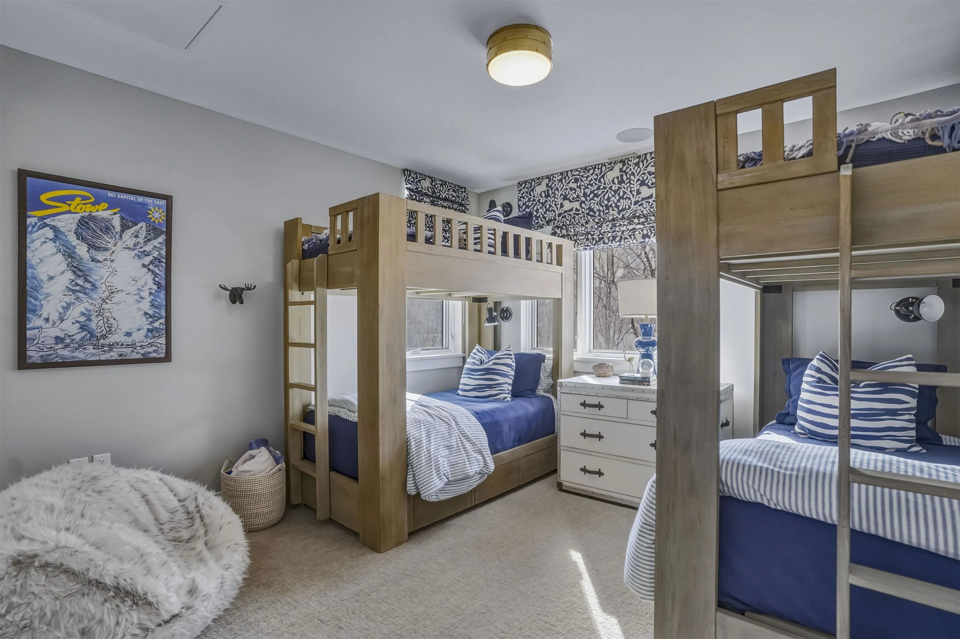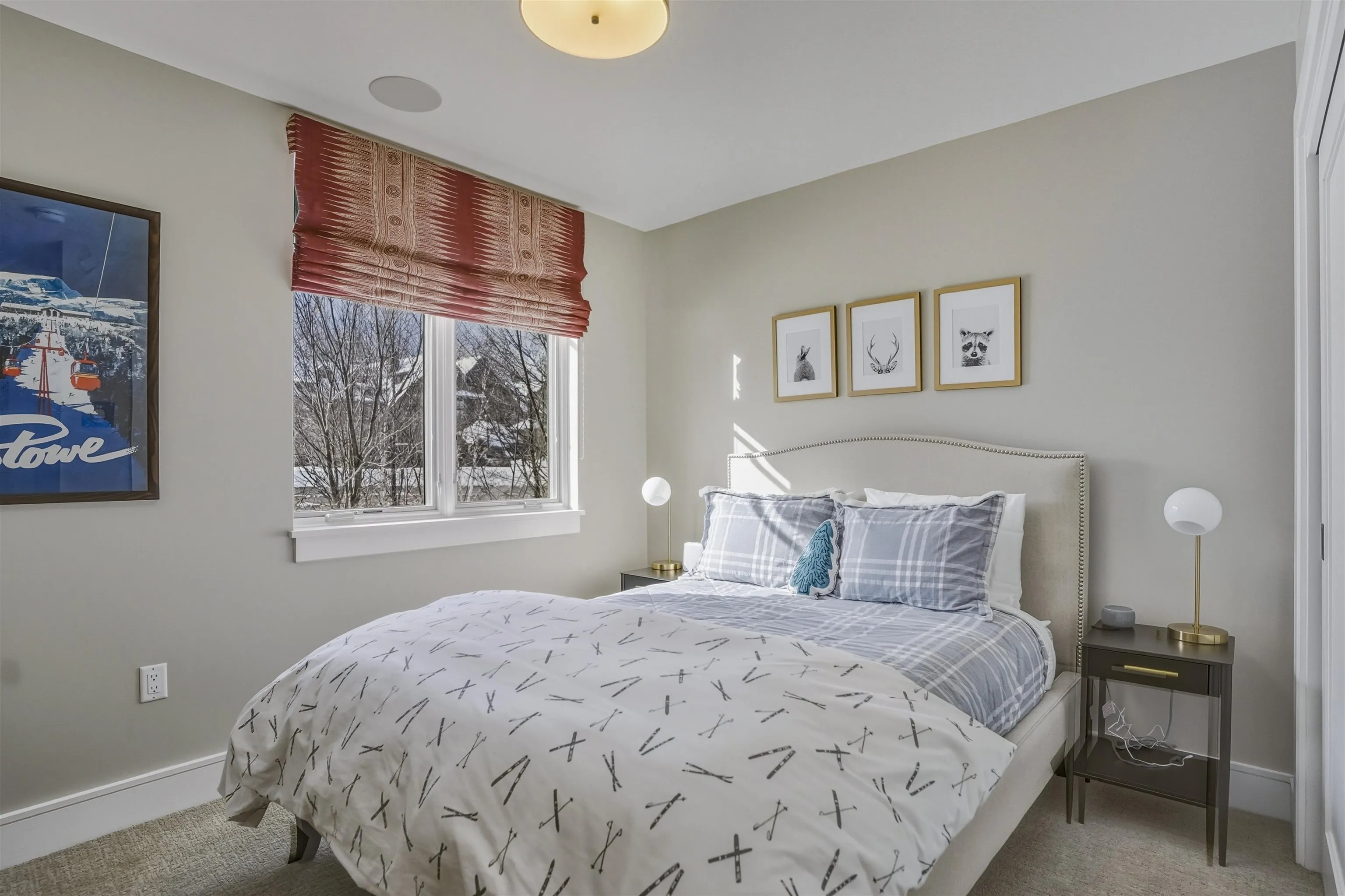 +"Directions": "I-89 to Exit 10. Rt 100 N. to Rt 108 (Mountain Rd) 7 miles. Right at Spruce Peak at Stowe sign on to Big Spruce Rd. Left on Red Sled Drive, then left on Sterling Lane. Last building on left."