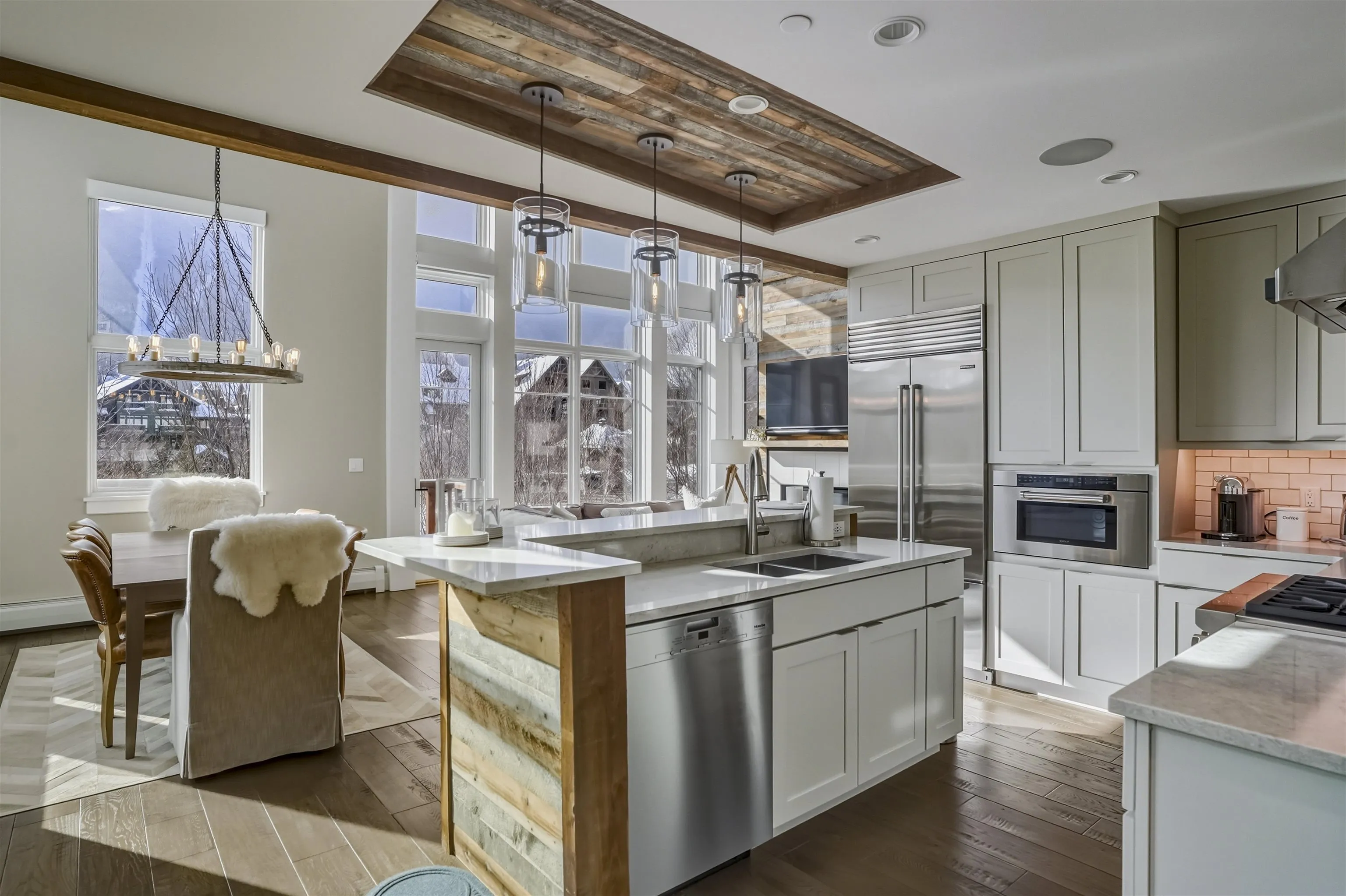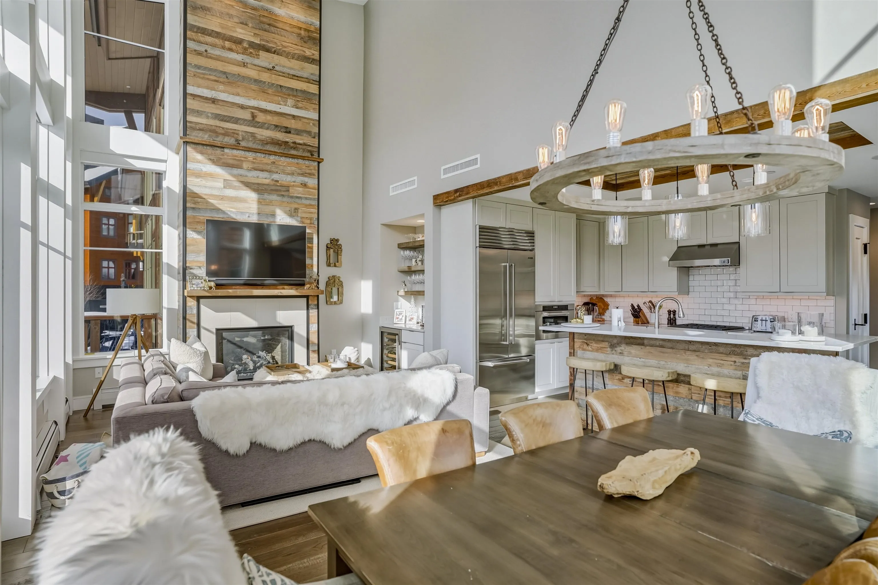 +"PublicRemarks": "Location, Location, Location. Beautiful Village Townhome. Steps away from the heart of Spruce Peak! Walk out your door to Adventure Center, skating rink, restaurants, pool, golf course and Club at Spruce Peak. This Mountain Modern home has a very warm, welcoming and inviting feel. Beautifully furnished with small bar, wine fridge, Wolf and Meile appliances. Amazing open living room, Dining room, kitchen surrounded by floor to ceiling glass. Four bedrooms, and three and a half baths. Live in the heart of Spruce Peak. Come find your home on the mountain!!"