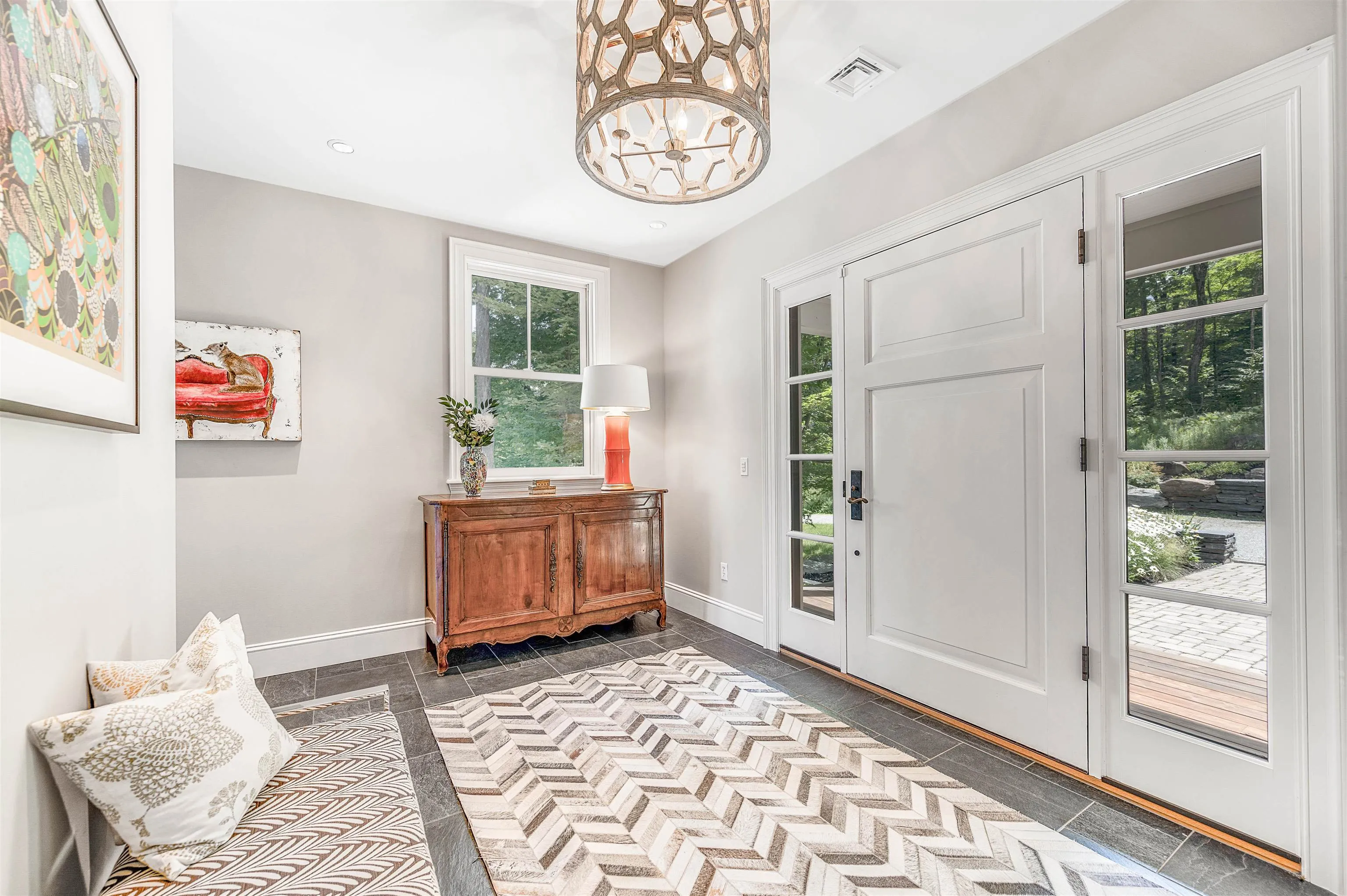+"PublicRemarks": "Perched in the hills of Norwich, Vermont, this curated "Scandinavian-esk" property offers exceptional contemporary living surrounded by nature's inspiring beauty. Architecturally redesigned by Smith and Vansant in 2010, this home offers an open floor plan with easy gathering spaces bathed in natural light and warmed by the Finnish Tulikivi soapstone stove. The French doors open to a patio, an airy deck, and three season porch which overlook the property's park-like setting. The second and third floors offer multiple bedroom configurations as well as a lovely Primary bedroom with a walk-in closet and a private deck for morning coffee. Stroll along stone pathways through the extensive perennial gardens designed by Ben Falk of Whole Systems Design. Invite friends and family to stay in the contemporary studio guest cottage which overlooks the apple and pear orchard, or in the rustic Writer's Cabin with a wood stove, sleeping lofts, Swedish composting toilet, and kitchenette. The barn offers two parking bays, extra storage, and a workshop. This idyllic 10-acre property with broad Southern exposure and 37 solar panels (a near-net-zero home) is bordered on three sides by the Norwich Town Forest, Upper Valley Land Trust, and National Forest, offering exceptional privacy and direct access to walking, hiking, and skiing trails. Located less than 20 minutes from Dartmouth College/Hanover, NH and VT Law School, 2+ hrs to Boston, 4+hrs to NYC. Showings start May 1, 2026"