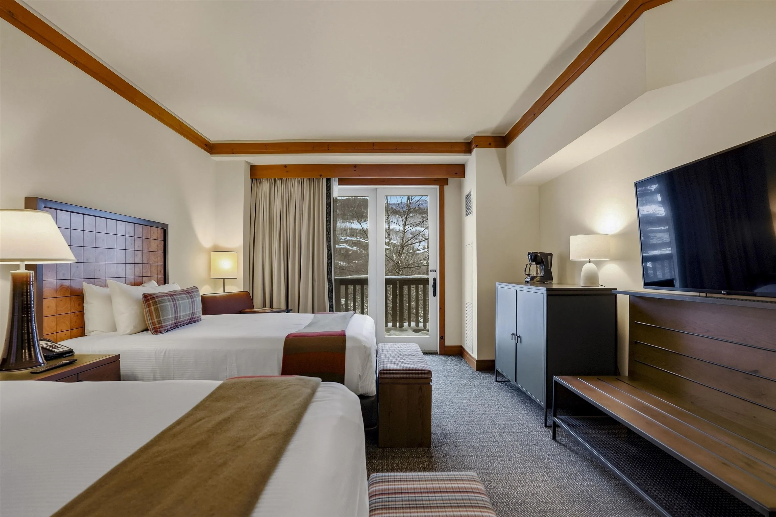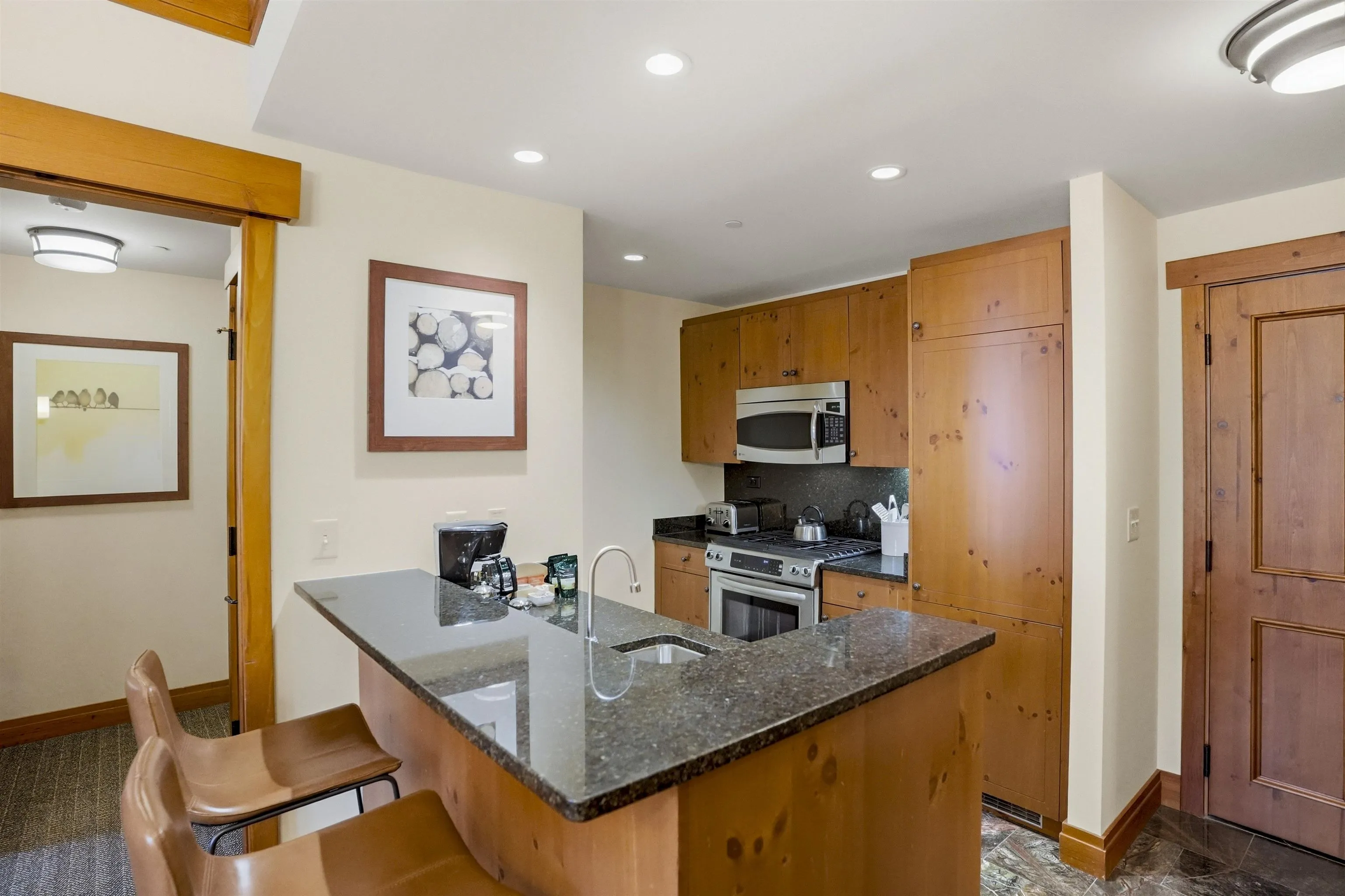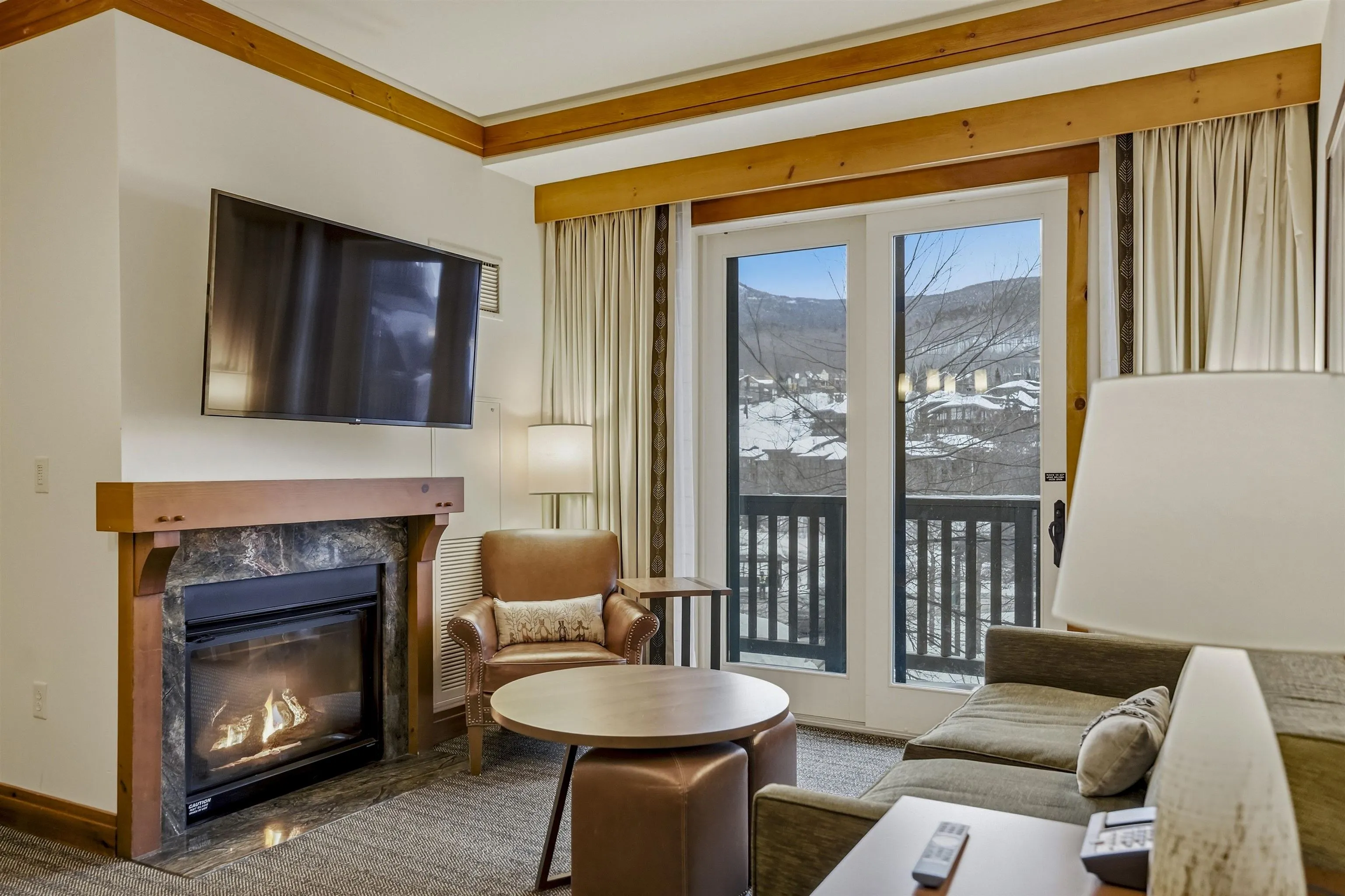 +"PublicRemarks": "Fully renovated two-key two-bedroom in the Lodge at Spruce Peak. Super cozy, warm and welcoming. Beautiful fireplace, amazing balcony to look over village, luxury bathroom with soaker tub after a long day of skiing. A full kitchen and stack washer and dryer for all your gear. Steps away from slopes, pool, skating rink, restaurants and all that Spruce Peak has to offer!! Come find your home on the mountain!!"