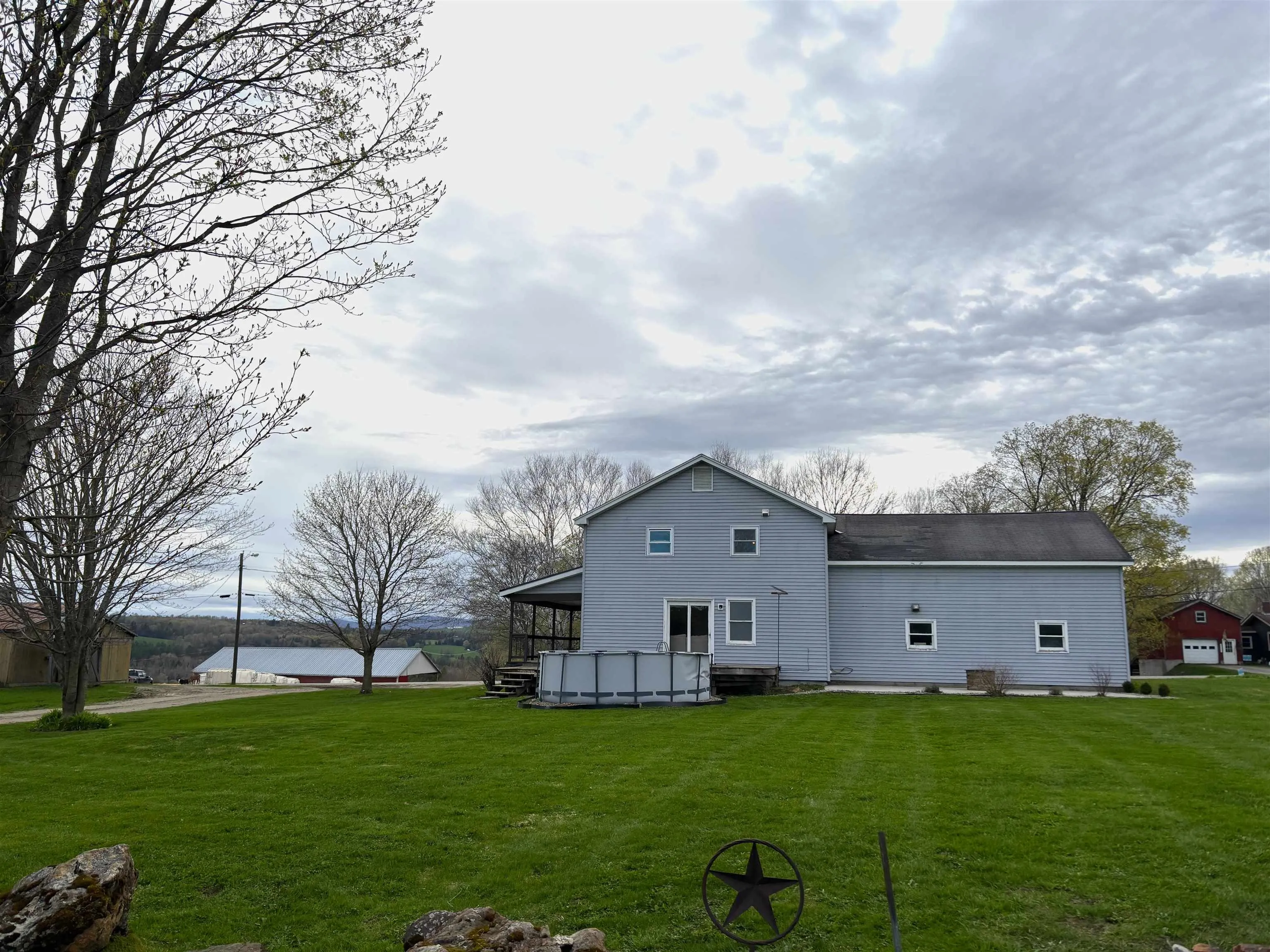 +"PublicRemarks": "Down a tree lined lane this large farmhouse is sited on 3 acres of farm land with stunning views in all directions. Located adjacent to a family farm you’ll hear the bucolic mooing of your neighbors and if you’re lucky you’ll be invited into the sugar house for a taste of maple when the sap is running. This home has been a generational family farm house and has room for a large family with a smart layout having been built in 1989. A wrap around covered porch embraces the home and creates a space for grilling, entertaining while showcasing the views in all directions. The first floor offers an oversized kitchen and dining room, a family room, half bath combined with laundry and an attached 2 car garage. The second floor features an enormous primary bedroom with a view of emerald fields in addition to 3 guest bedrooms and a large full bath. The attached two car garage is right off the kitchen for easy access with groceries. Currently the owners have been heating with wood however there is a geothermal heating/cooling system that is in place but not functional at this time. The property is adjacent to VAST and Sutton’s roads are open to ATVs so taking your side by side up the hill to the Kingdom Corn Maze for ice cream on a summer day is an option. With all that the Kingdom has to offer don’t miss out on this move in ready country home."
