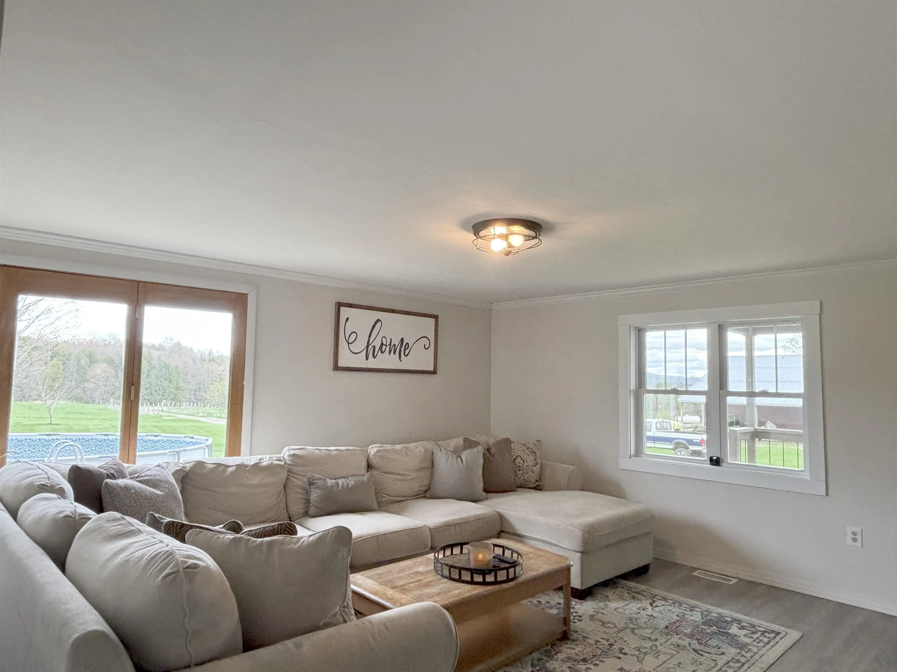 +"Remarks-Public": "Desirable, move-in ready ranch with a finished walkout basement offering over 3,000 sq ft of versatile living space! From the welcoming covered front porch, step inside to a spacious, open-concept main level designed for easy single-level living. The bright living area features Brazilian walnut hardwood floors (new in 2020), abundant natural light, and a dining space with direct access to the back deck. The centrally located kitchen offers ample cabinetry, generous counter space, and stainless steel appliances. The primary suite wing includes a well-sized bedroom with deck access, a walk-in closet with a built-in vanity and sink, and a full bath with a step-in shower and jacuzzi tub. On the opposite side of the home, two additional bedrooms share a full bathroom, creating an ideal layout. A mudroom with first-floor laundry and access to the attached two-car garage completes the main level. Downstairs, the finished walkout basement offers exceptional flexibility. A large recreation room features a cozy gas fireplace and direct backyard access, while an adjacent bonus area includes a bar with a fridge, perfect for entertaining. The lower level also includes a bright fourth bedroom, a ¾ bathroom (new in 2025), and three additional rooms, currently office, playroom, and workout spaces. Set on a beautifully landscaped 0.52-acre lot, the outdoor space shines with a partially in-ground pool with surrounding decks, a fully fenced yard (including separate pool fencing), raised garden beds, flower beds designed for continuous blooms, and an expansive deck with an awning that offers stunning sunset views. See features sheet for a complete list of features/improvements, including new Pella windows in 2025 (Living Room/Bedrooms), owned solar panels, and first-floor AC! Located in sought-after Clearview Estates, just minutes to Milton schools, parks, shopping, dining, local recreation opportunities, and only 10 minutes to I-89—this home offers both comfort and convenience."