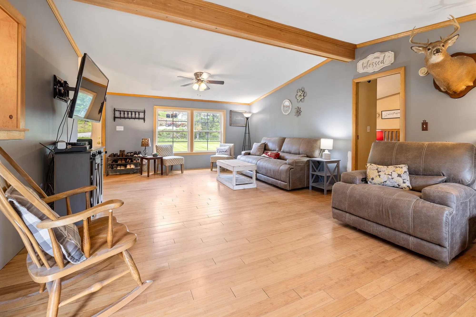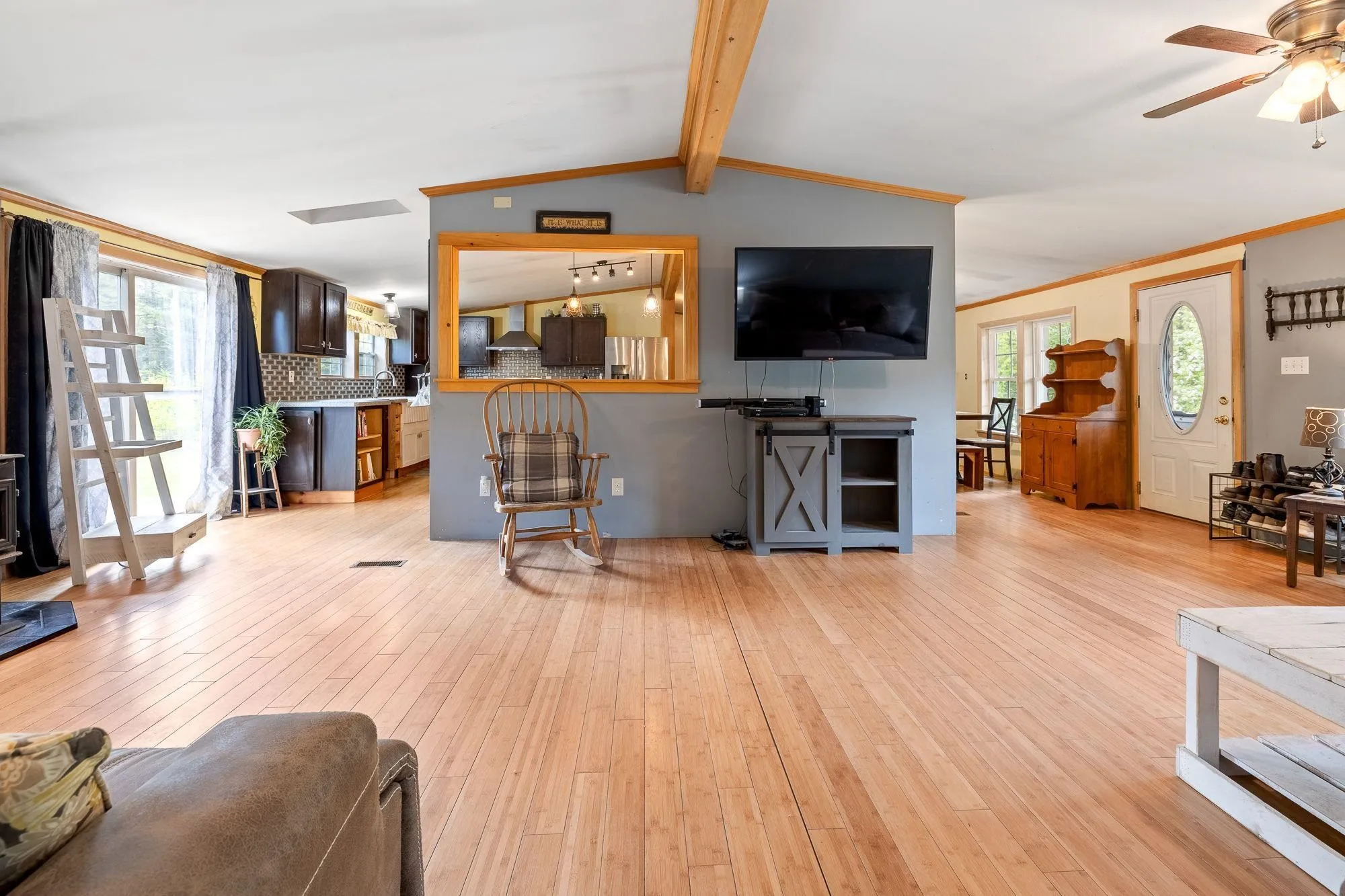 +"PublicRemarks": "Welcome to this spacious and well-maintained 1996 manufactured home, offering over 1,700 square feet of comfortable living space. With three bedrooms and two full bathrooms, the bright, open-concept layout is ideal for both everyday living and entertaining. The updated kitchen provides ample cabinet storage and flows seamlessly into a dining area accented by a cozy wood-burning fireplace. The expansive living room features a pellet stove—perfect for staying warm during Vermont’s colder months. The primary suite is a relaxing retreat with a large walk-in closet and an en-suite bathroom with a walk-in shower. A separate laundry room adds convenience to your daily routine. Start your mornings on the large front deck with a cup of coffee, and make the most of the oversized garage, which offers excellent storage and potential for future expansion. Located on a quiet, town-maintained dirt road, this property combines peaceful rural living with year-round accessibility."