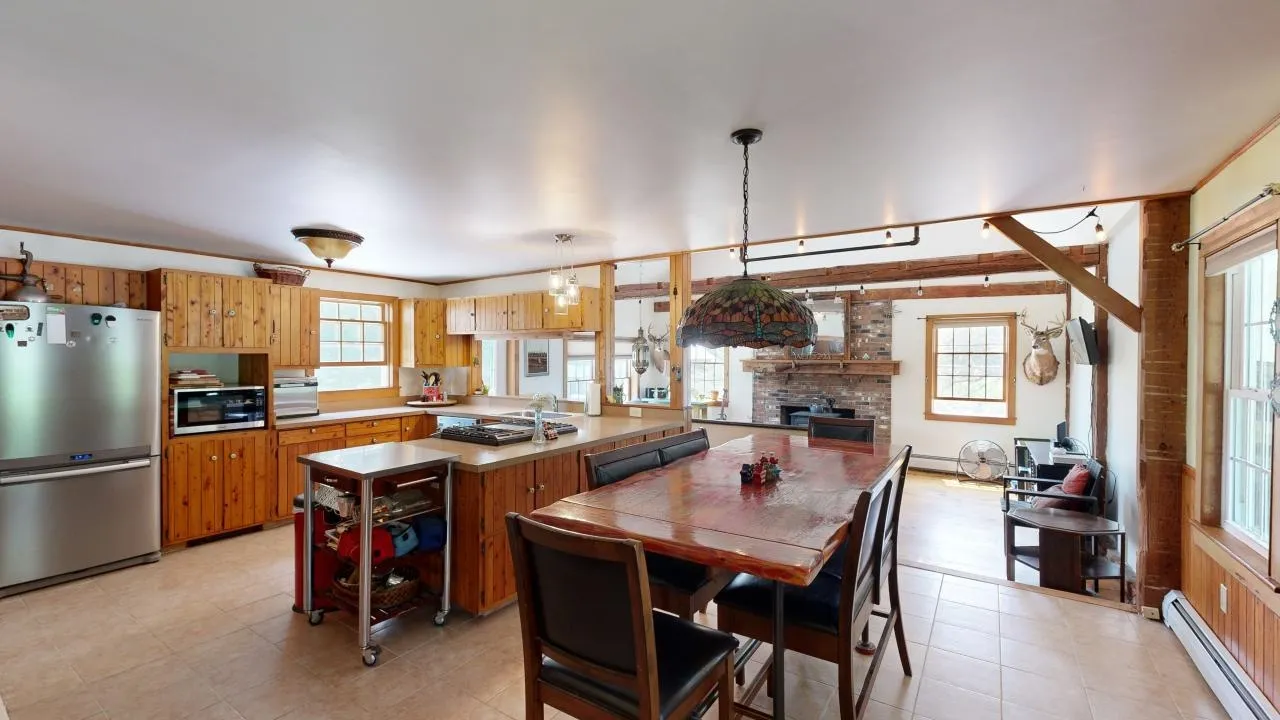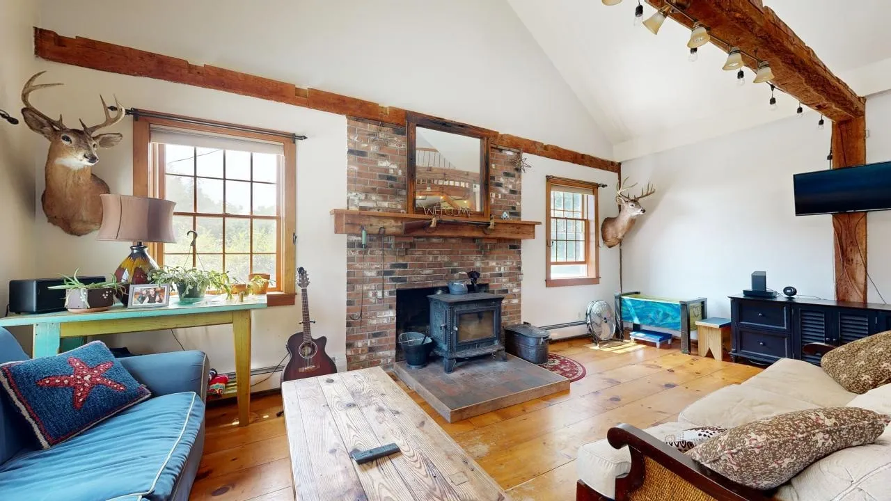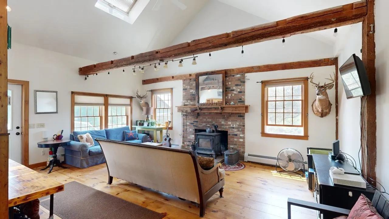 +"Remarks - Public": "Welcome to your serene retreat in Underhill, Vermont! This charming 3-bedroom, 3-bath farmhouse sits on 16 lush acres, effortlessly combining rustic charm with modern comfort. The open kitchen, with a breakfast bar, is ideal for casual meals, while the cozy living room features exposed beams and a warm wood stove. The primary bedroom with an en-suite bath is conveniently located on the first floor. Additional bonus spaces include a first-floor office or den with a private entrance, and separate heating and cooling, plus an upstairs loft that serves as great overflow space. Step outside to the expansive back deck and take in the views of your private, picturesque acreage and classic stone wall. A mowed path leads to a tranquil creek, perfect for fishing or enjoying nature’s soothing sounds. The well-maintained Vermont barns add character and functionality, with the lower barn equipped with heating, cooling, a car lift, and a separate drive. Situated in scenic Underhill, this property is just a short drive from the mountains and Burlington. Enjoy cross-country skiing, hiking, and exploring right from your doorstep. Embrace the Vermont lifestyle with this perfect blend of comfort and charm!"