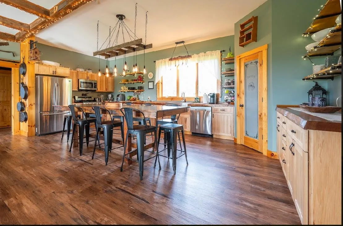 +"Features - Interior": "Bar,Ceiling Fan,In-Law Suite,Kitchen/Dining,Primary BR w/ BA,Natural Light,Natural Woodwork,Vaulted Ceiling,Walk-in Closet,Walk-in Pantry,Whirlpool Tub,Wood Stove Hook-up,Laundry - 1st Floor"