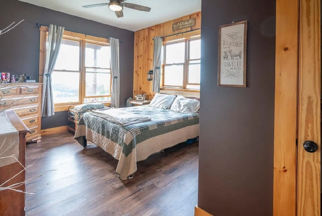 +"Remarks-Public": "Set on 4.7 private acres abutting the Green Mtn National Forest, this exceptional property strikes a nice balance of modern comfort and an appreciation of the breathtaking natural surroundings. Designed to embrace its setting, the home’s exterior features clean lines, neutral earth tones, and an emphasis on outdoor living, enhanced by a full-length covered porch perfectly positioned to capture sweeping local mountain views. The 4-bed, 2.5 bath main home enjoys an open-concept on the first floor grounded by wide oak flooring and the well pointed kitchen, which serves as a welcoming gathering space, anchored by its large central island. With a double oven and apron sink overlooking the stunning views –it is a space you’ll enjoy preparing a feast or a quick snack. The adjacent dining area provides direct access to the porch through large glass doors that bring the view right into the living space and make for a seamless flow between indoor and outdoor living spaces. The spacious living room area with a cozy pellet stove, the tiled mudroom and a half bath tie together the first floor. Upstairs, the primary suite serves as an oasis, complete with a 4-piece bath and walk-in closets. Three additional bedrooms, a full bath, dedicated office, and laundry room complete the second level. An attached garage with oversized doors provides flexible functionality and access to the utility room and crawl space. Further enhancing this property, is a charming 2-bed, 1 bath guest house or rental chalet. This fully independent dwelling includes its own wraparound deck with the same stunning views enjoyed by the rest of the property, a detached garage, and is served by its own well and septic. This space, ideal for guests, extended family, or income potential is currently rented with a lease running through 9/26. Whether you're exploring nearby trails or unwinding at home, this property offers access to some of the best outdoor recreation around with a home base that’s tough to beat."
