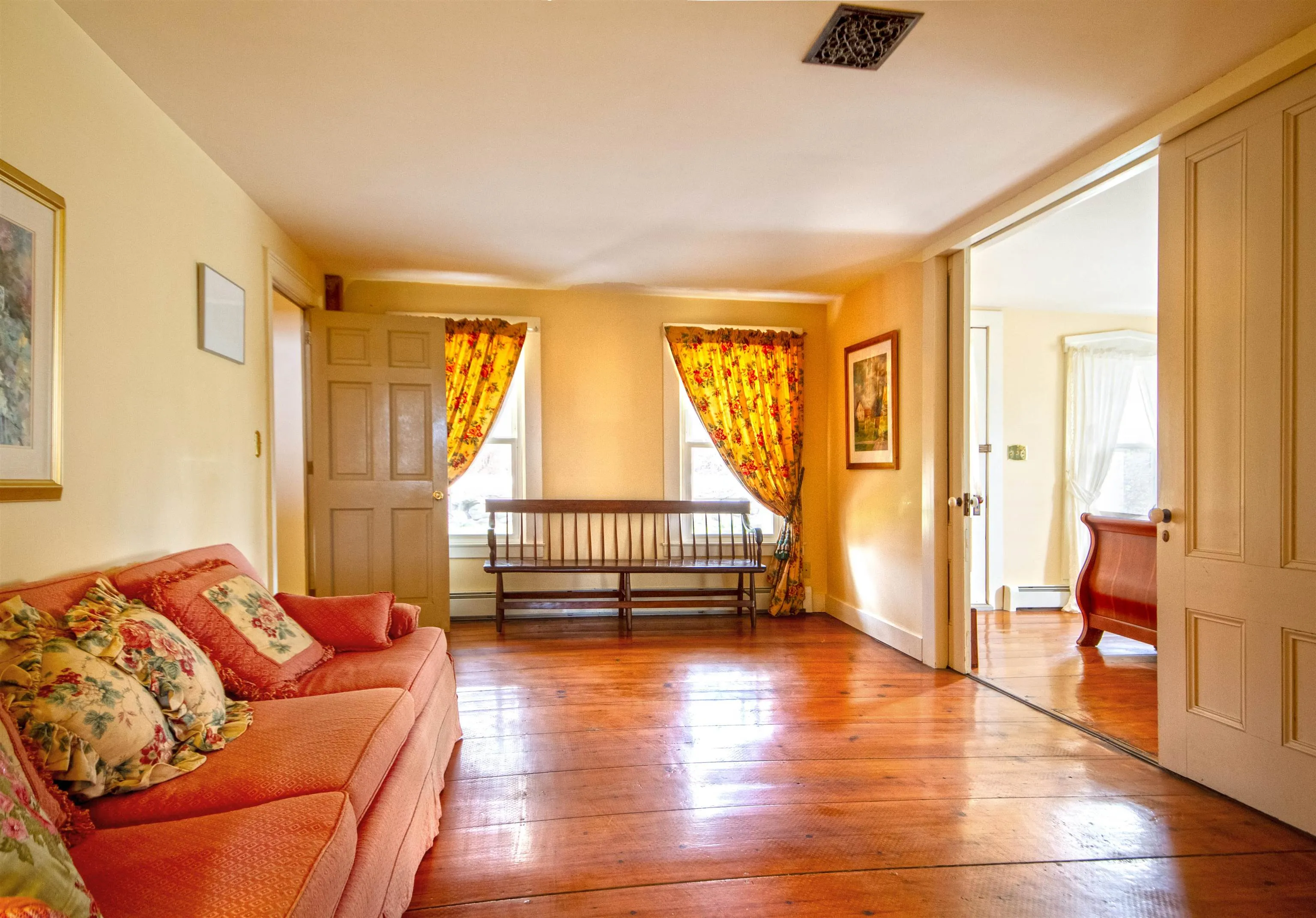 +"PublicRemarks": "This 1830s Vermont farmhouse pairs understated luxury with an easy, welcoming feel—an elegant country retreat that works beautifully for both real life and long weekends from the city. Set on Maple Street with Vermont Land Trust-protected Sunset views of the Adirondack Mountains, it’s been on the Addison County maps as “Bacon Farm,” for almost 200 years. The home’s vernacular Italianate architecture has been lovingly restored and blends original character with a polished, modern layout. The west-facing open plan living room is designed for year-round comfort and style, anchored by a substantial brick hearth with a soapstone woodstove, afternoon light and sunset hues, and opening directly to a broad deck overlooking the pool and fields. This space flows seamlessly into a vaulted, island-centered open-plan kitchen and dining room with double ovens and timeless finishes. All 5 bedrooms have been elegantly refinished, including an ADA accessible suite on the ground floor. Outdoors, the grounds feel like a private, low-key estate: gently sloping established perennial gardens and landscaping in the English-style, mature shade trees, and an in-ground swimming pool positioned to capture long views and evening light on this 6.5 acre property. The 3-story, approx. 3,000 sqft post-and-beam barn is a standout feature: originally a 19th-century sheep barn and carriage house, it has undergone structural stabilization and could be developed as a guest house, studio, gym or event space - offering a level of possibility rarely found in a turnkey country property. Location is a major part of the appeal. While feeling like a truly pastoral rural life, it is only 3 miles from the charming small city of Vergennes, with its historic downtown and award-winning restaurants. Middlebury with its internationally renowned liberal arts college is 12 miles away. Burlington, the largest city in Vermont is 45 minutes way. There is also a direct train to Penn Station in NY. Hi speed-wifi onsite."
