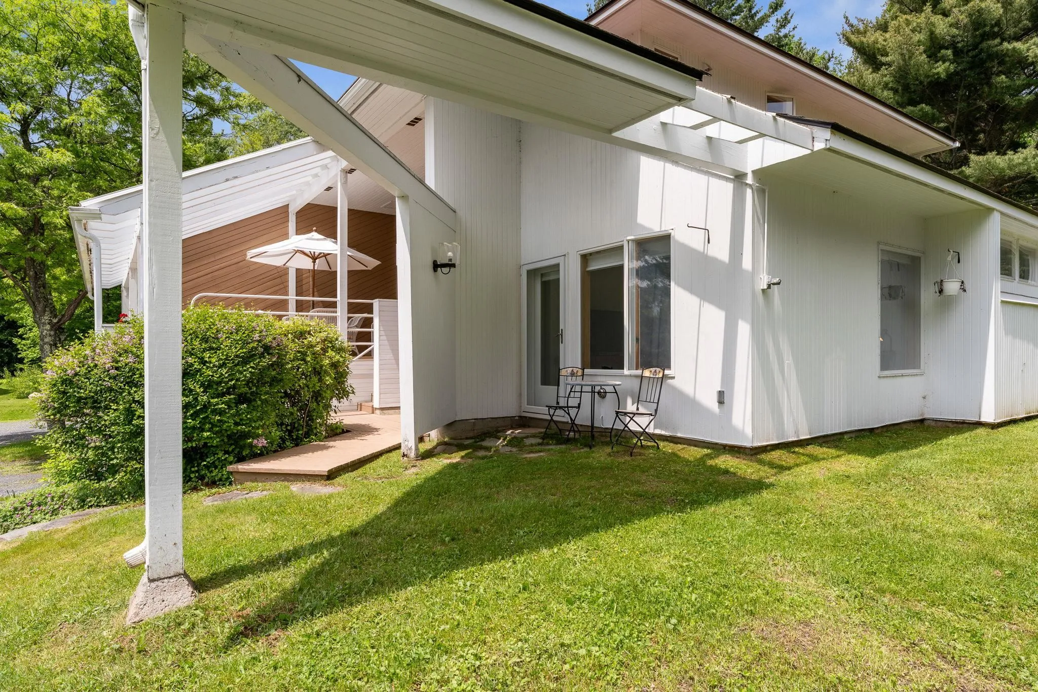 +"PublicRemarks": "Don't miss this beautifully updated 3 bedroom, 2 1/2 bath end unit townhouse in the desirable Club Sugarbush complex. Features include a remodeled and expanded kitchen/dining area with island, granite counters, and new stainless appliances overlooking the rear deck and large private landscaped yard area, a comfy living room with attractive stone fireplace and cathedral ceiling is perfect for relaxing after a day on the slopes or golf course, and you'll love the South facing covered porch with mountain views for summer & fall entertaining. The spacious ground floor primary bedroom suite includes cathedral ceilings, plenty of closet space, a separate home office/media space and remodeled bath. The 2nd floor includes two spaciuos ensuite bedrooms and laundry room with full sized washer & dryer. Interior finishes include custom lighting fixtures, updated wood and stone flooring thoughout, and updated windows and doors. Exterior features include a private rear deck with power awning, and carport with storage space for all the winter and summer toys. During the ski season you and your guests will love the convenience of taking the free shuttle bus, which stops right in front of the unit, to the slopes and back and leaving the car at home. Come home to Club Sugarbush!"