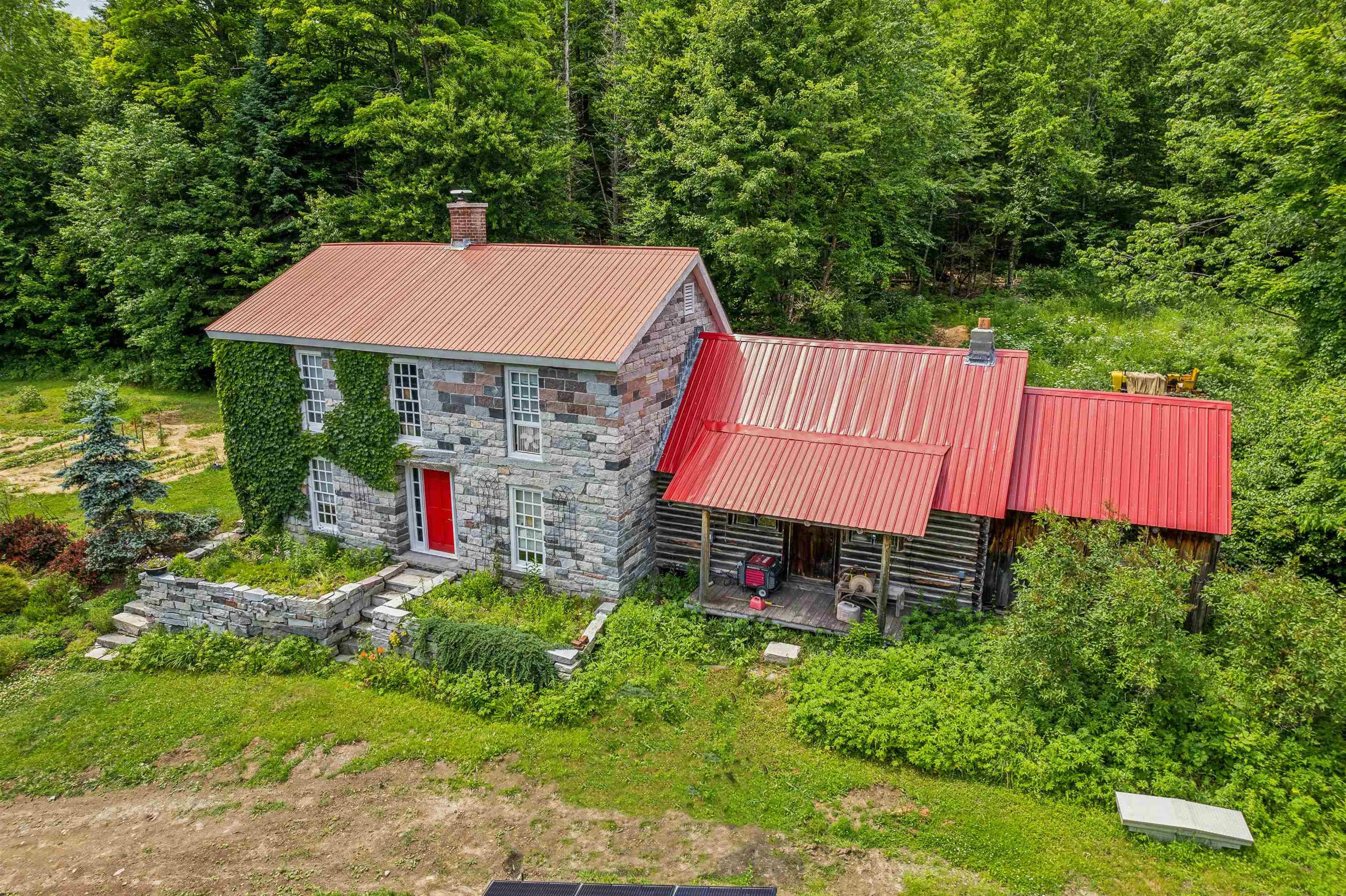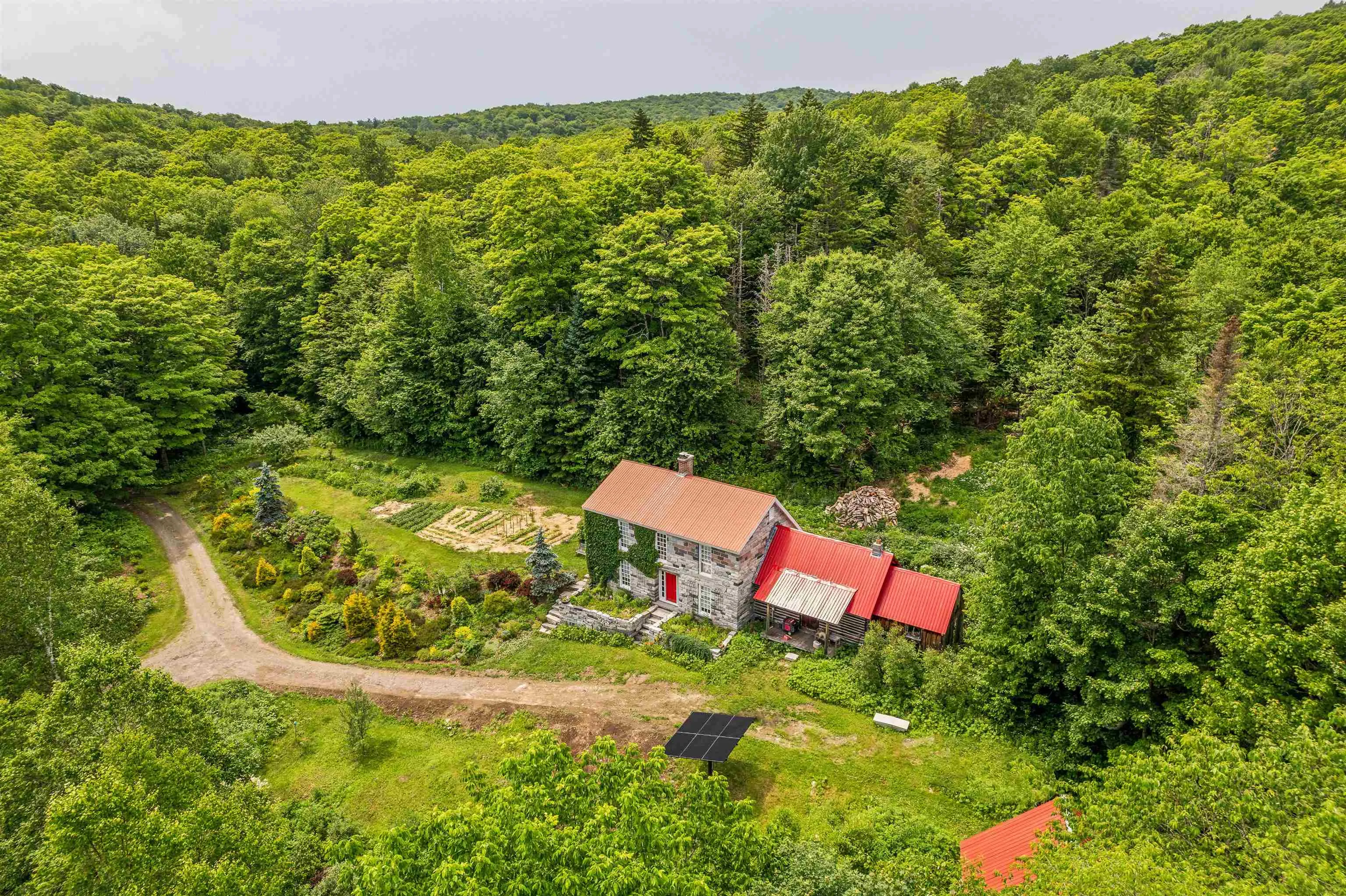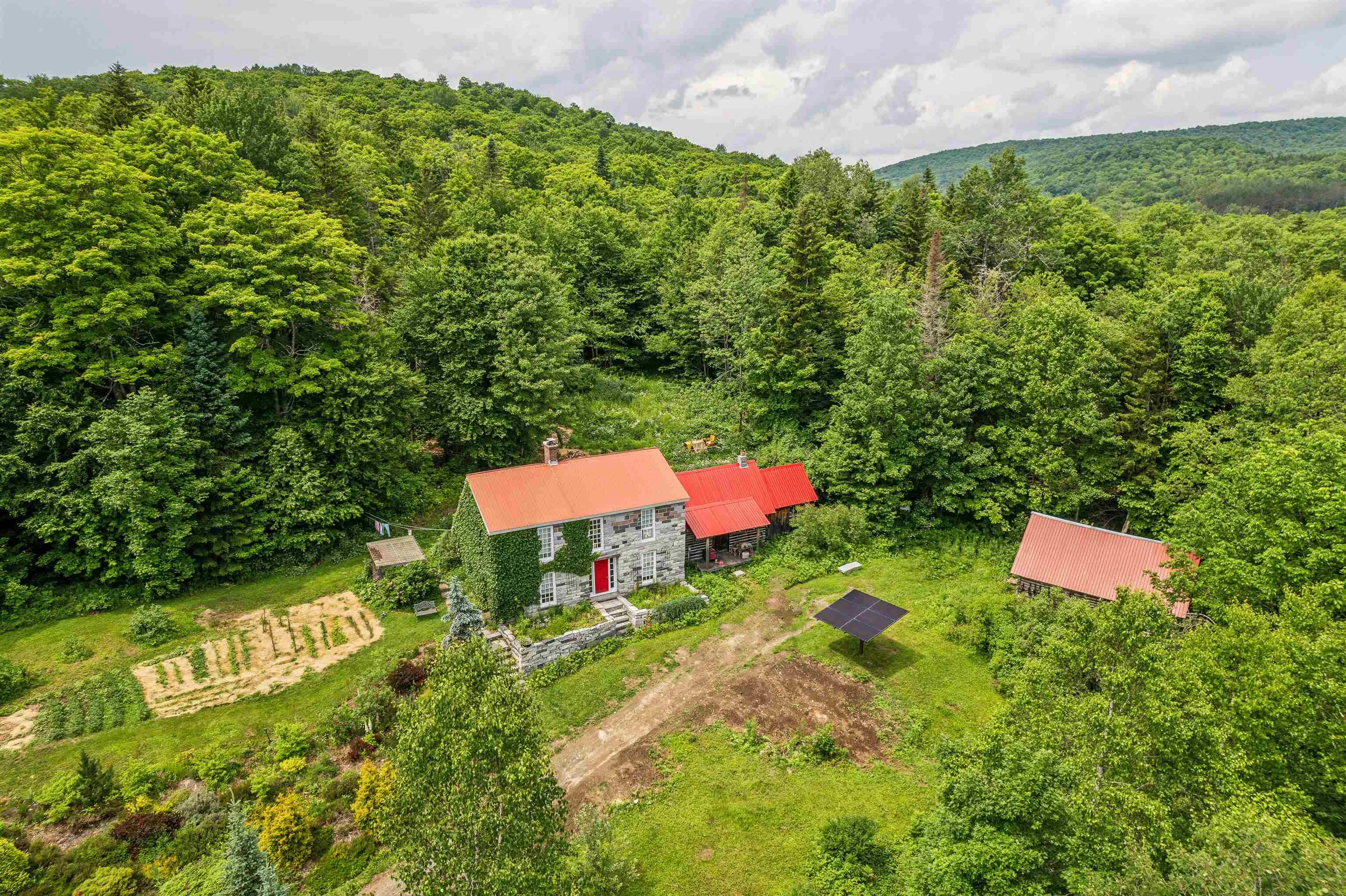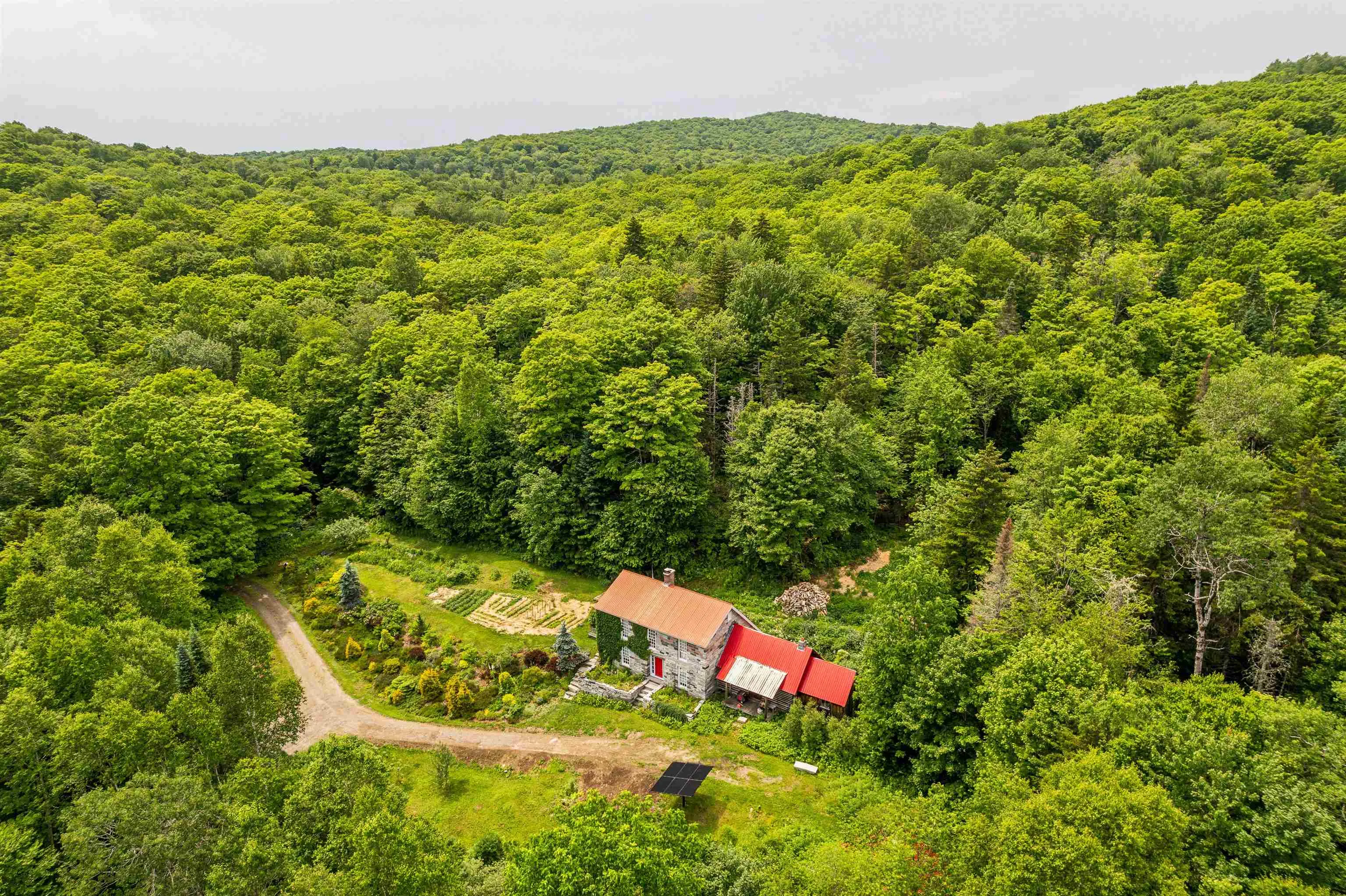 +"PublicRemarks": "A granite home built lovingly by hand - stone by stone. This owner/builder gathered 193 truck loads of cuts from the granite quarry and constructed this home while living in the primitive log cabin attached. This property is entirely off grid powered by solar with backup batteries and a generator and nestled into the heart of the woods with a spectacular garden surround. With ivy climbing up the exterior walls, lupines, berries, hostas, and wide variety of perennials that spring to life each May this place offers a chance at an escape from the frenzy of daily life. The hardwood floors are milled from Cherry trees harvested from the property. With groves of maple, birch, pine, and apple - take the chance to make your own syrup, create your own pies, and homestead the way you have always wanted. There are acres upon acres of deer trails to follow through the forests surrounding the home. A brook runs through the land year round providing fresh, crisp water. This has always been used full time year-round, but could easily be converted to seasonal use if desired. Use the log cabin as an in-law retreat or rental! Please give advanced notice for showing requests."