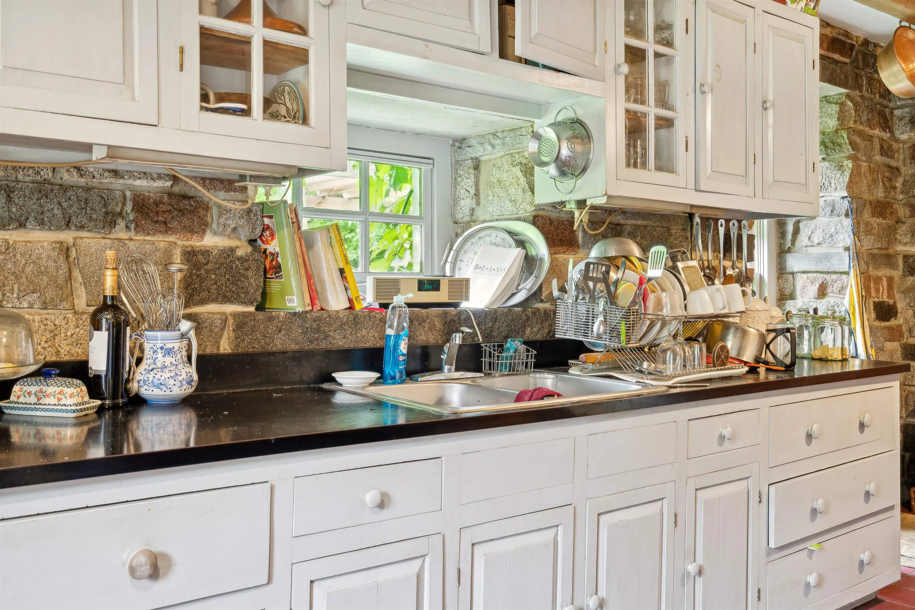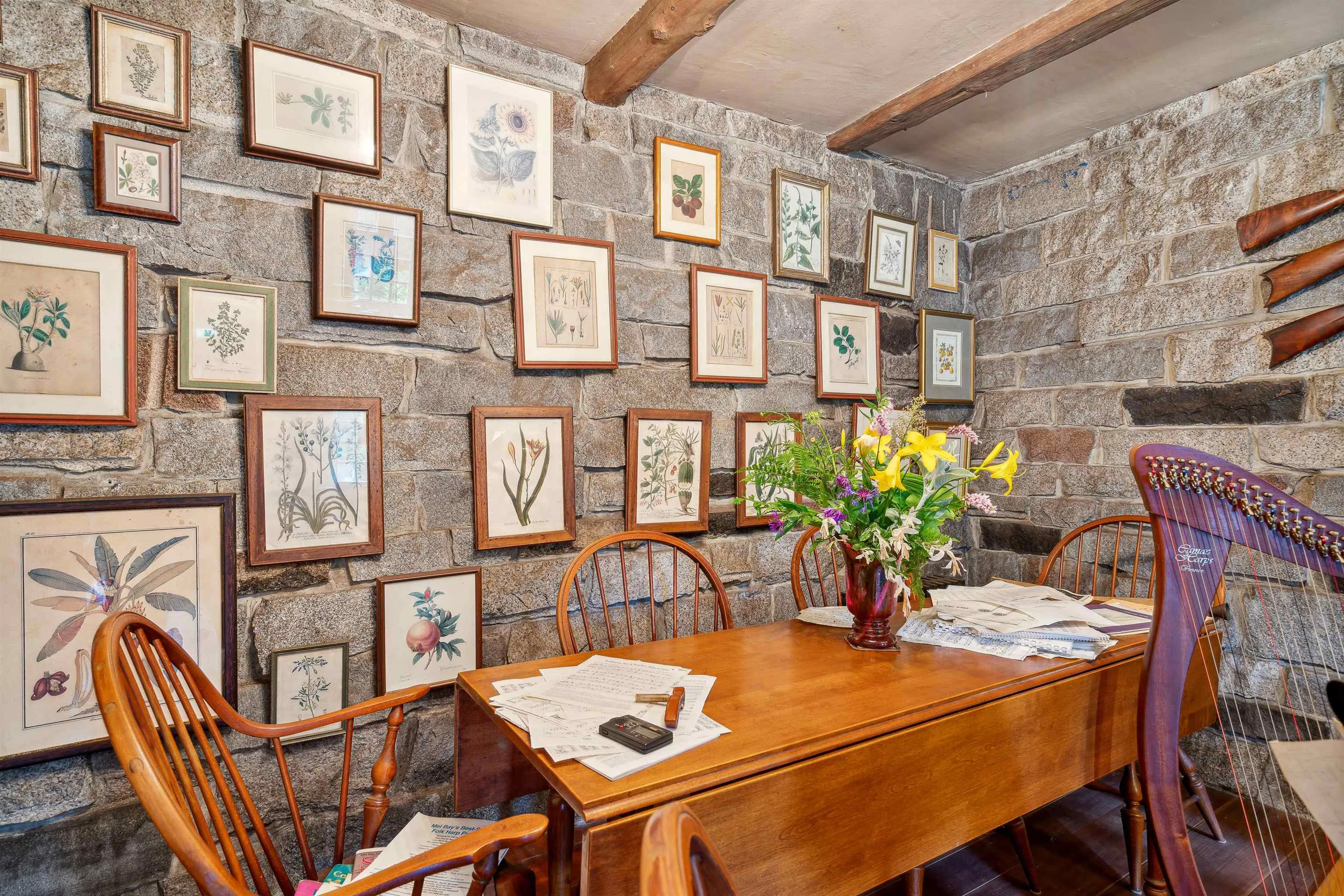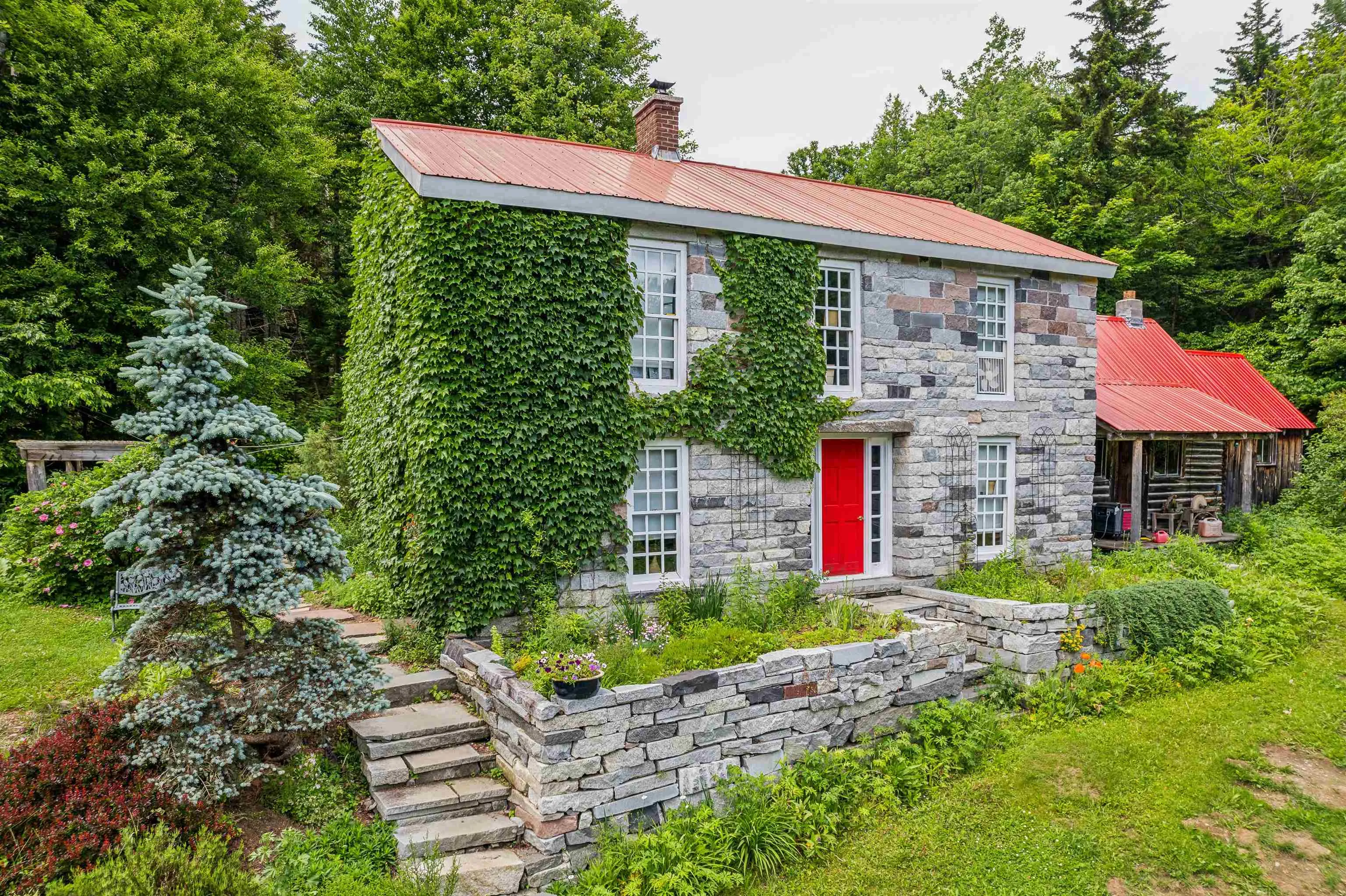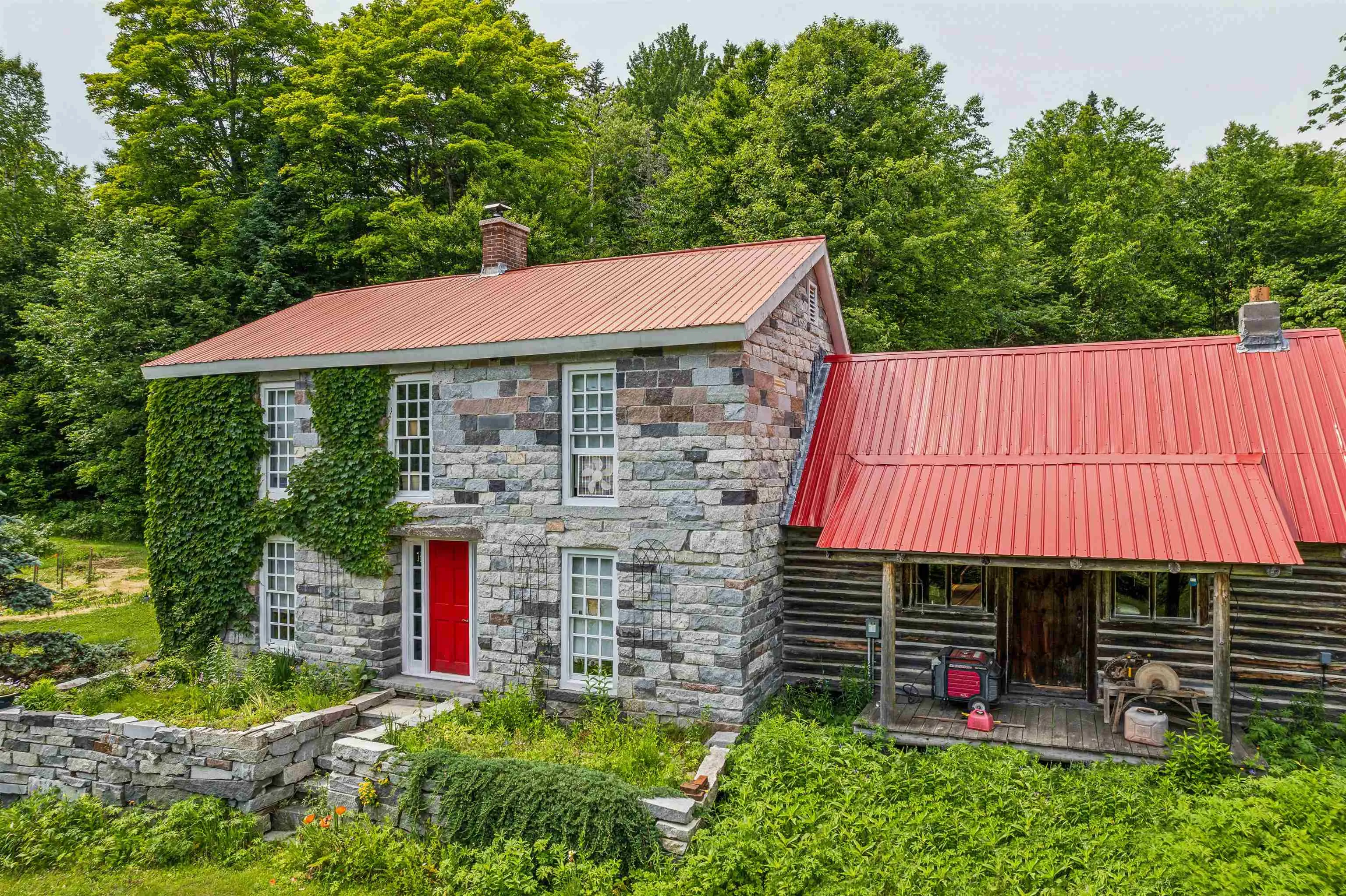 +"PublicRemarks": "A granite home built lovingly by hand - stone by stone. This owner/builder gathered 193 truck loads of cuts from the granite quarry and constructed this home while living in the primitive log cabin attached. This property is entirely off grid powered by solar with backup batteries and a generator and nestled into the heart of the woods with a spectacular garden surround. With ivy climbing up the exterior walls, lupines, berries, hostas, and wide variety of perennials that spring to life each May this place offers a chance at an escape from the frenzy of daily life. The hardwood floors are milled from Cherry trees harvested from the property. With groves of maple, birch, pine, and apple - take the chance to make your own syrup, create your own pies, and homestead the way you have always wanted. There are acres upon acres of deer trails to follow through the forests surrounding the home. A brook runs through the land year round providing fresh, crisp water. This has always been used full time year-round, but could easily be converted to seasonal use if desired. Use the log cabin as an in-law retreat or rental! Please give advanced notice for showing requests."