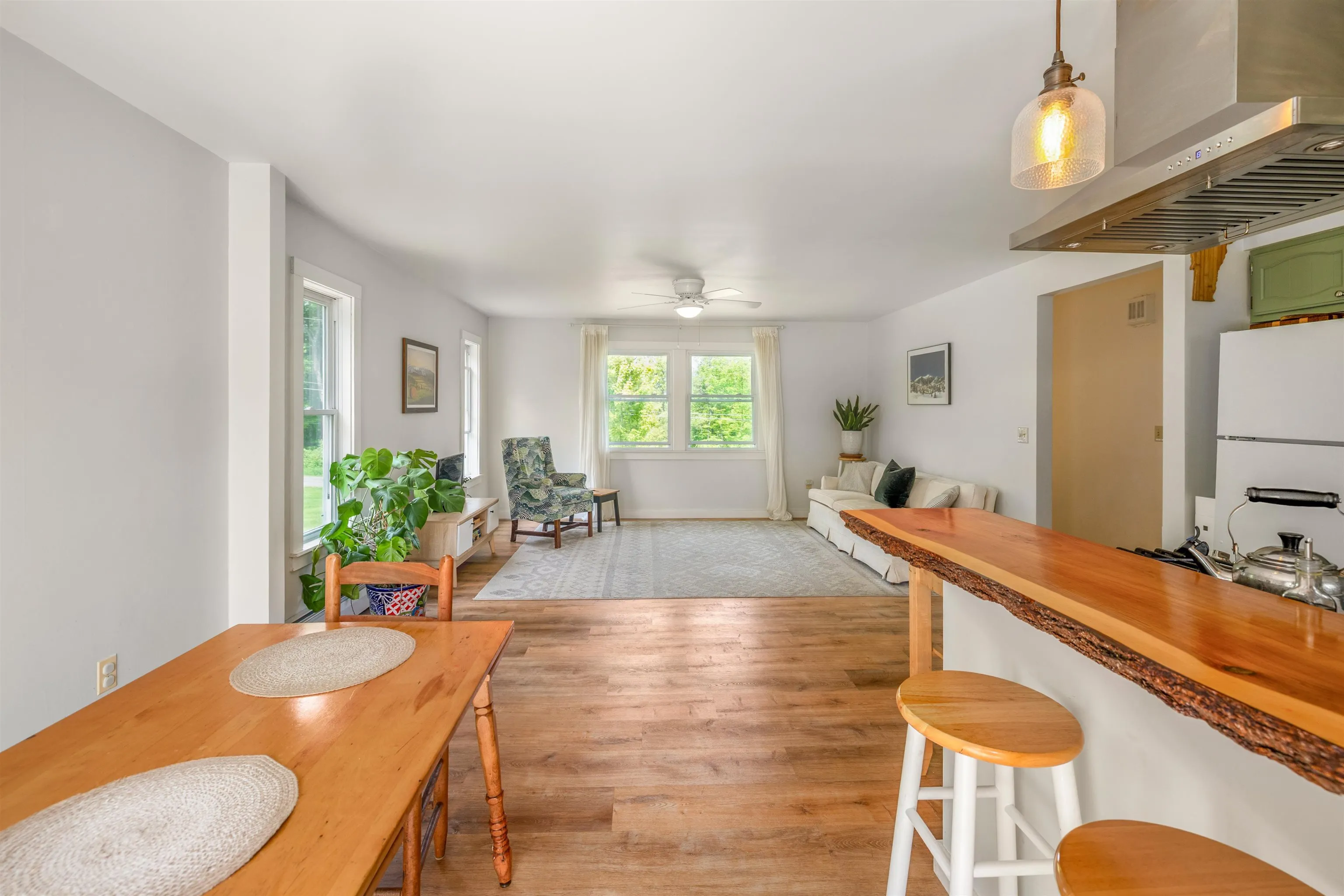 +"PublicRemarks": "Welcome to your new home in the heart of Vermont! Perfectly situated in Waterbury Center, this property offers the best of both worlds — peaceful, small-town charm with easy access to I-89 and all the year-round recreation of nearby Stowe and Sugarbush. Whether you’re commuting to Burlington or Montpelier, hitting the slopes, or exploring local shops and restaurants, you’ll love the convenience and comfort of this location. This inviting 3-bedroom, 1.5-bath home offers the perfect blend of comfort, updates, and outdoor enjoyment. Set on a spacious, flat backyard perfect for lawn games and gardening, the property even features a vintage shuffleboard court ready to be revived for summer fun. Step inside to discover a bright, open floor plan with thoughtful updates throughout. The owners have transformed the home by creating an open concept living space, adding a live edge bar, open shelving, new flooring and trim, light fixtures, and new appliances. A beautiful new deck provides the perfect spot for taking in views of the Worcester Range or watching the kids play games in the yard. There’s even an EV car charger installed for your convenience. Whether you’re looking for a primary residence or a getaway close to skiing, hiking, and local dining, this move-in-ready home delivers. Showings begin on 6/13 after 2:00pm. Open House Saturday June 14, 11:00 - 1:00."