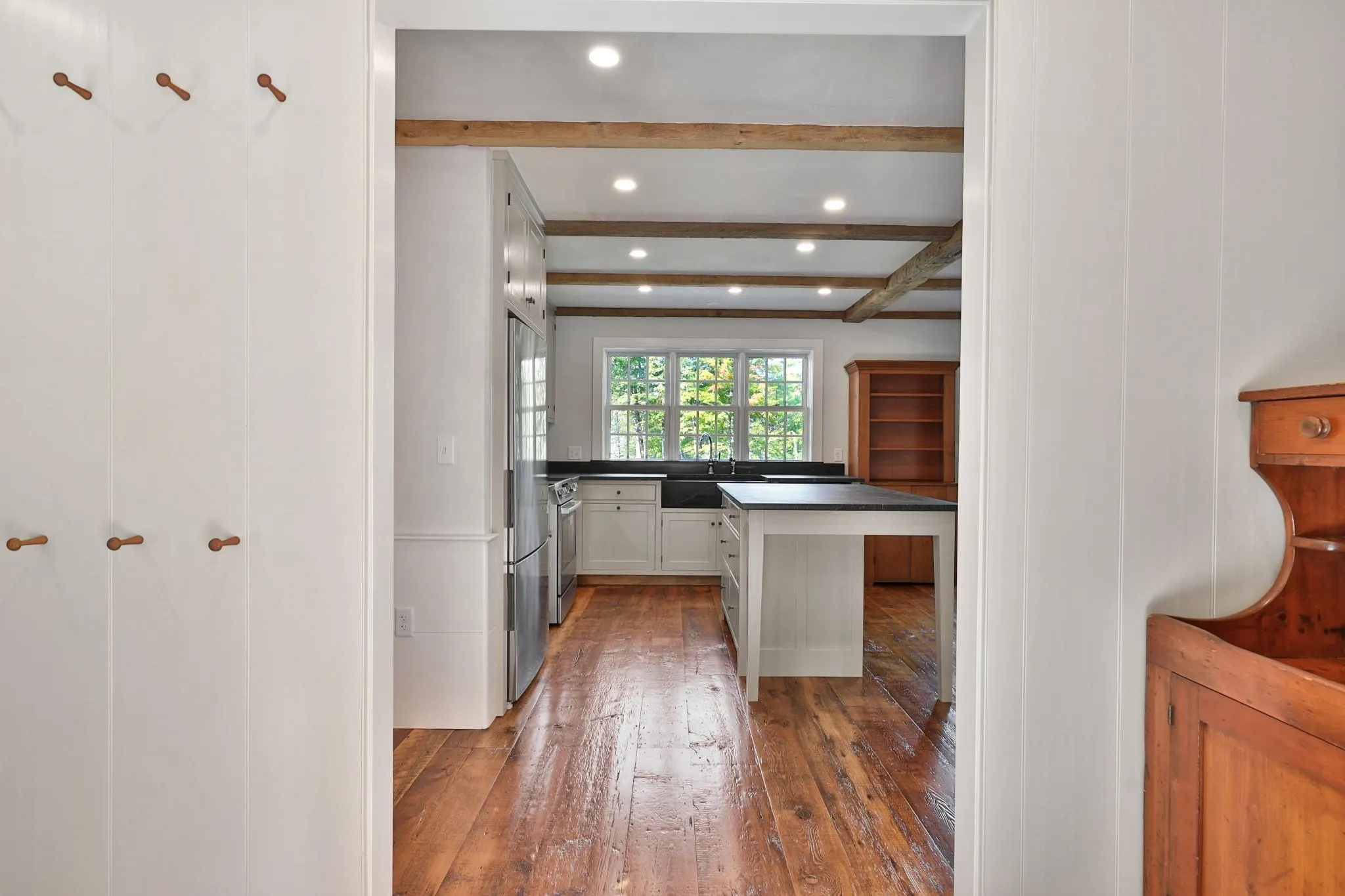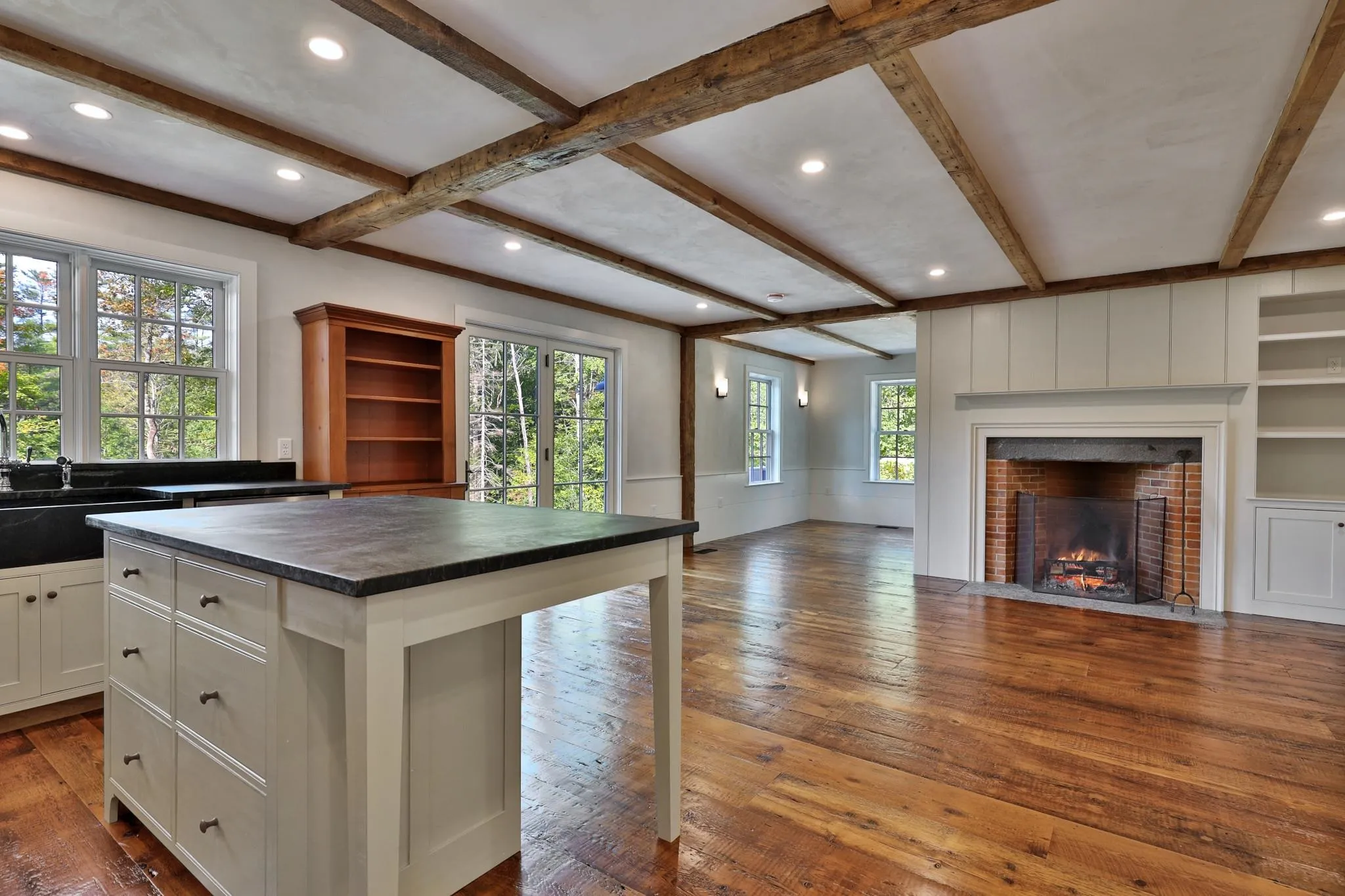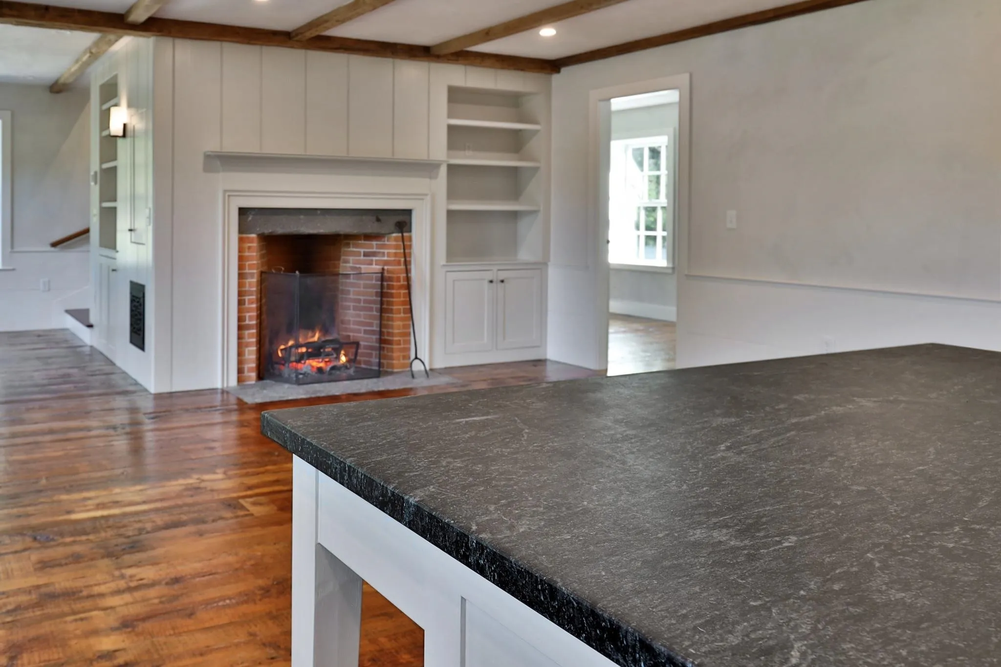 +"PublicRemarks": "Discover this stunning newly constructed home that seamlessly blends modern comforts with timeless antique and rustic charm. Nestled on 11 private acres along a tranquil country road, this residence features reclaimed barn board floors and exposed beams, creating a warm, inviting atmosphere. Step into the heart of the home, where a modern country kitchen awaits, complete with luxurious soapstone counters, perfect for culinary enthusiasts. The main floor boasts a spacious primary ensuite bedroom, featuring a walk-in closet with built-ins and a beautifully appointed bathroom with an elegant marble vanity. The open layout leads to a cozy living room, highlighted by a Rumford wood-burning fireplace, ideal for gathering with friends and family. The second floor features an additional bedroom with an open suite, offering plenty of built-in drawers and storage space. The bathroom also features a gorgeous marble vanity that elevates the home's sophisticated design. An attached one car garage and a convenient mudroom entry add practicality to this beautifully crafted residence. Outside, admire the exquisite stonework that enhances the property's curb appeal. This home is not only aesthetically pleasing but also incredibly efficient and easy to maintain. Conveniently located near Route 91, with quick access to the Upper Valley, skiing, and other amenities that make Vermont living so special. Don't miss the opportunity to make this unique property your own!"