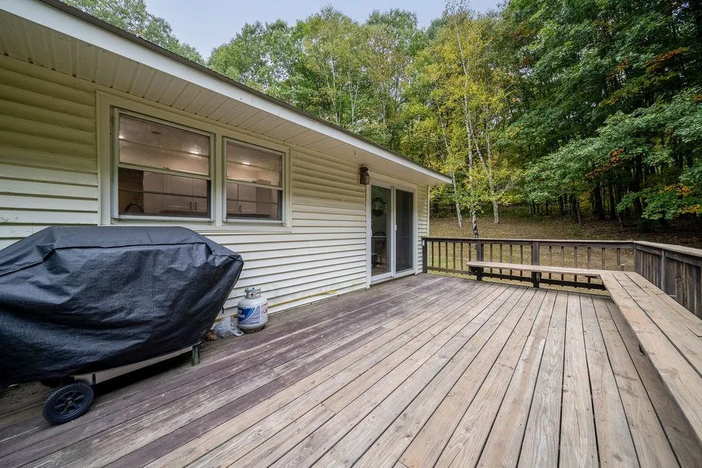 +"PublicRemarks": "Nestled on a beautiful +/-7.5-acre lot, this delightful 3-bedroom, 1-bath home offers both comfort and tranquility. The updated kitchen combines style and functionality, perfect for modern living. Relax in the spacious living room, where warm wood floors flow throughout the home, adding an extra touch of comfort. The partially finished basement provides even more space, featuring a versatile room perfect for an office or craft space, along with a utility room that includes laundry and direct access to the two-car garage with automatic openers for added convenience. Outside, enjoy the expansive yard, complete with a fenced area for pets or little ones, and a large deck ideal for entertaining or simply soaking in the peaceful surroundings. Whether you're seeking room to grow or a serene retreat, this property strikes the perfect balance between indoor comfort and outdoor living. Don’t miss your chance to own this tranquil slice of Weathersfield!"