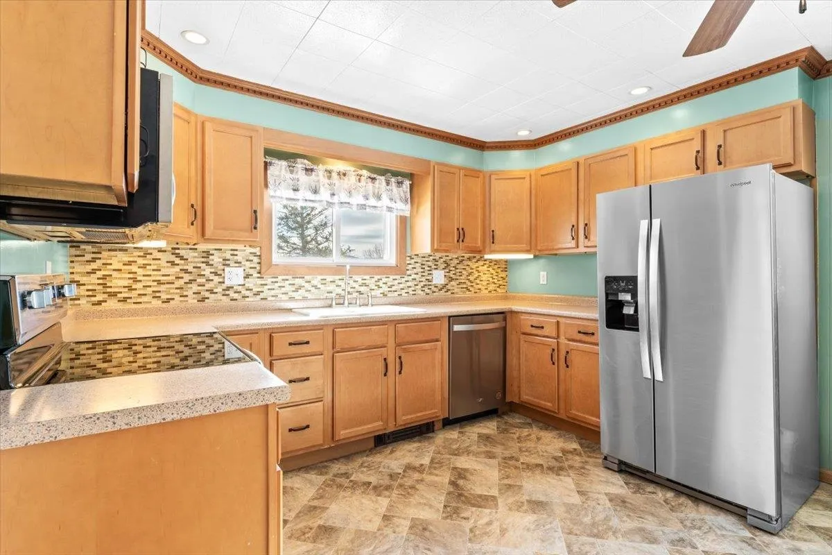+"PublicRemarks": "Experience the best of Vermont living on 10+ picturesque acres with sweeping panoramic views in every direction. This one-of-a-kind setting offers beauty, privacy, and a true country lifestyle, complete with breathtaking sunrises over the White Mountains of New Hampshire and stunning sunsets fading behind the Green Mountains. The property is a homesteader's dream, featuring established orchards with a variety of apples, both young and heritage, abundant wild blueberries and strawberries, and an impressive private road lined with young American Chestnut trees. Tucked into this peaceful landscape sits a charming post-and-beam Cape, rich in character, which was thoughtfully expanded with a new addition in 2022. Natural woodwork, exposed beams, and farmhouse-style details create a warm and timeless feel throughout. Many original floors remain, adding to the authenticity and charm, while tasteful modern updates blend seamlessly with the home's rustic features. The east-facing living and dining room capture morning light and long-range mountain views—an ideal space for gathering and appreciating the scenery year-round. The open kitchen includes a farmhouse sink, center island, and stainless steel appliances, balancing practicality with style. With three bedrooms and two baths, there’s space to spread out, host guests, or work from home with inspiring views as your backdrop. This property brings together land, character, and self-sustaining features in a spectacular location."
