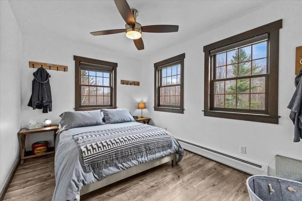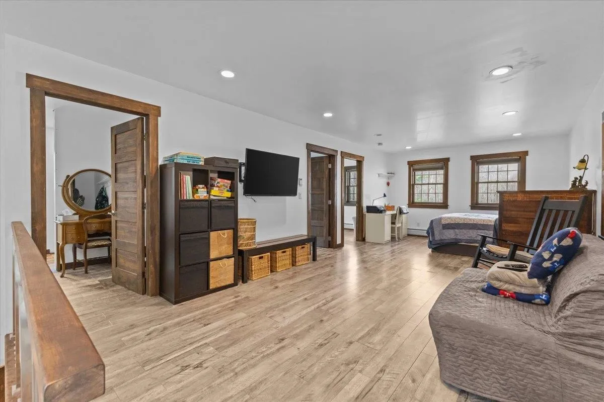 +"PublicRemarks": "Nestled in the desirable rear section of Oak Knoll, this end-unit condominium offers added privacy and a peaceful patio overlooking the woods. The charming living room features exposed wooden beams, attractive laminate flooring, and a warm, inviting feel enhanced by soft pastel tones throughout. Upstairs, you’ll find two comfortable bedrooms and a full bath. The home also includes in-unit laundry, with additional coin-operated facilities available for larger items, along with access to a workout area. A new outdoor green space is planned for 2026, adding even more appeal to the community. Recent upgrades provide both comfort and efficiency, including an energy-efficient York furnace (2020), appliances less than three years old, a newer sliding door to the patio, and three high-efficiency portable air conditioners (approximately four years old), all included with the sale. Conveniently located just 10 minutes from Dartmouth College and 15 minutes from Dartmouth Health, this pet-friendly community also offers easy access to nearby walking trails—perfect for enjoying the outdoors."