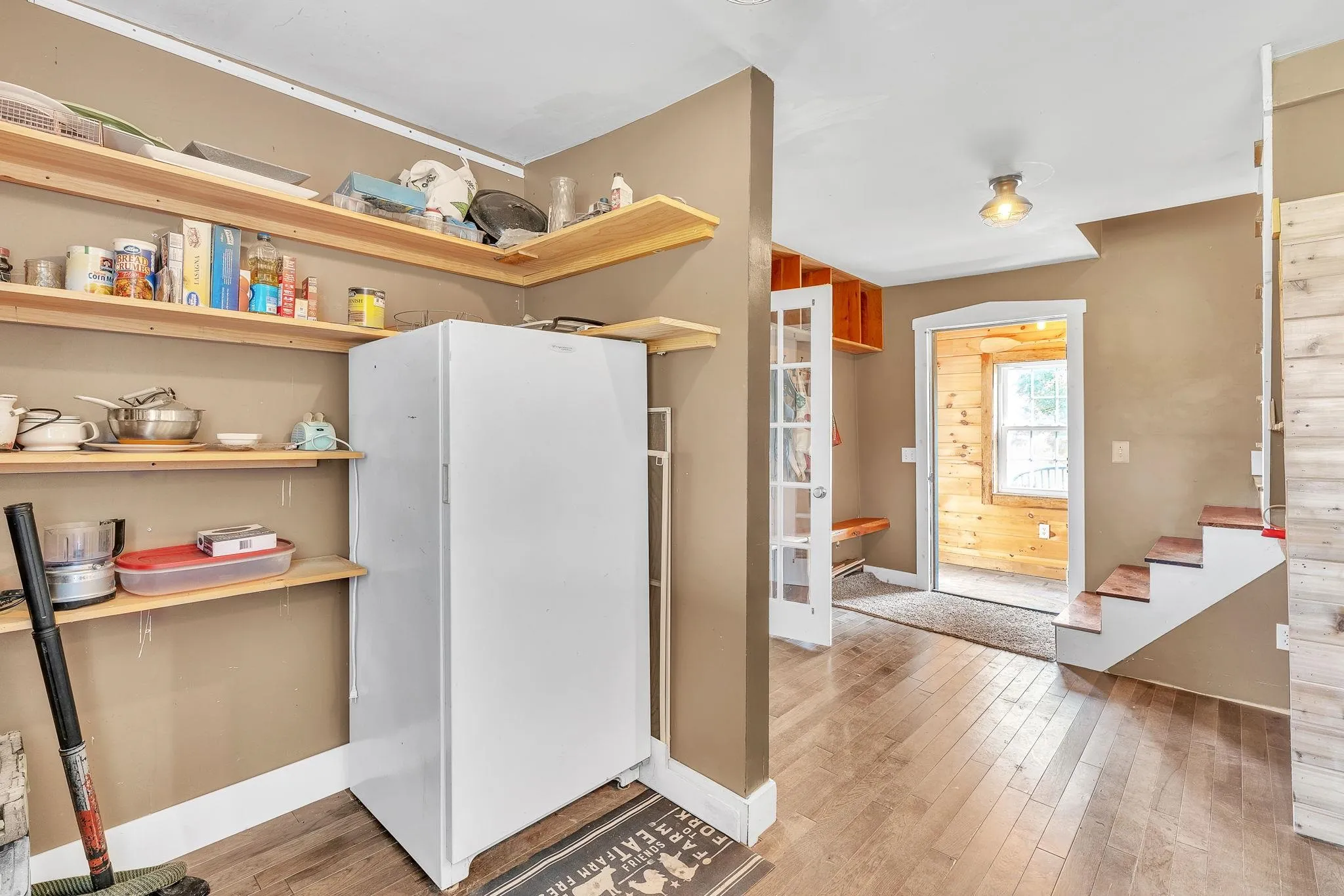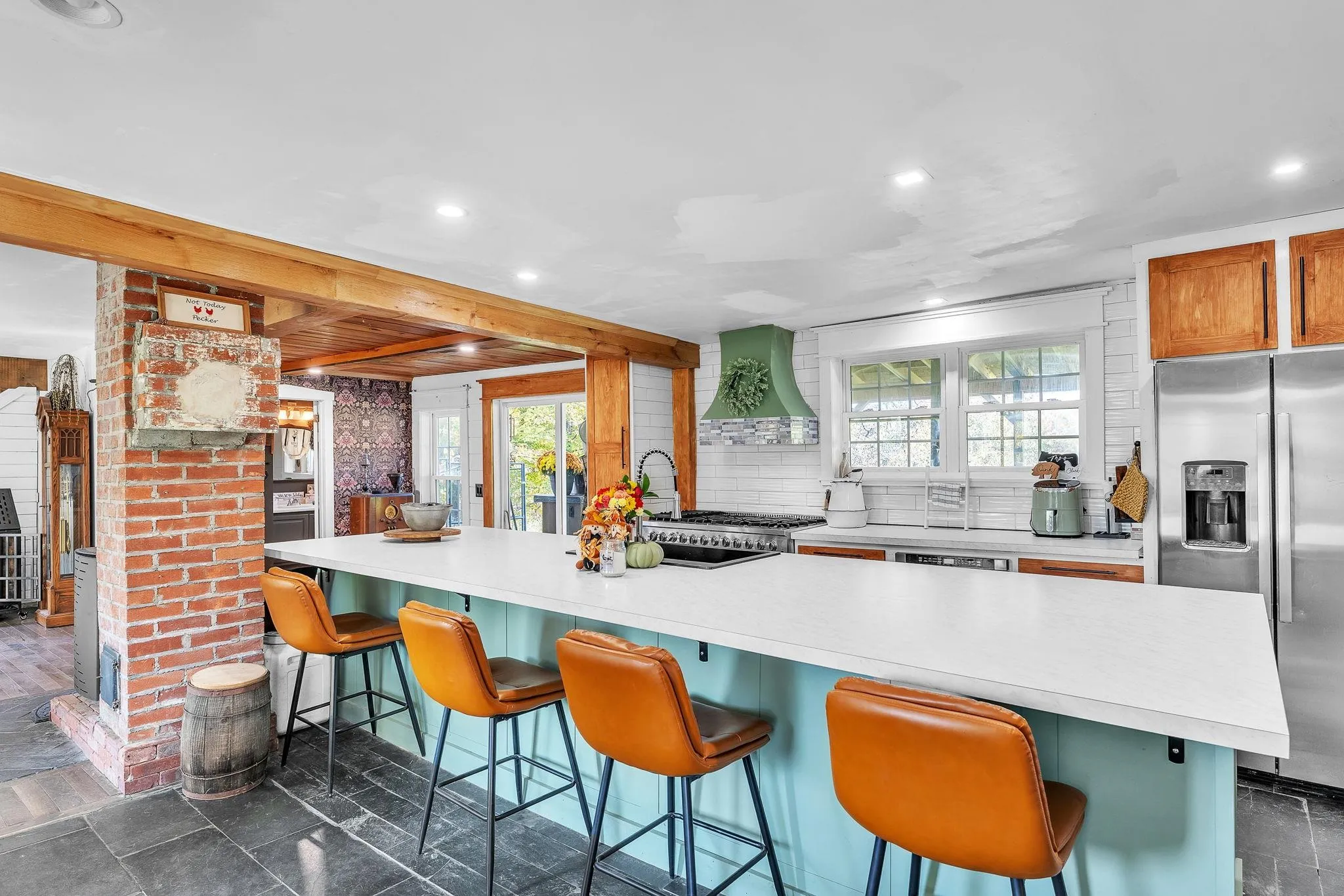 +"PublicRemarks": "This beautifully updated 1850 farmhouse is located on 3.51 acres just off Exit 5 in Williamstown. It offers a charming blend of rustic and modern conveniences. The home features a flexible layout with 5 bedrooms, one of which is located on the main floor. The heart of the home features a stunning 14-foot center island, stainless steel appliances, and a cook's delight-- a double electric oven with an 8-burner propane top with grill and range hood. Abundant windows allow lots of natural lights the home, creating a warm and inviting atmosphere. Additionally, a pellet stove provides a cozy ambiance on cool evenings. The home is equipped with leased solar panels, which can help reduce monthly utility bills. Outside, on the back deck enjoy a built-in grill area which adds a functional addition to your outdoor living space. There is a spacious barn with power that could be used for extra storage, hobbies, or farm use, as well as another outbuilding for equipment storage. This centrally located home provides easy access to skiing, hiking, and all types of outdoor recreation Vermont has to offer. The Vast trails are nearby for snowmobiling in the winter time. Open House October 12, 10am-12pm, showing to start after."
