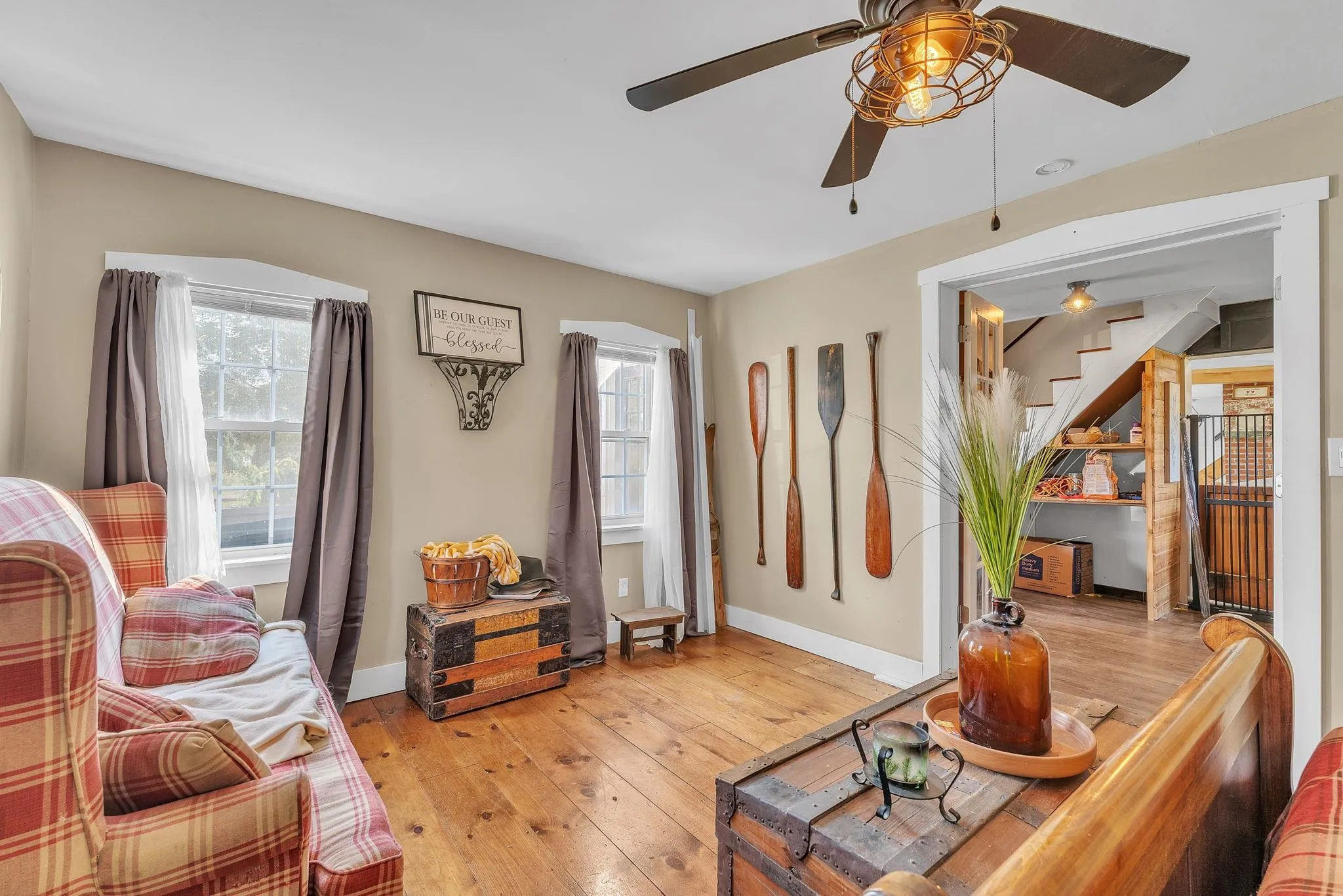 +"Remarks - Public": "This beautifully updated 1850 farmhouse is located on 3.51 acres just off Exit 5 in Williamstown. It offers a charming blend of rustic and modern conveniences. The home features a flexible layout with 5 bedrooms, one of which is located on the main floor. The heart of the home features a stunning 14-foot center island, stainless steel appliances, and a cook's delight-- a double electric oven with an 8-burner propane top with grill and range hood. Abundant windows allow lots of natural lights the home, creating a warm and inviting atmosphere. Additionally, a pellet stove provides a cozy ambiance on cool evenings. The home is equipped with leased solar panels, which can help reduce monthly utility bills. Outside, on the back deck enjoy a built-in grill area which adds a functional addition to your outdoor living space. There is a spacious barn with power that could be used for extra storage, hobbies, or farm use, as well as another outbuilding for equipment storage. This centrally located home provides easy access to skiing, hiking, and all types of outdoor recreation Vermont has to offer. The Vast trails are nearby for snowmobiling in the winter time. Open House October 12, 10am-12pm, showing to start after."