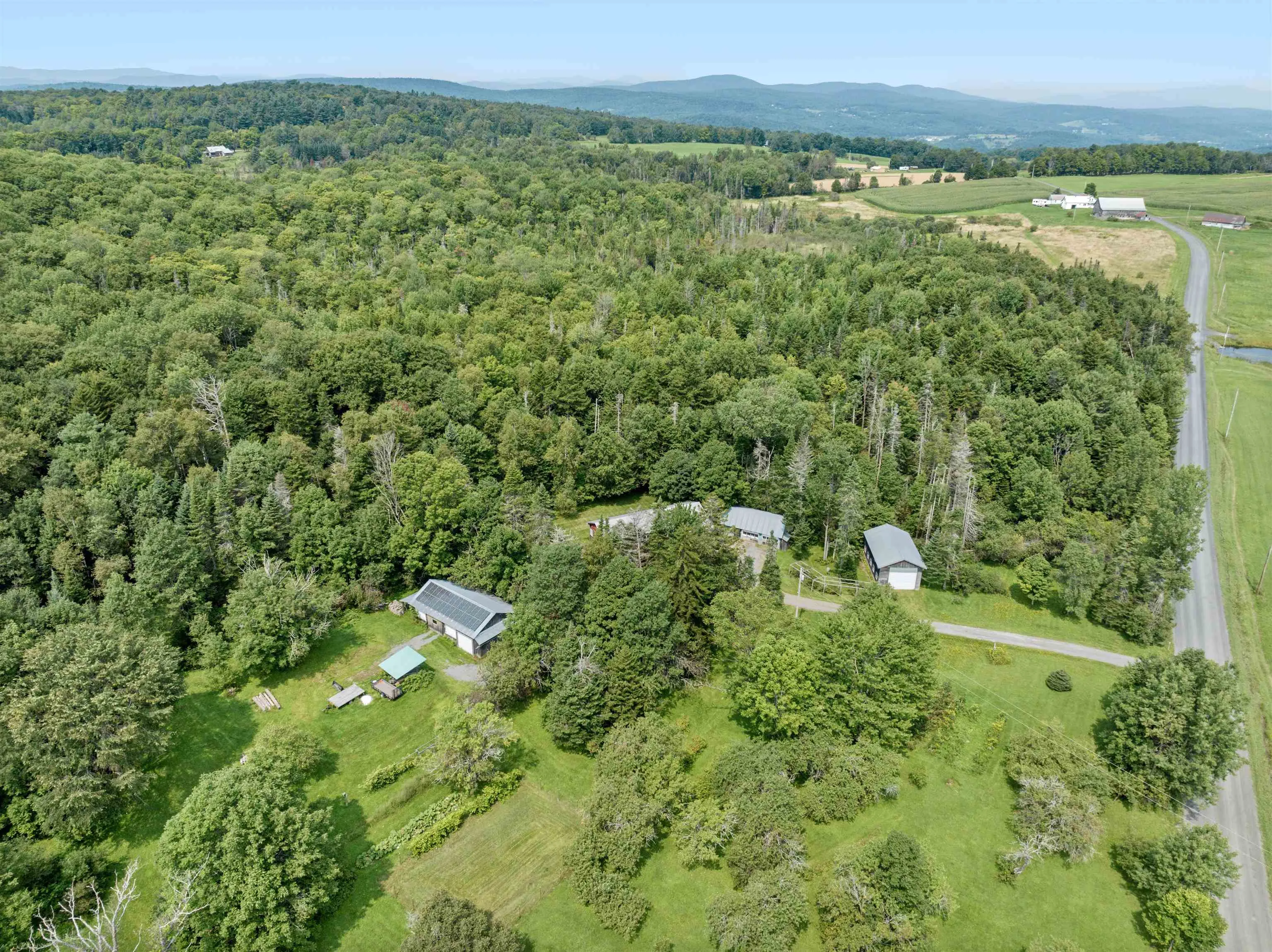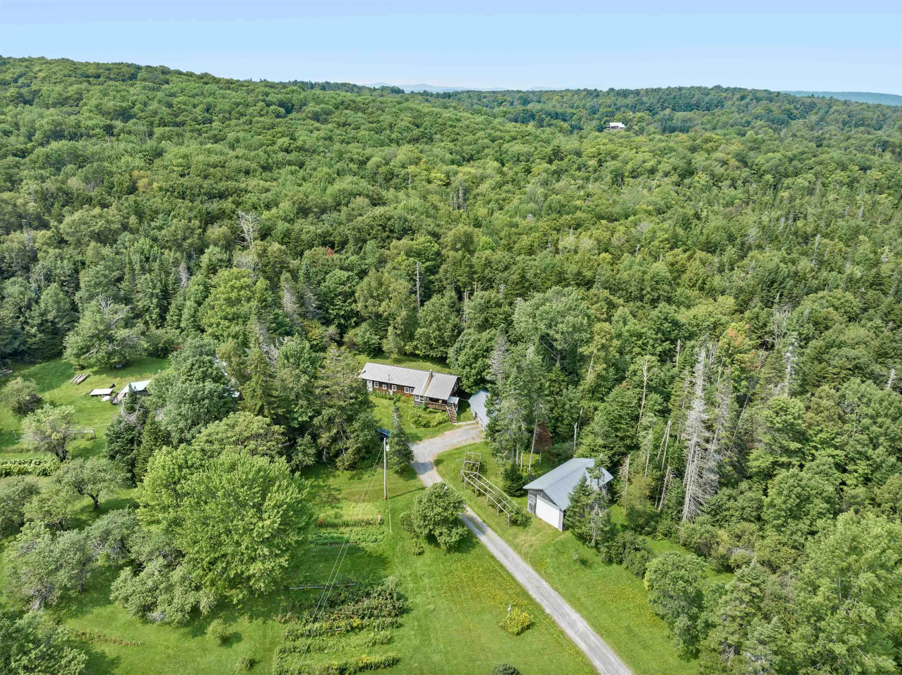 +"Remarks - Public": "Cute and cozy 2 bedroom, 2 bath bath ranch, in Williamstown. Enjoy peace and tranquility, while still being close to amenities and the Chelsea town line. This home offers a plethora of outbuildings; for your storage or workshop desires, plenty of room for gardening and outdoor activities, with multiple berry bushes, rhubarb, grapevines, apple orchard, all situated on over 5 acres. The main home offers a geothermal furnace! There are also two wood stoves, a standing seam roof on the main home, root cellar, and an elevator, for convenience access to the basement. Set up your time to see this wonderful home and you may want to make it your own!"