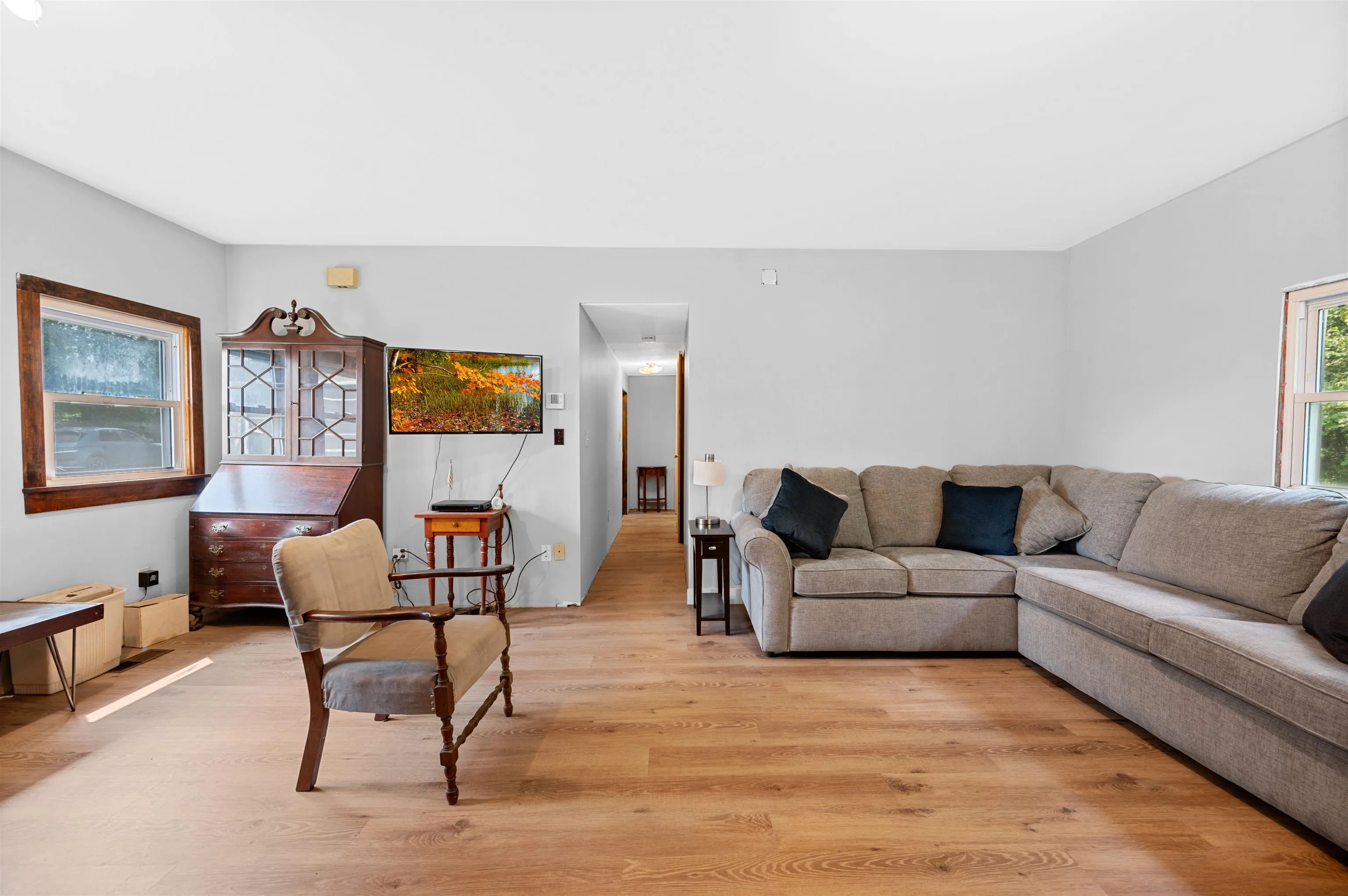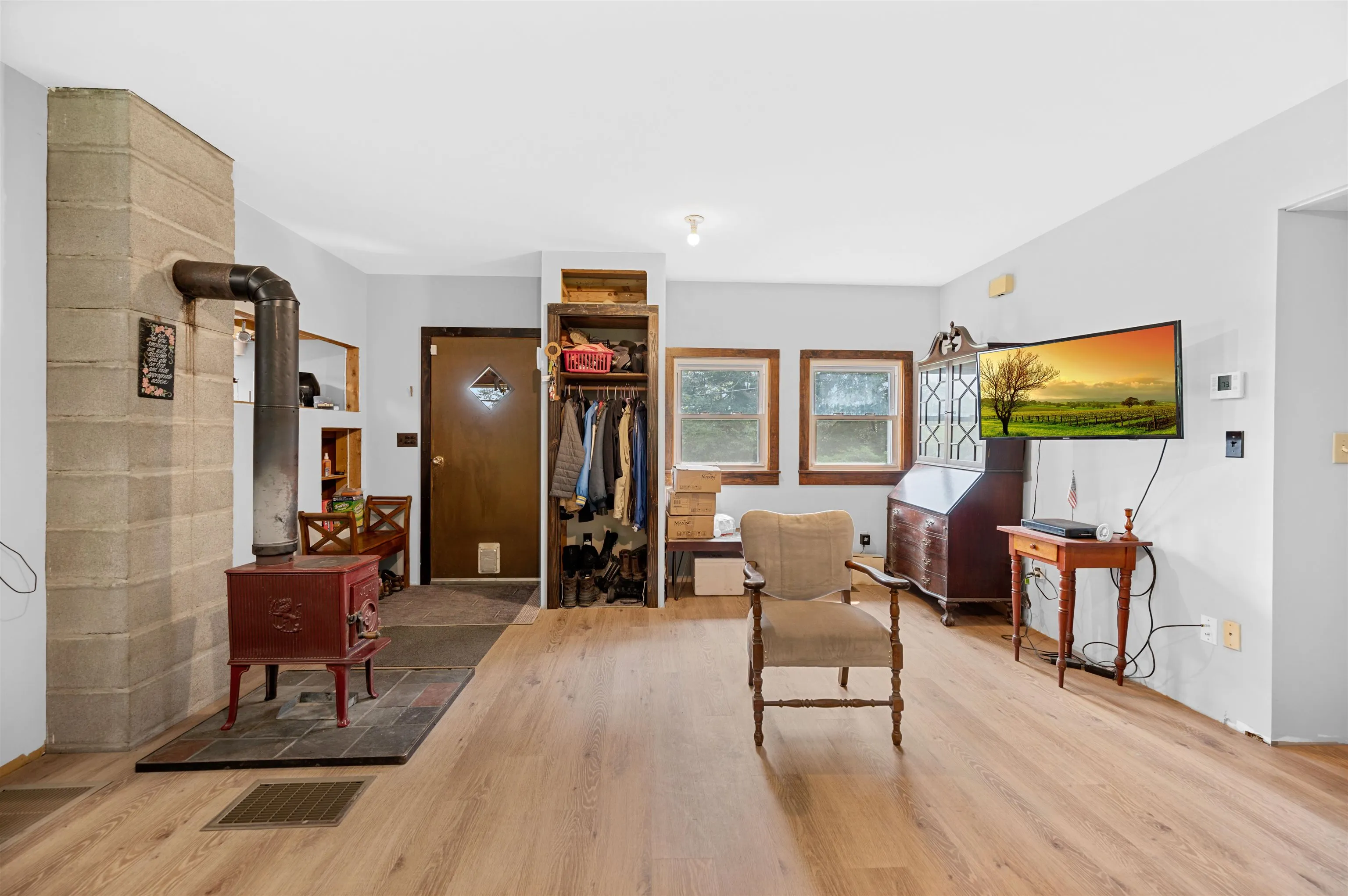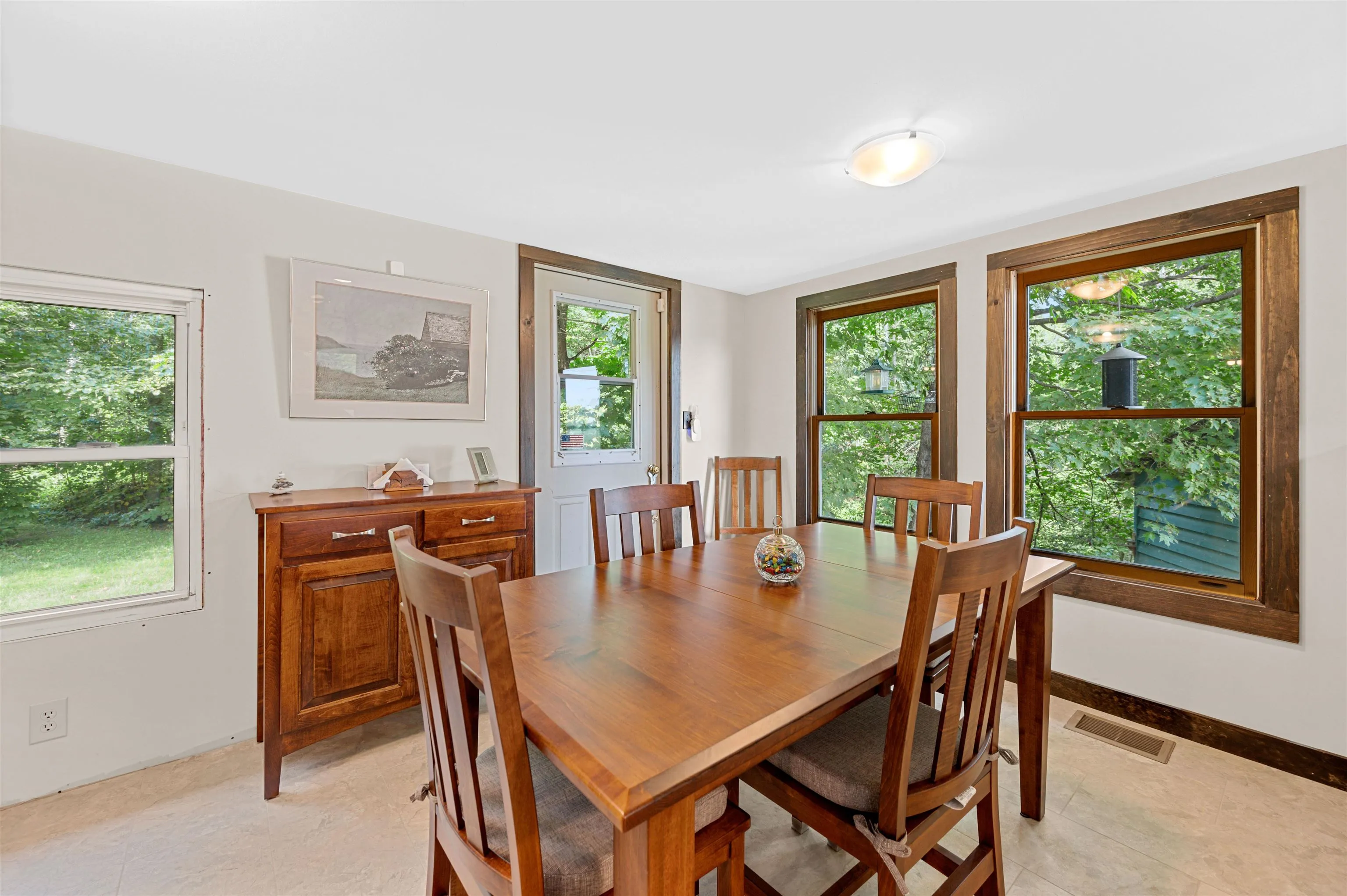 +"PublicRemarks": "Privately set on 10 acres, this stunning contemporary offers the perfect blend of comfort, style, and natural beauty. The gorgeous gourmet kitchen—complete with wet bar and pantry—anchors the home’s open-concept design. The sun-filled living room features western exposure and a striking stone hearth. Three bedroom suites, one on main floor and two upstairs provide flexibility and privacy for everyone. Upstairs primary suite has fabulous newly renovated bathroom. Enjoy western views, fun outdoor living spaces - including hot tub, and access to a network of trails from your property. The inviting screened porch with fireplace is ideal for cozy nights. Walkout lower level adds even more living space with a family room, another potential bedroom option, full bathroom, workout area, and abundant storage. A rare opportunity in a coveted Norwich setting."