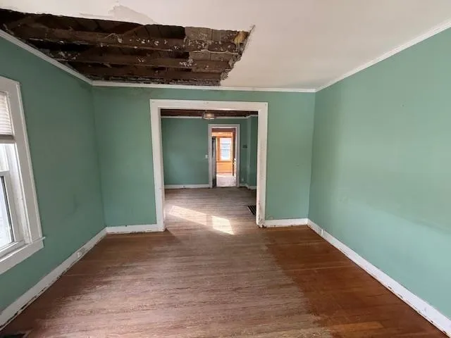 +"PublicRemarks": ""Highest & Best Offer" deadline for submission is 10am EDT, Friday 5/23. This property is eligible under the Freddie Mac First Look Initiative through 06/15/2025. This property is offered 'as is'. Seller has not occupied property therefore there are no 'disclosures' offered. Interior ceiling damage(s) caused by roof 'failure' but half of roof was covered with corrugated metal by previous owner. Mold/damaged sheetrock & insulation already removed. House 'froze' & was defrosted, no water damage, winterized & that is current condition of plumbing/HVAC. Garage is salvageable but will require framing/etc. repairs."