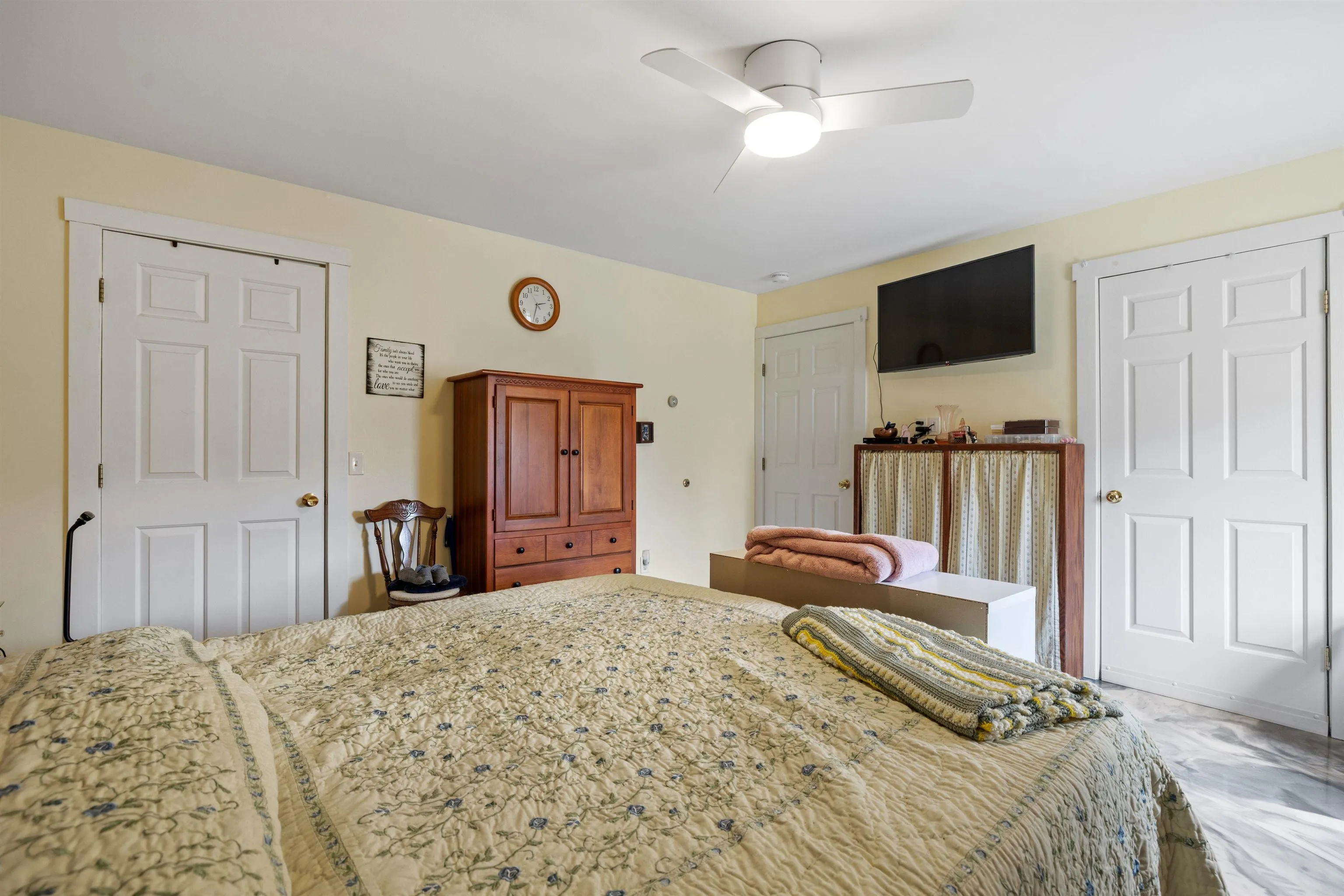 +"PublicRemarks": "I am excited to share a remarkable property with you: a spacious Executive Ranch home featuring three bedrooms, an office, and a versatile bonus room above the garage. The garage offers two heated bays and one non-heated bay. This home is designed with an abundance of space and storage in mind, including generous bonus areas and dens. You'll love the outdoor living options, which include a screened-in area and a large backyard. The property is conveniently situated just outside of Morristown and a short distance from Wolcott, offering walking trails, a covered screened-in back porch, and a large, flat lawn, all set back from the road for maximum privacy. Inside, you'll find a beautiful cherry built-in hutch, a kitchen that connects to a dining/sitting area, and a nicely updated guest bathroom. The primary bedroom is generously sized and includes an en-suite bathroom. For comfort, the home features radiant heated floors for cozy winters and air conditioning for warmer months. A generator is also included, ensuring you'll never have to worry about power outages. Designed to be accessible for the whole family, this home provides tons of storage space above the main house and garage, in addition to the bonus room. The pantry is impressively spacious, ready to accommodate all your platters, dishes, and dry goods—it truly must be seen to be believed! Set up your showing now for this property, as it is sure to be in high demand."